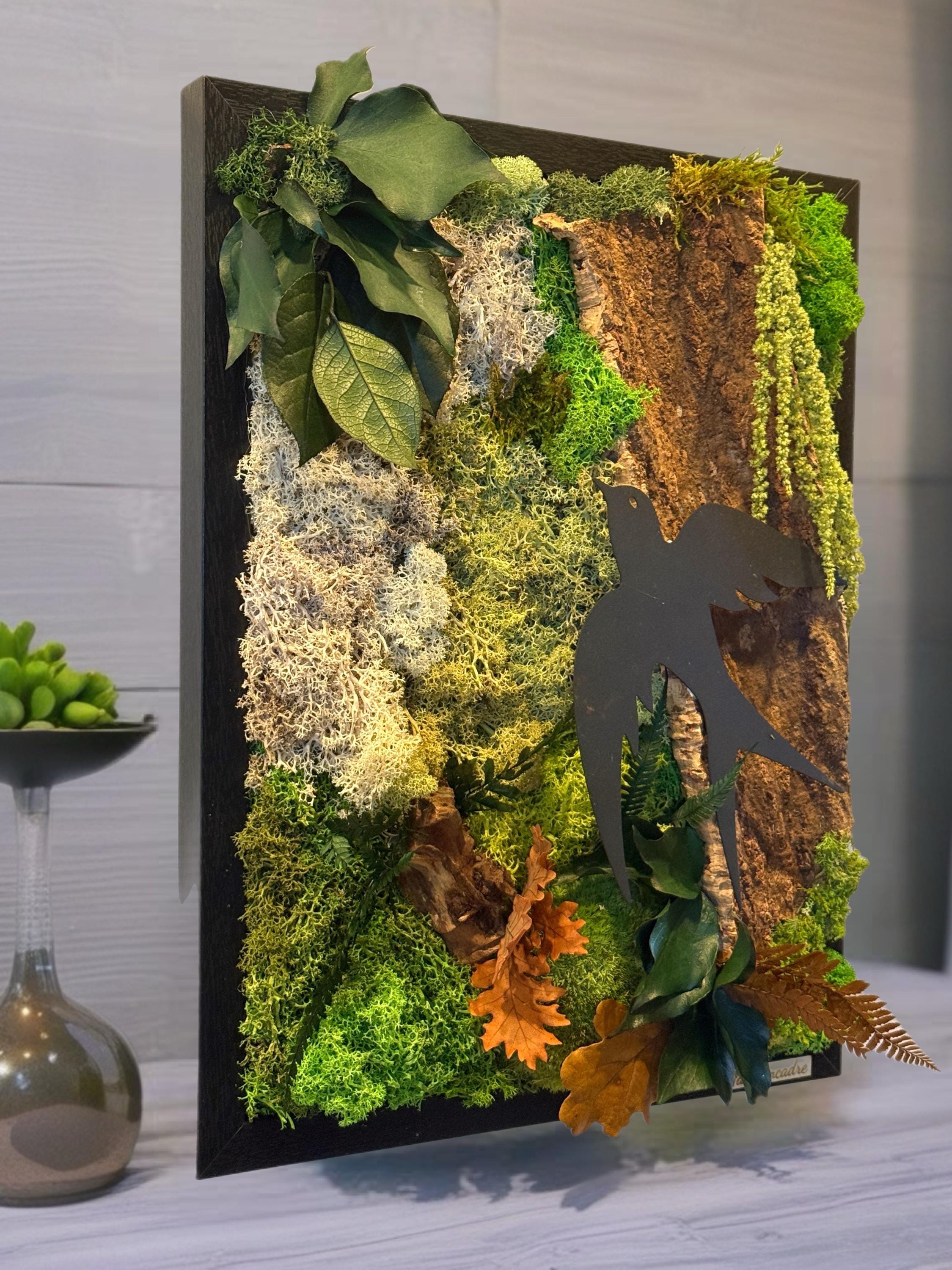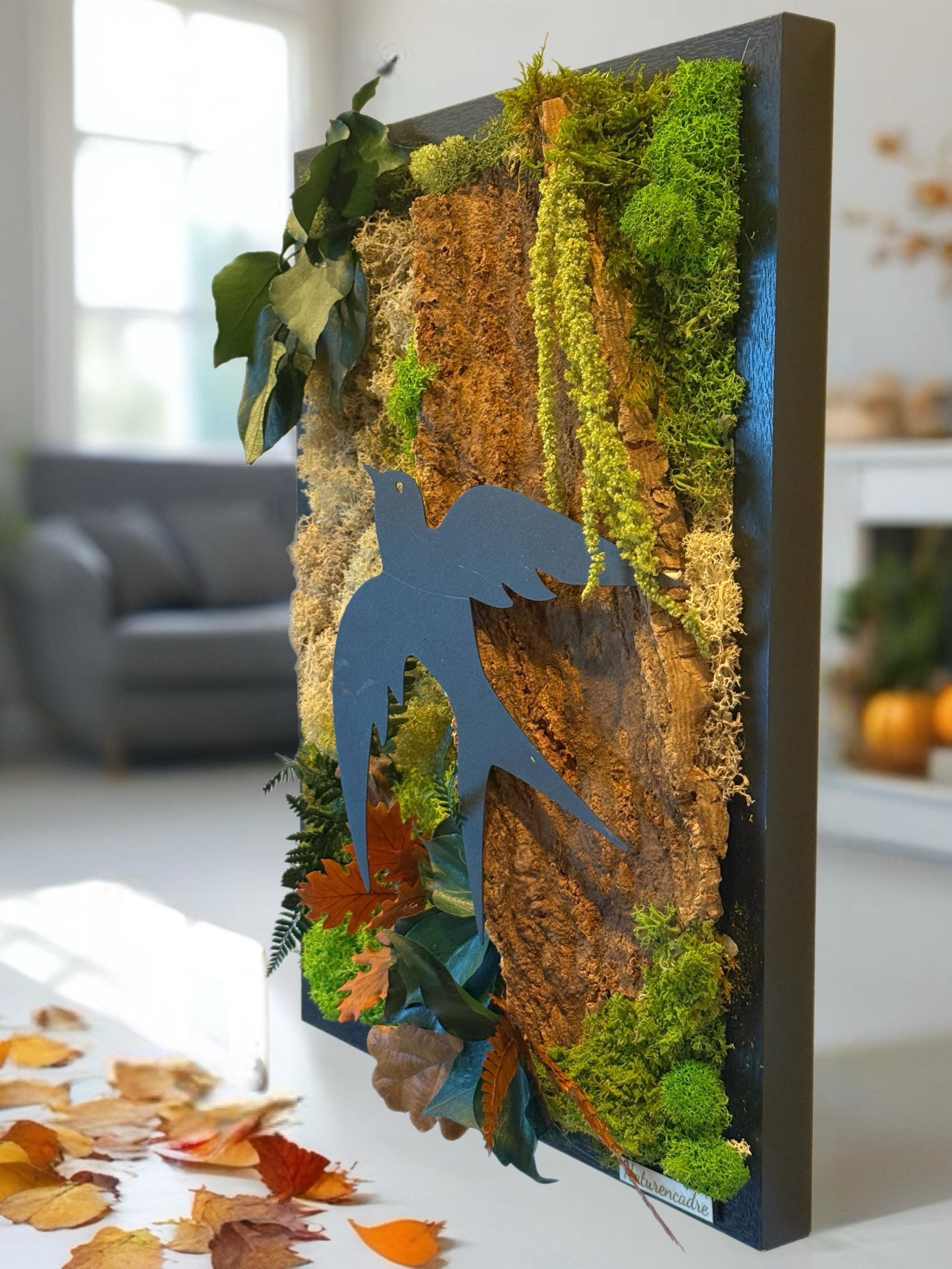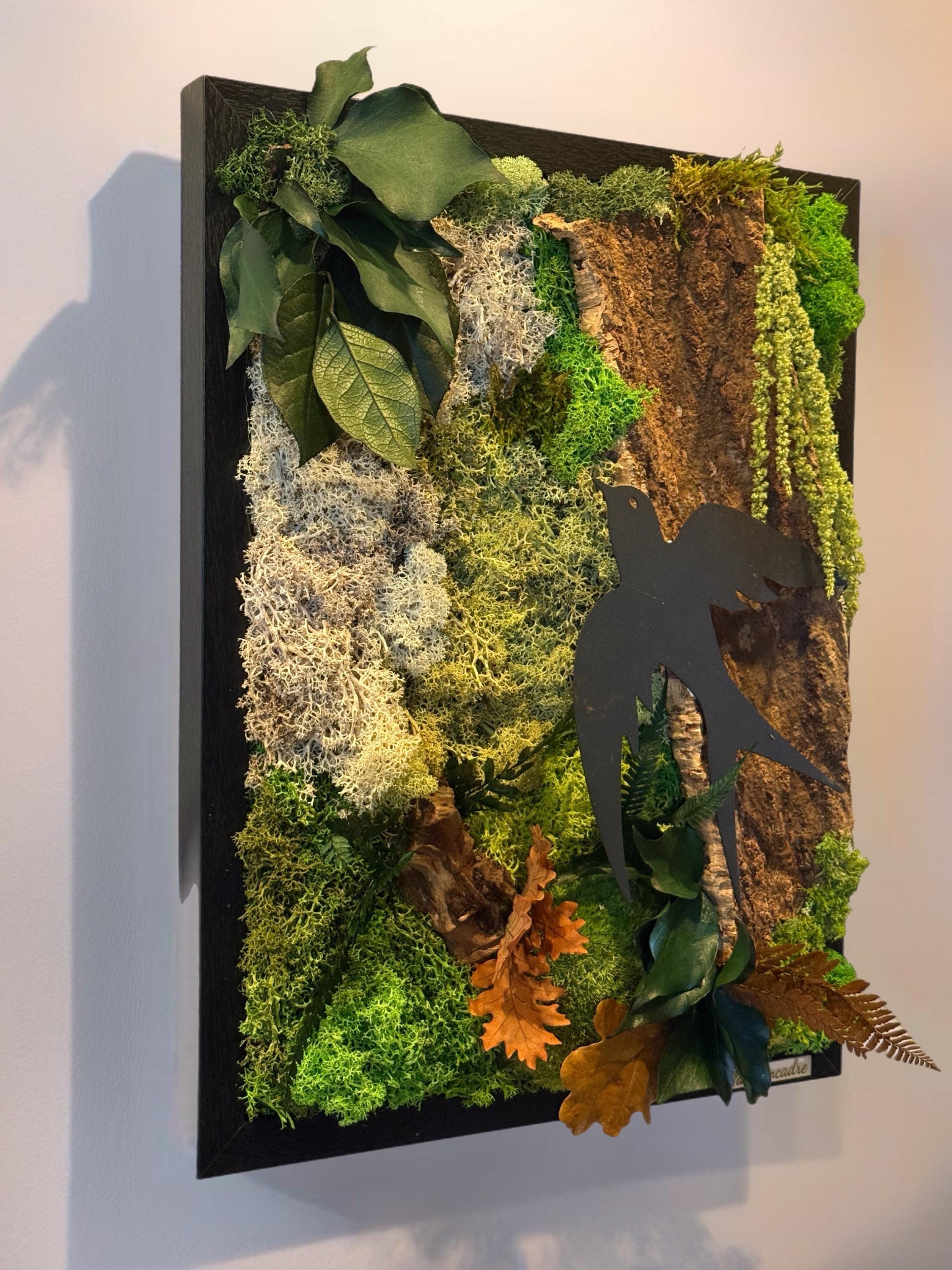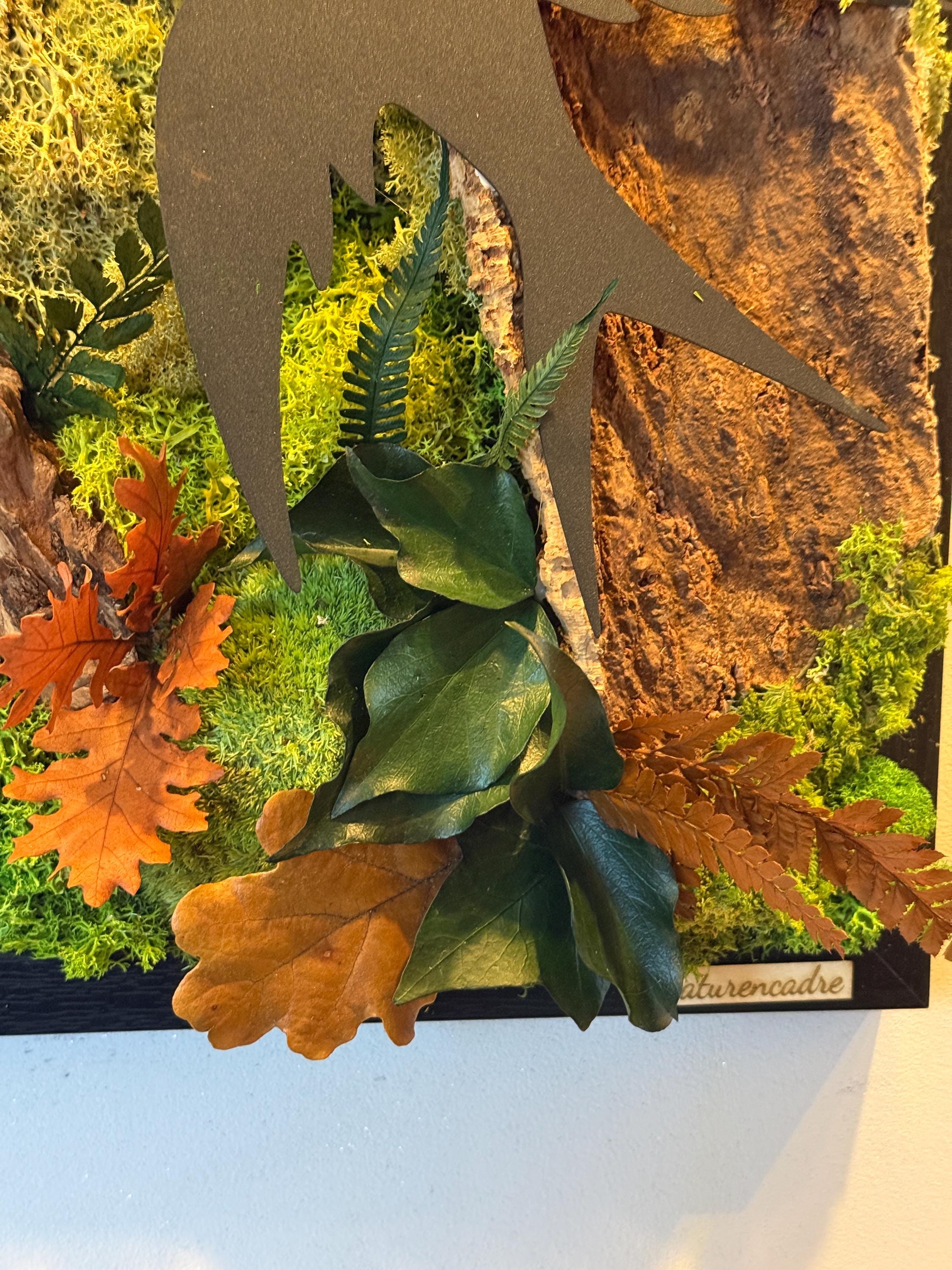 “Ce cadre végétal invite à ralentir, respirer… et rêver.”Tableau 3D en plantes stabilisées, entièrement naturelles
