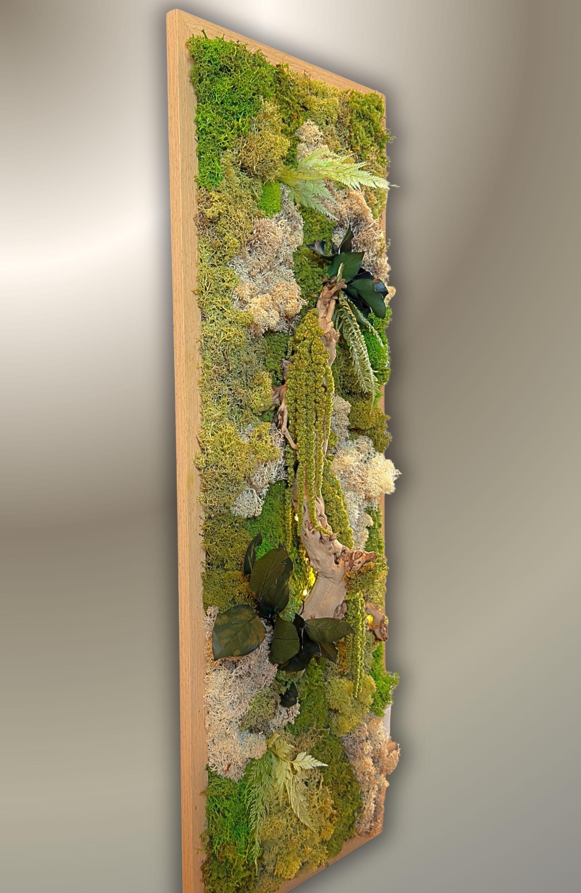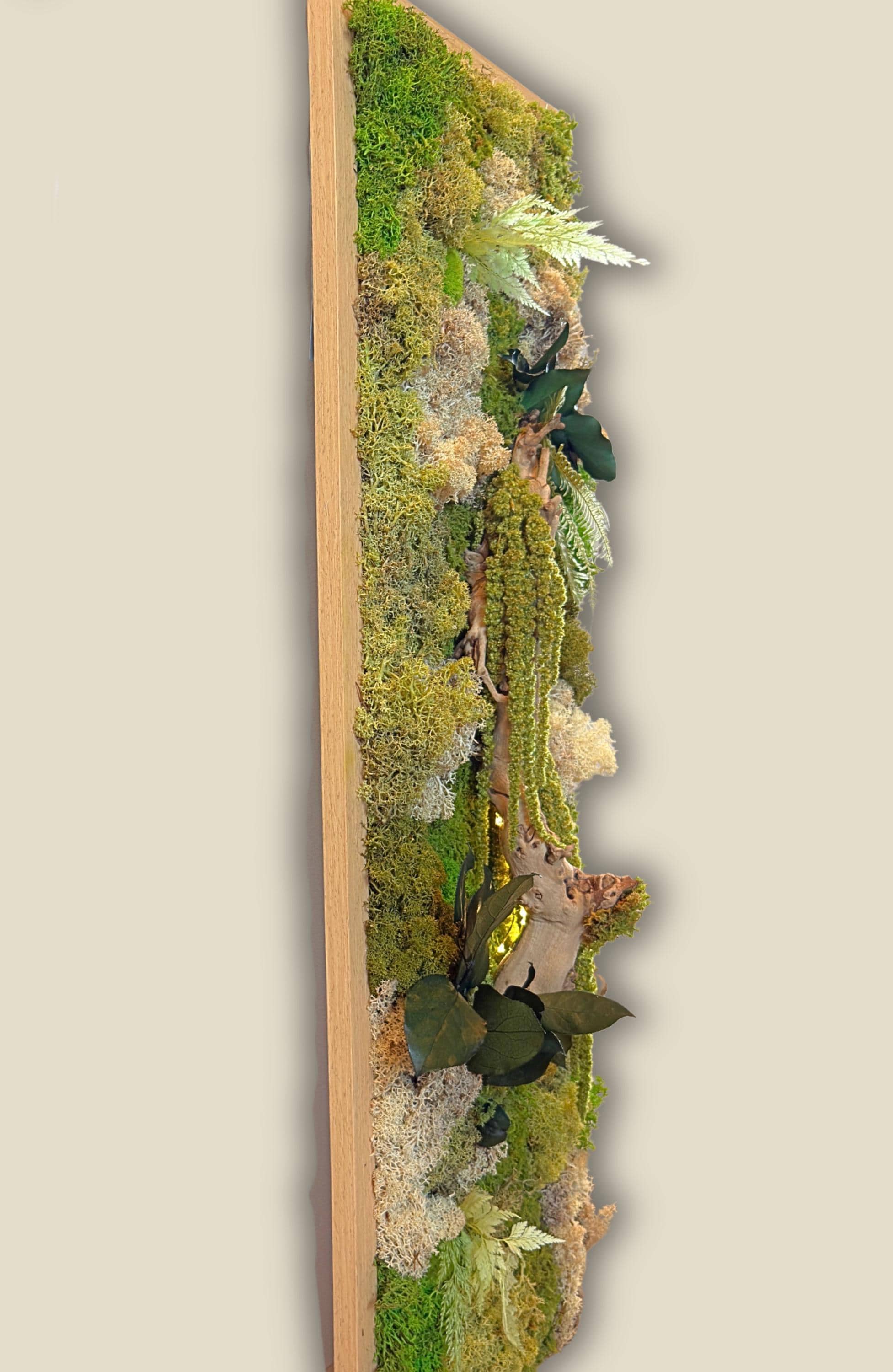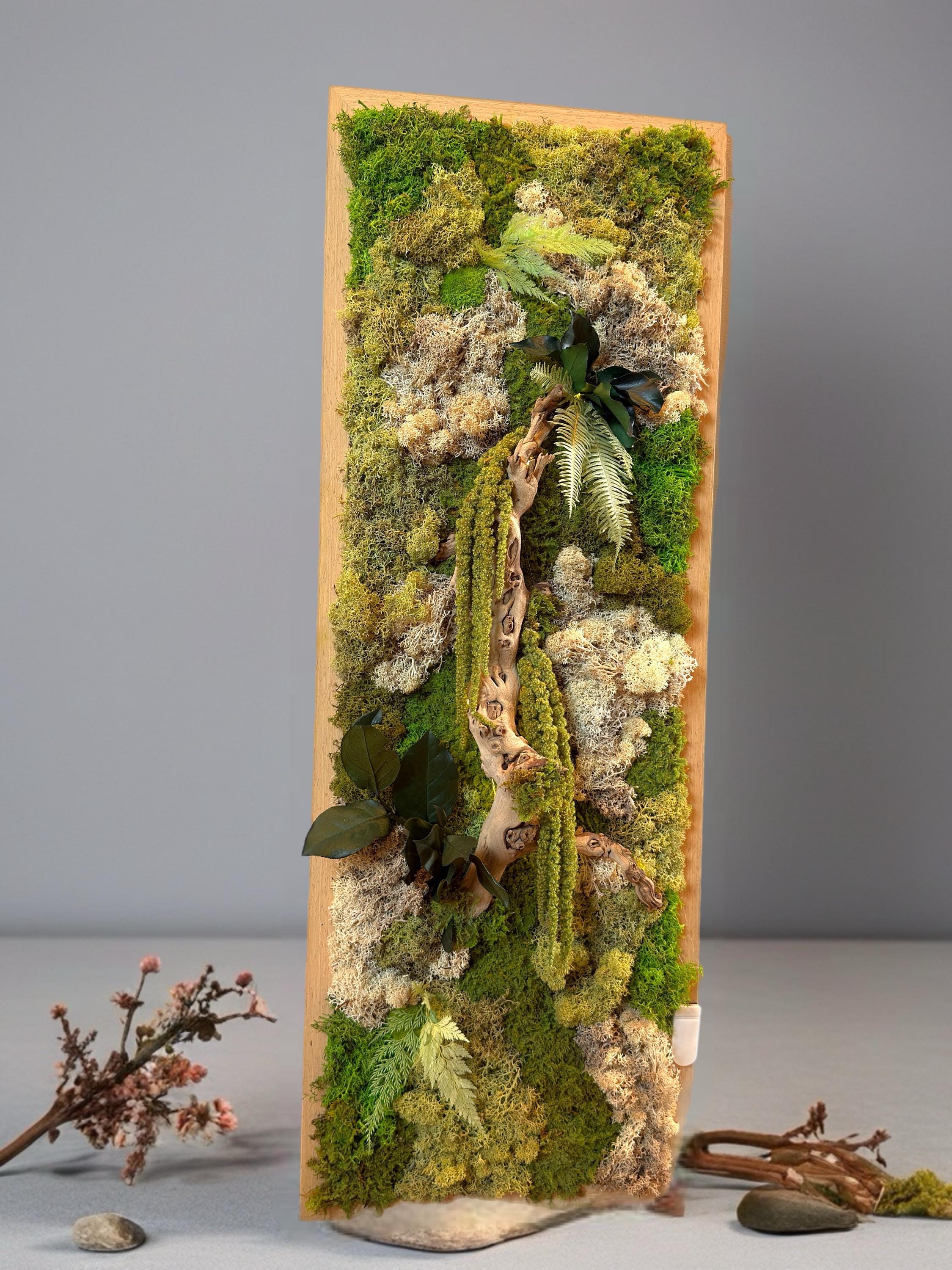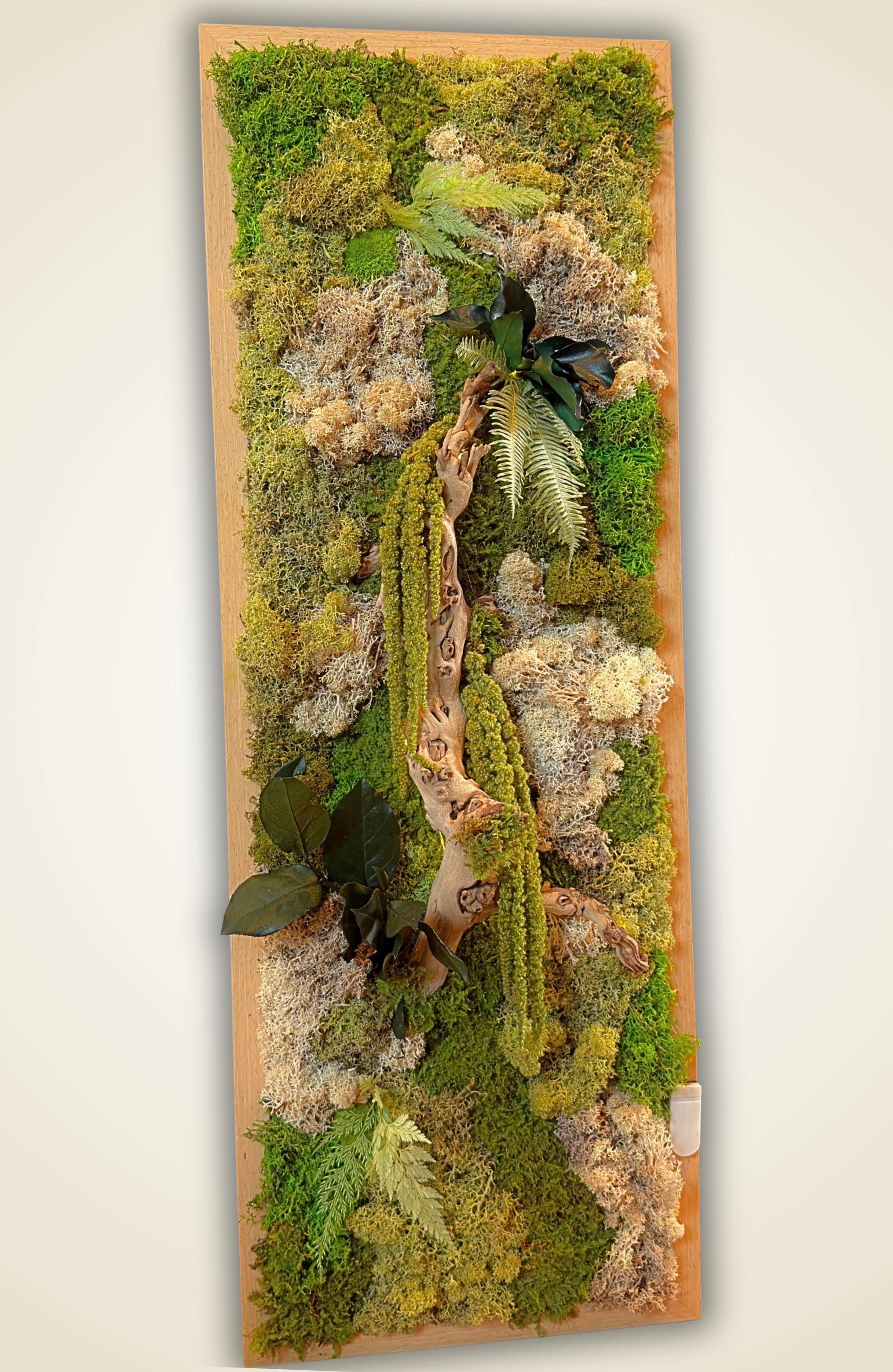 Apportez une touche de nature apaisante à votre intérieur avec ce cadre végétal mural composé de mousses stabilisées, de feuillages soigneusement choisis et d’un élégant bois flotté sculptural. Chaque élément a été sélectionné avec soin pour créer un tableau vivant, à la fois texturé et harmonieux.