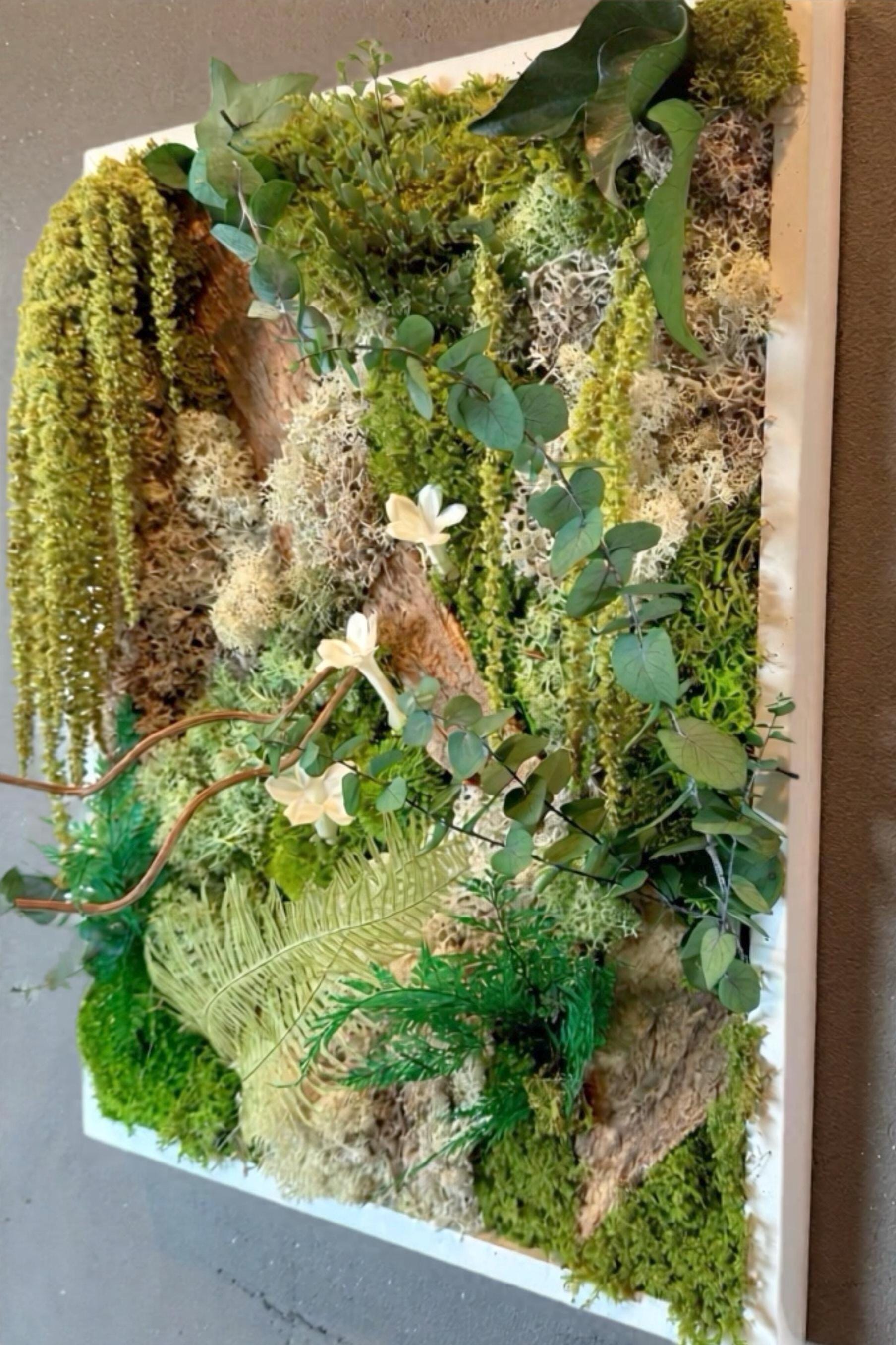 Apportez une touche de nature dans votre intérieur avec ce cadre végétal fait main, inspiré d’une forêt luxuriante.