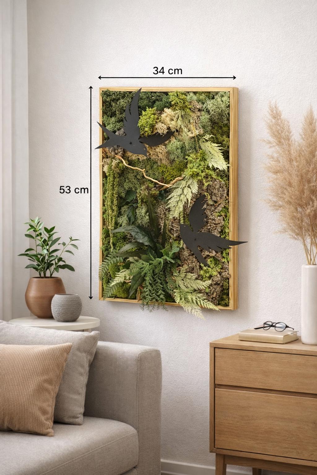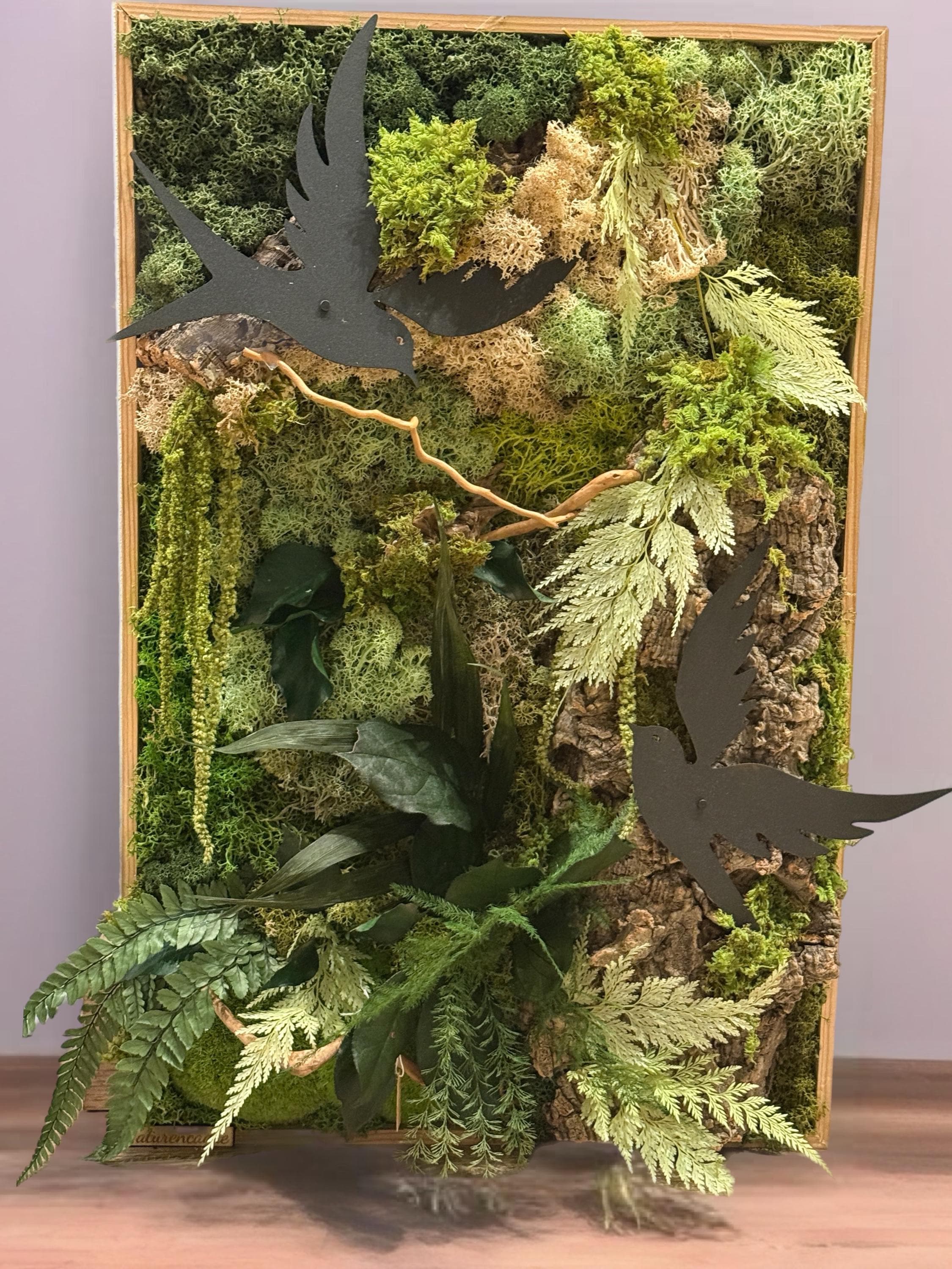 Ce cadre végétal trouvera facilement sa place dans une entrée, un salon, une chambre ou même un espace professionnel. Il apporte une note de fraîcheur, de sérénité et d’originalité, tout en racontant une histoire : celle d’un oiseau libre dans un écrin de nature.