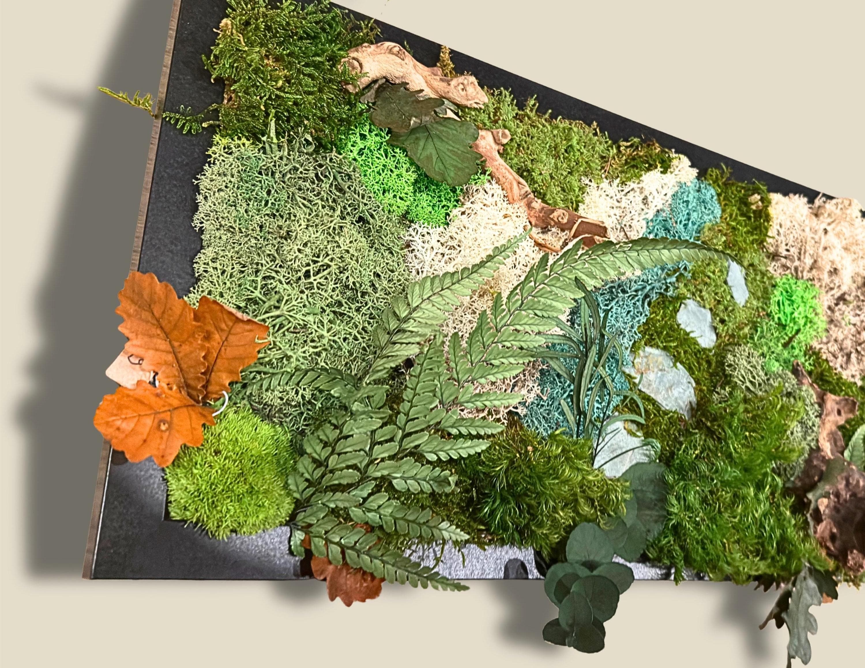 • 🌱 Composition: mosses, lichens, stabilized foliage & driftwood