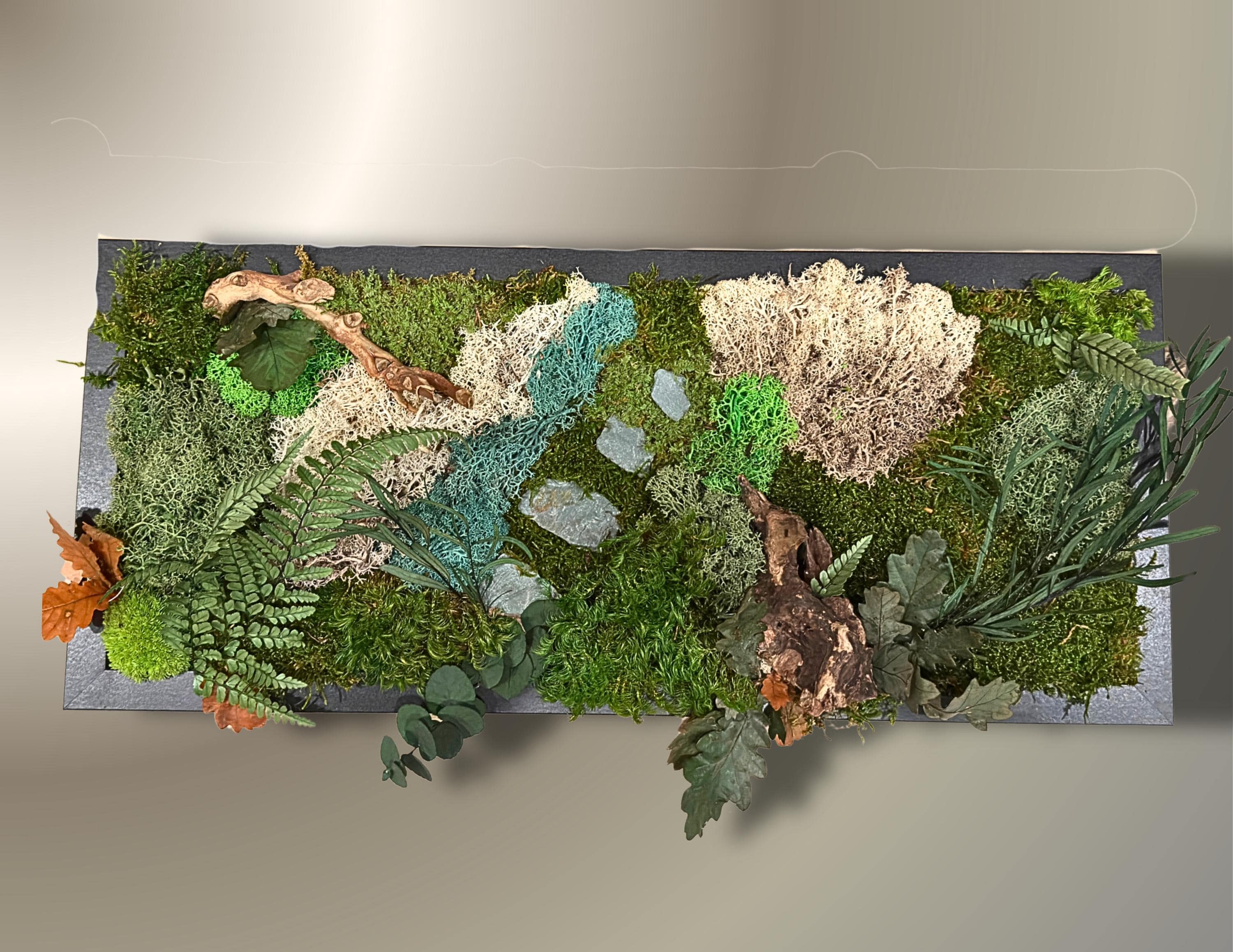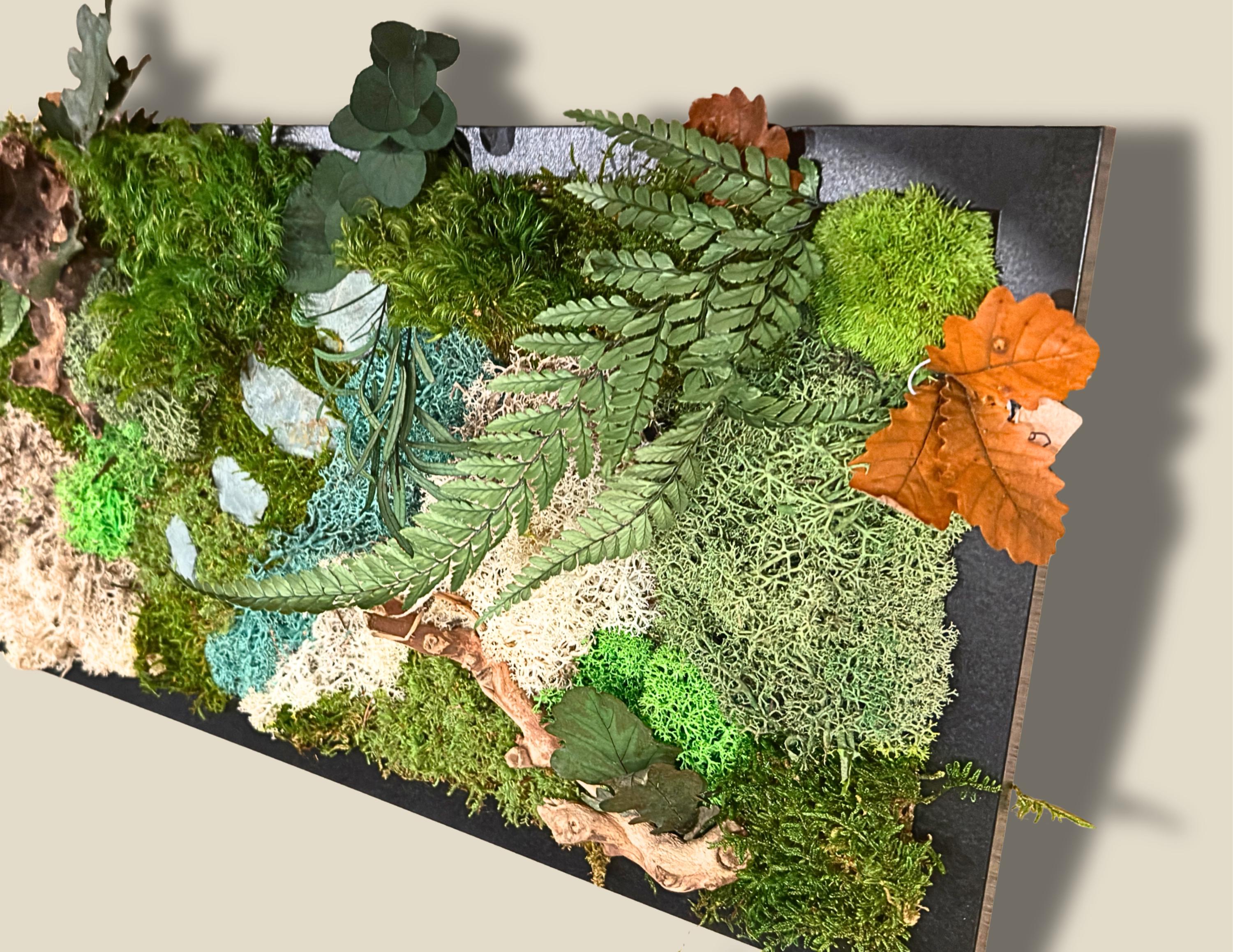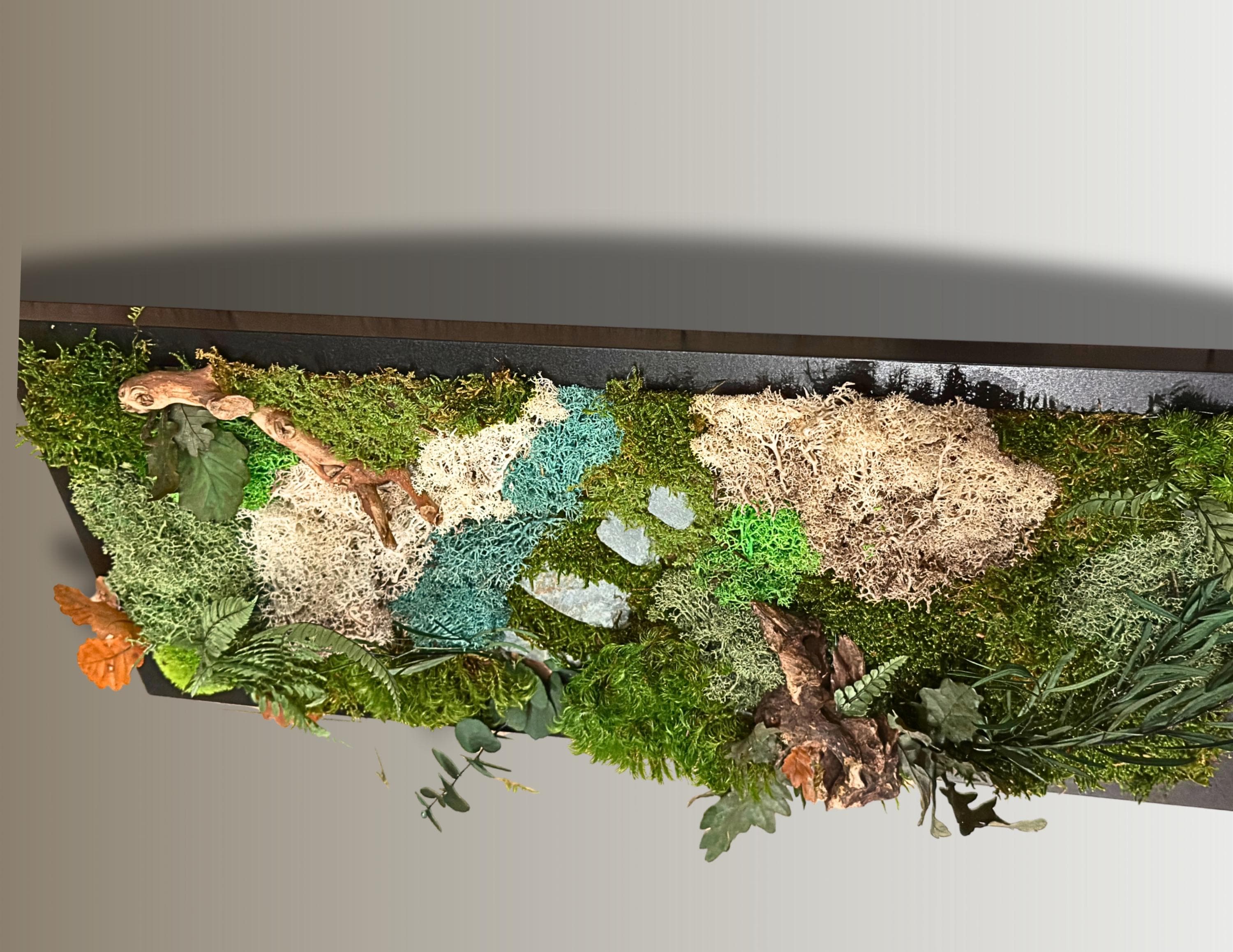 • 🌱 Composition: mosses, lichens, stabilized foliage & driftwood