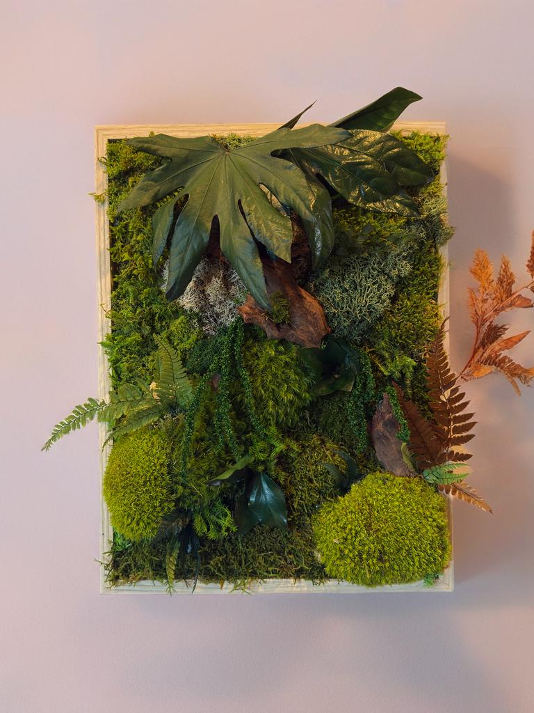 Apportez une touche de nature et d’élégance à votre intérieur avec ce cadre végétal artisanal en mousse stabilisée.