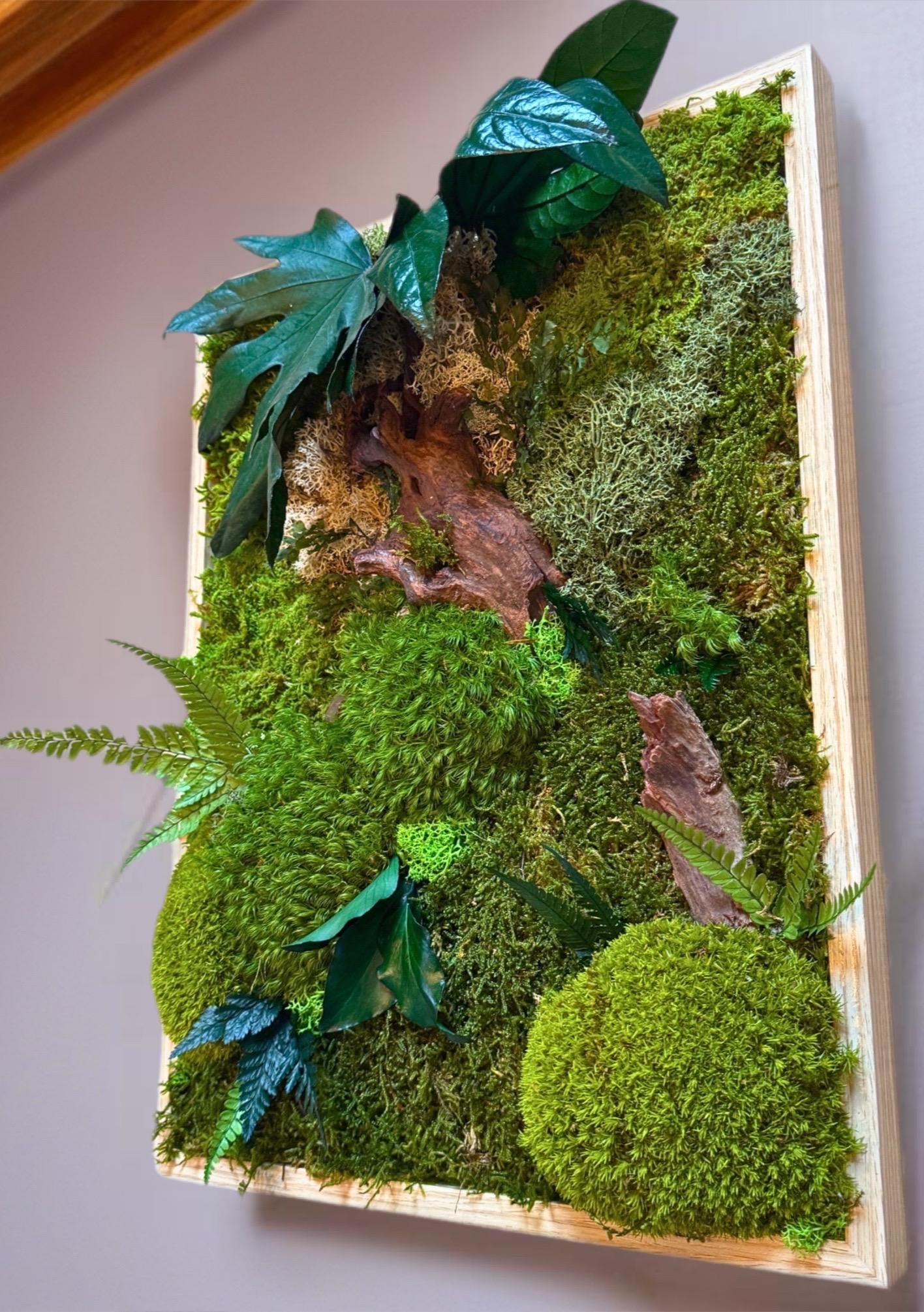 Apportez une touche de nature et d’élégance à votre intérieur avec ce cadre végétal artisanal en mousse stabilisée.