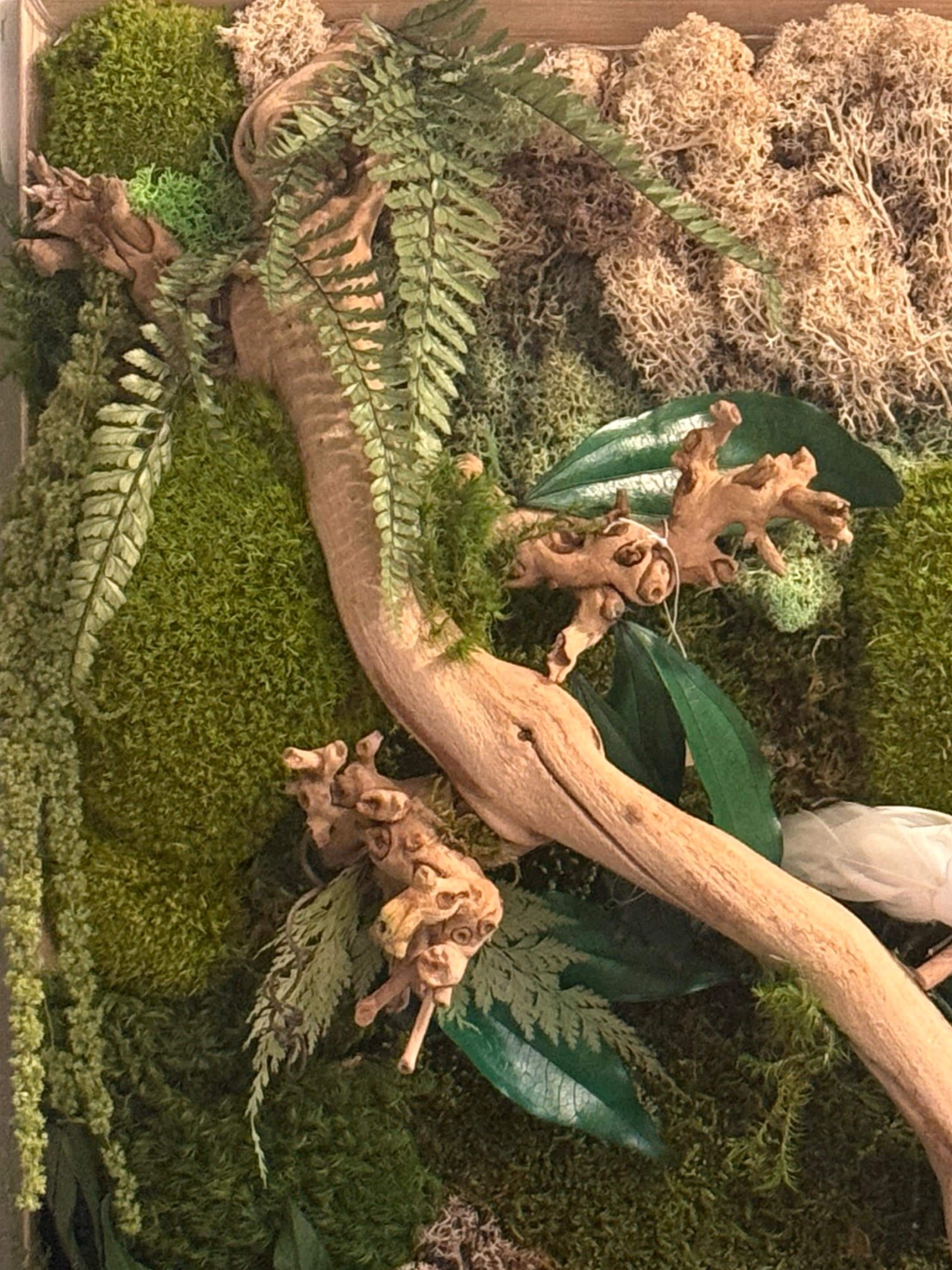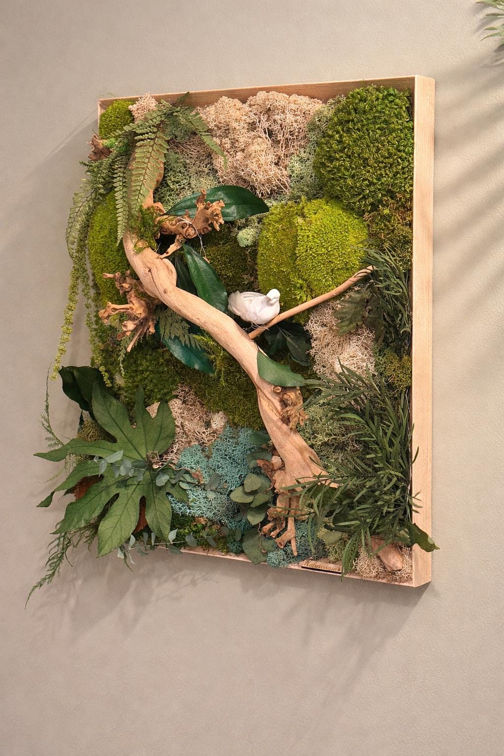 • Réalisé avec des végétaux stabilisés 100% naturels (mousses, fougères, feuillages, branches)