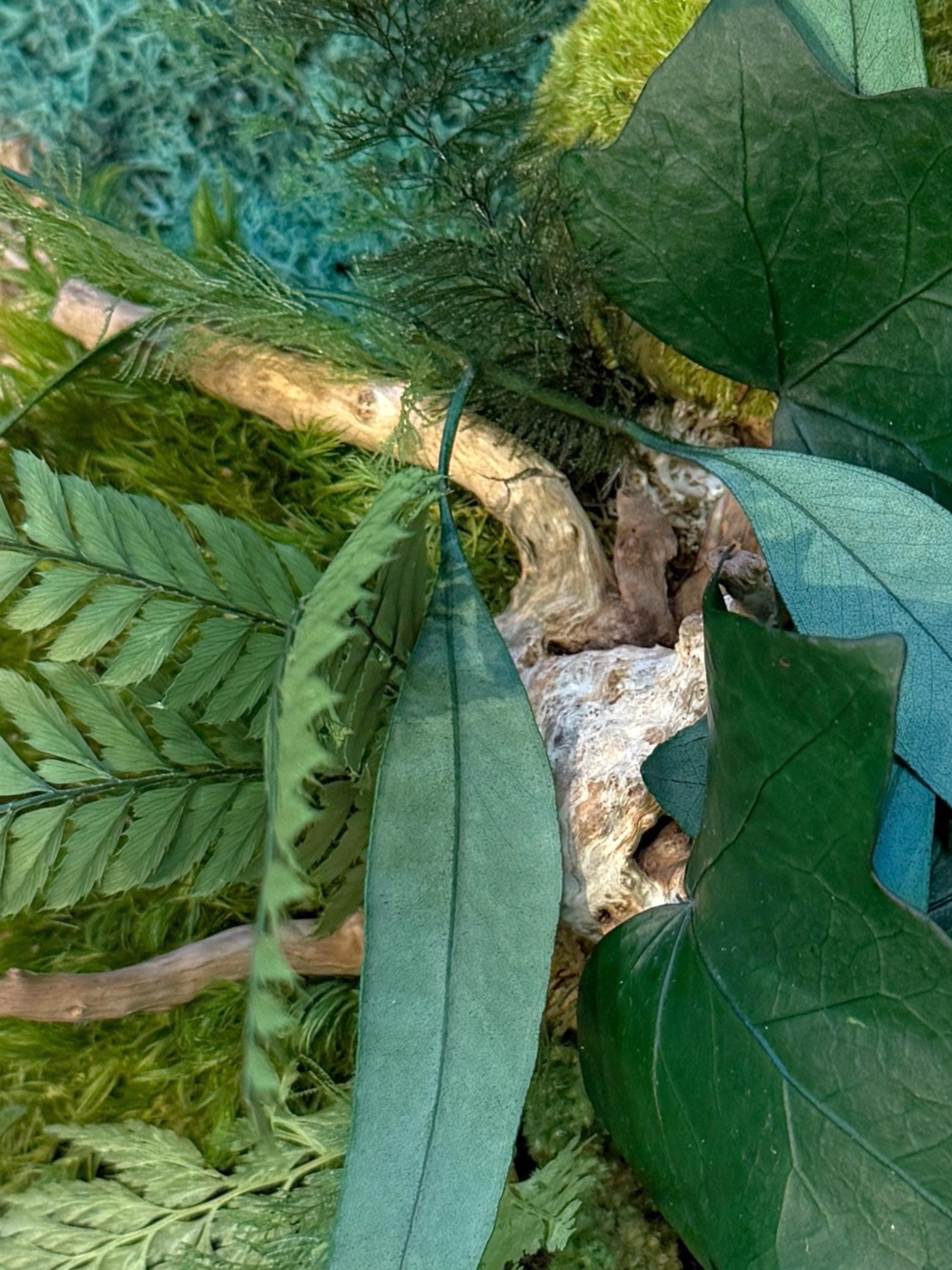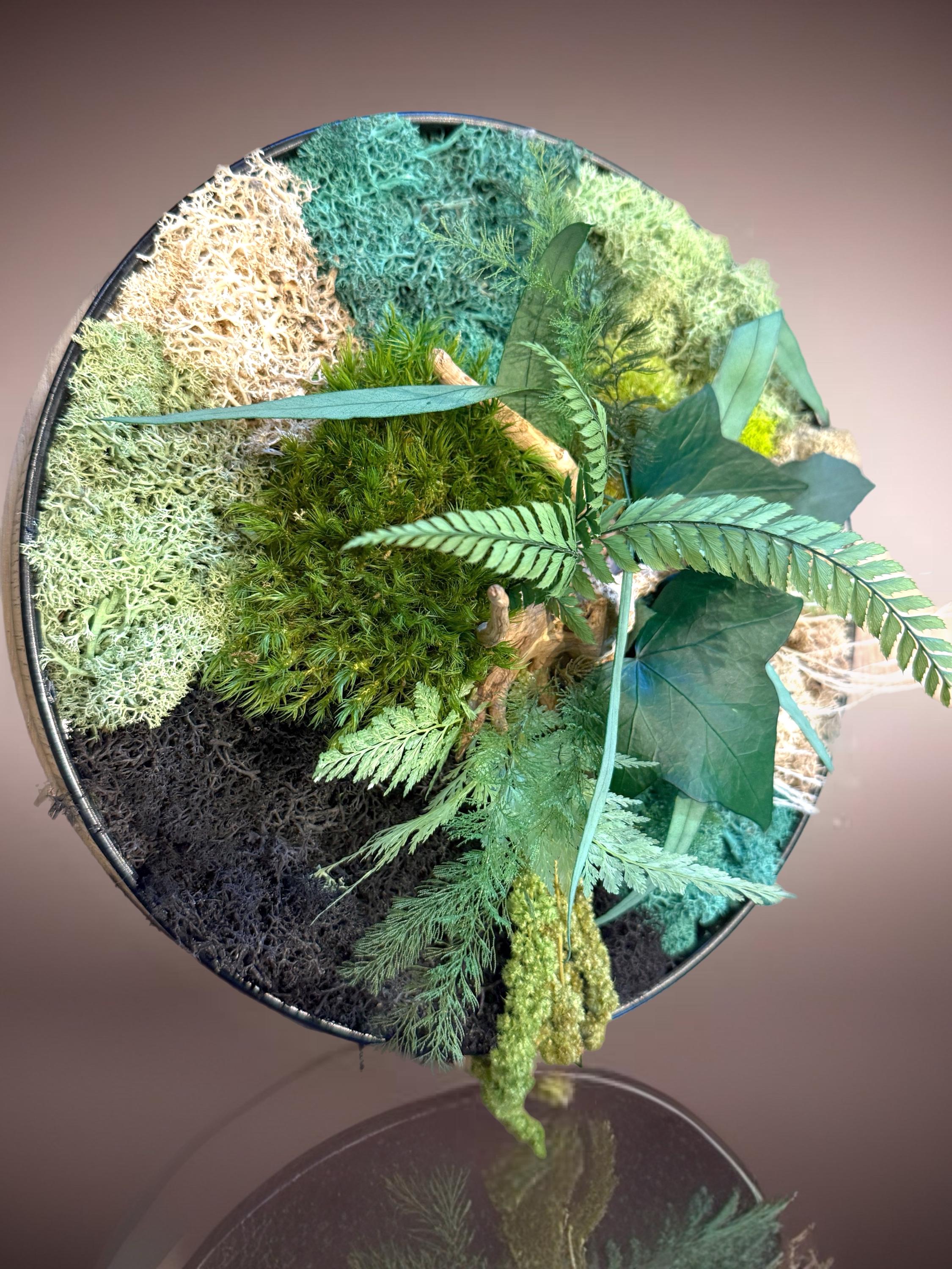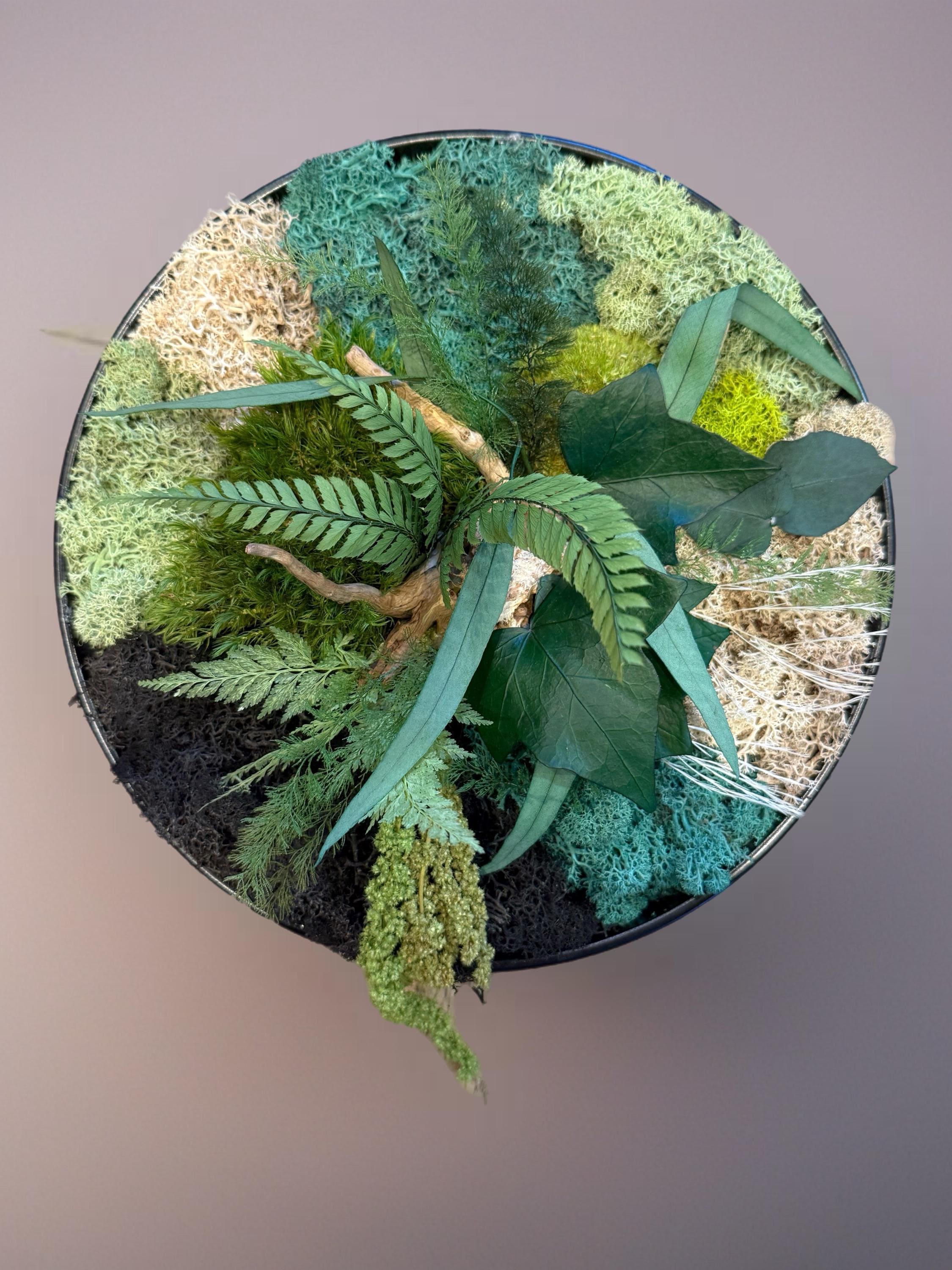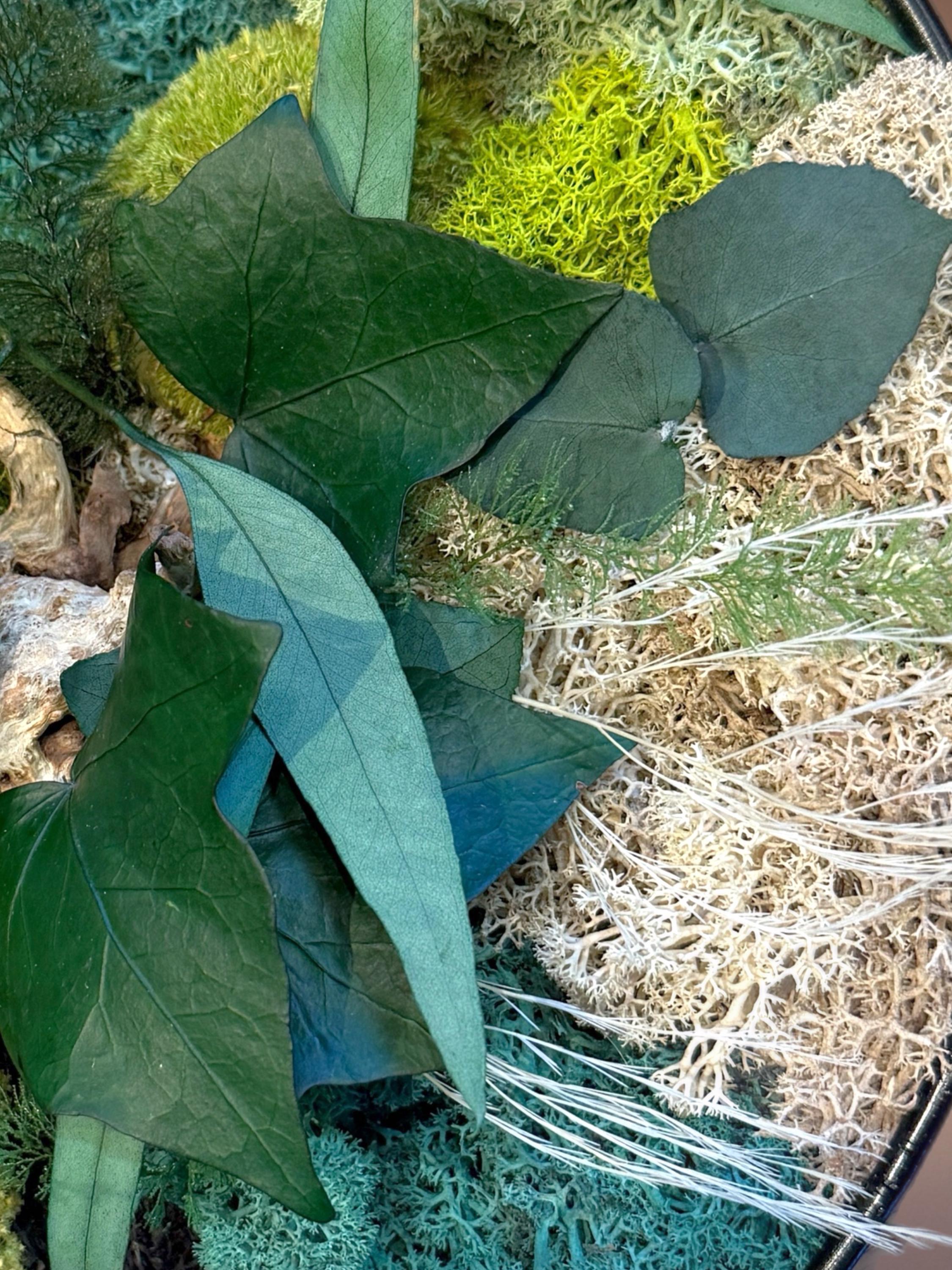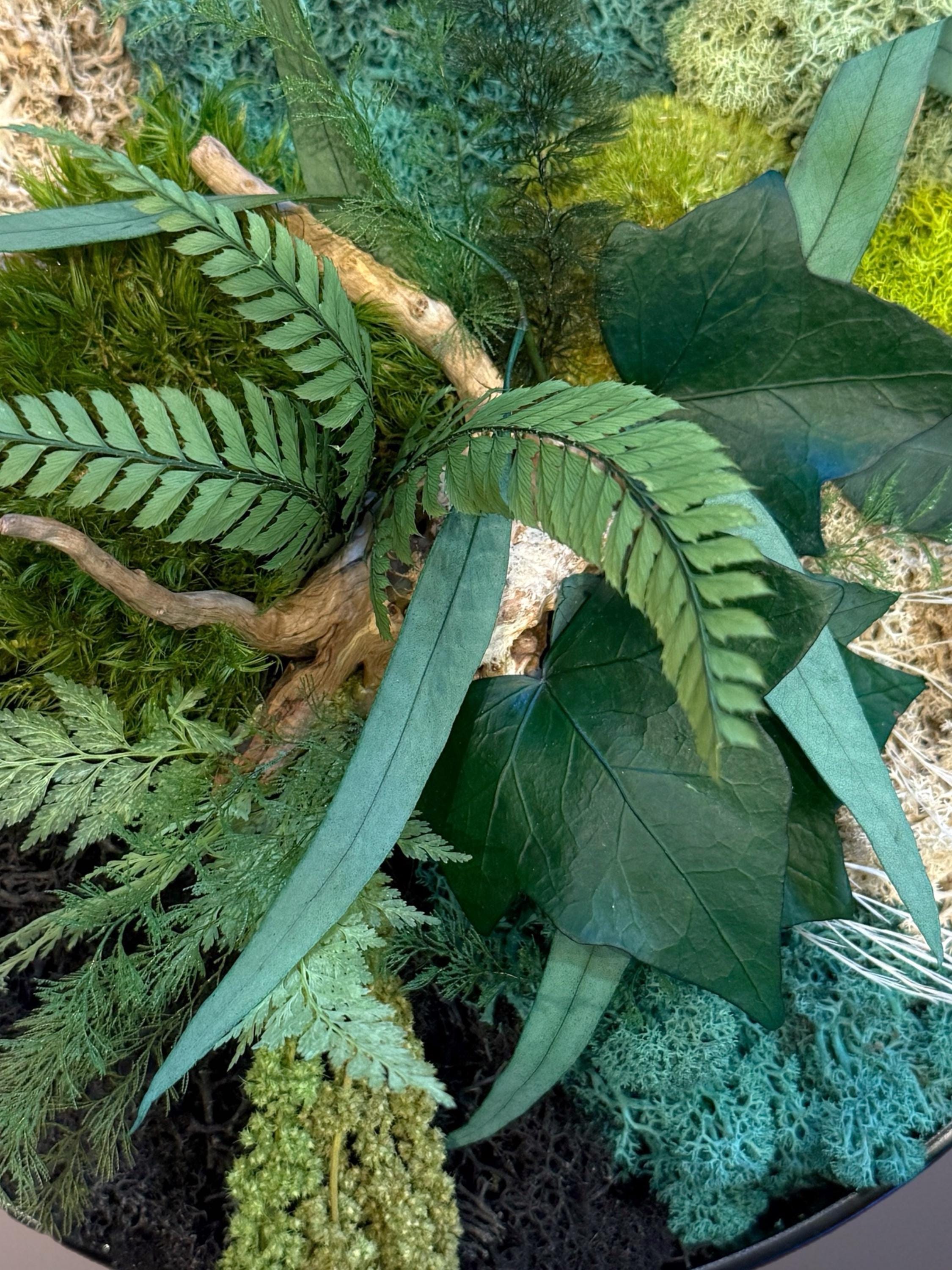 Chaque création est unique : les végétaux sont naturels et stabilisés (technique écologique qui fige leur aspect frais et souple sans entretien).