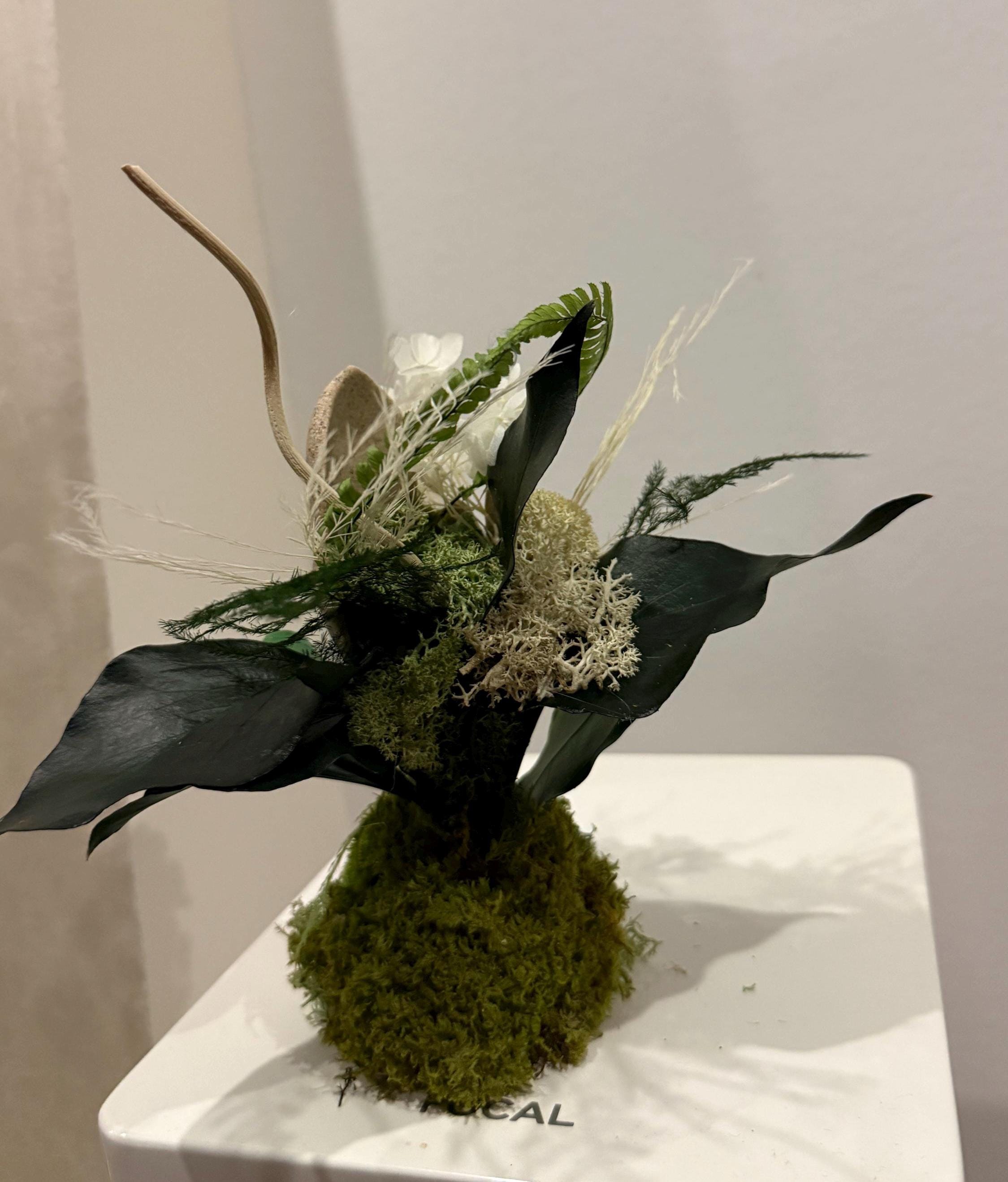 🌿 Une œuvre florale contemporaine, où la beauté du végétal rencontre la poésie du minéral.
