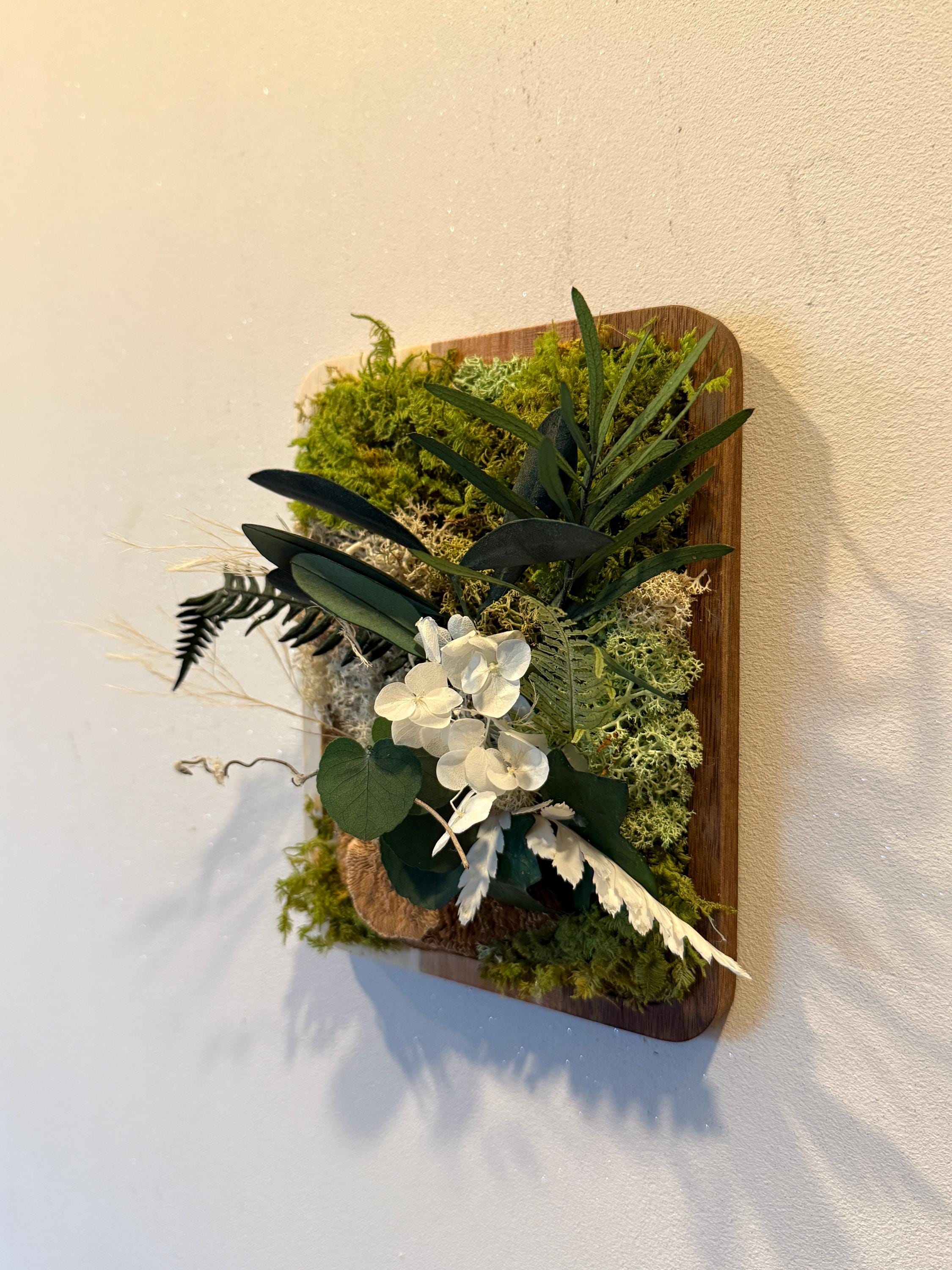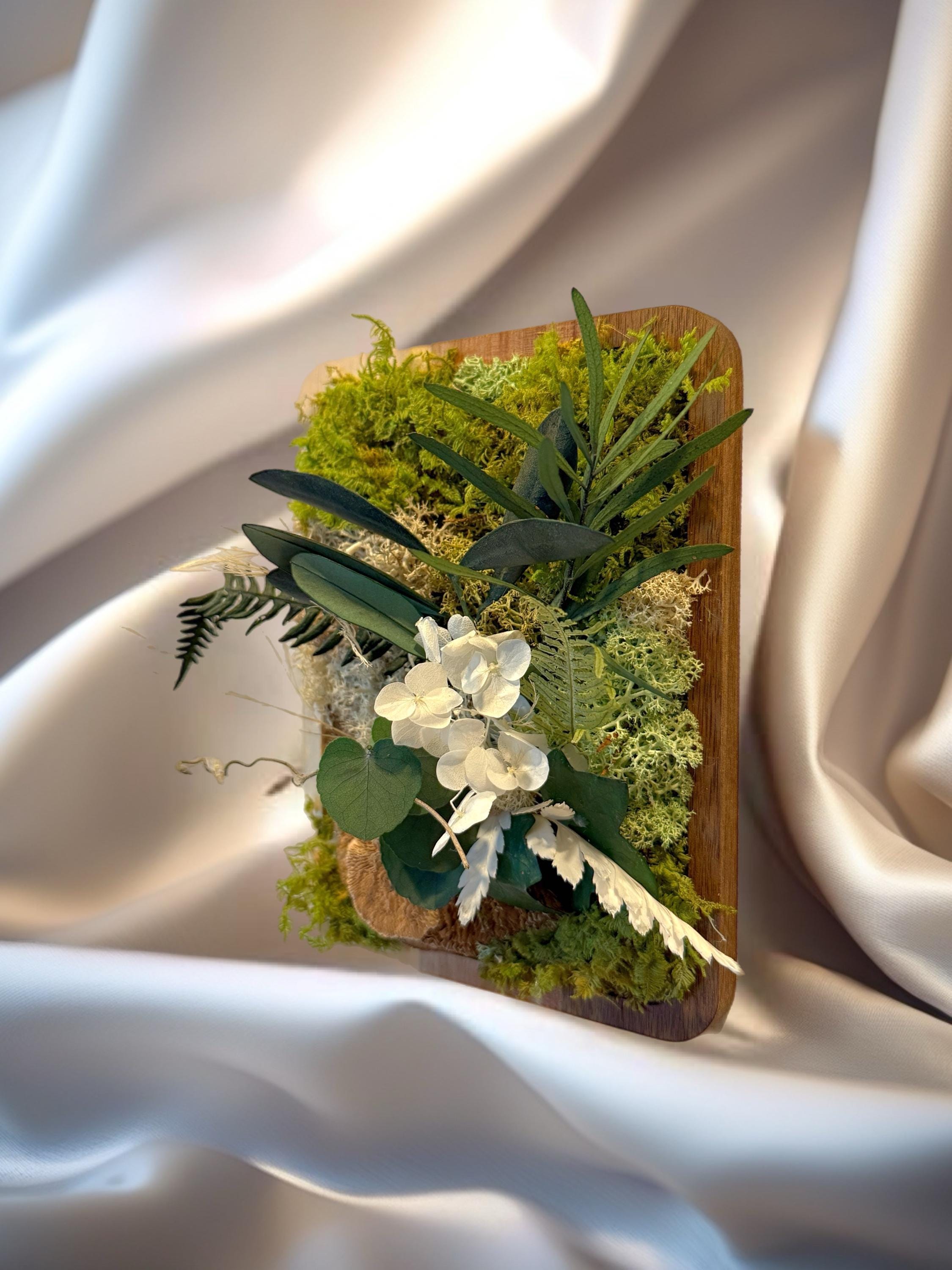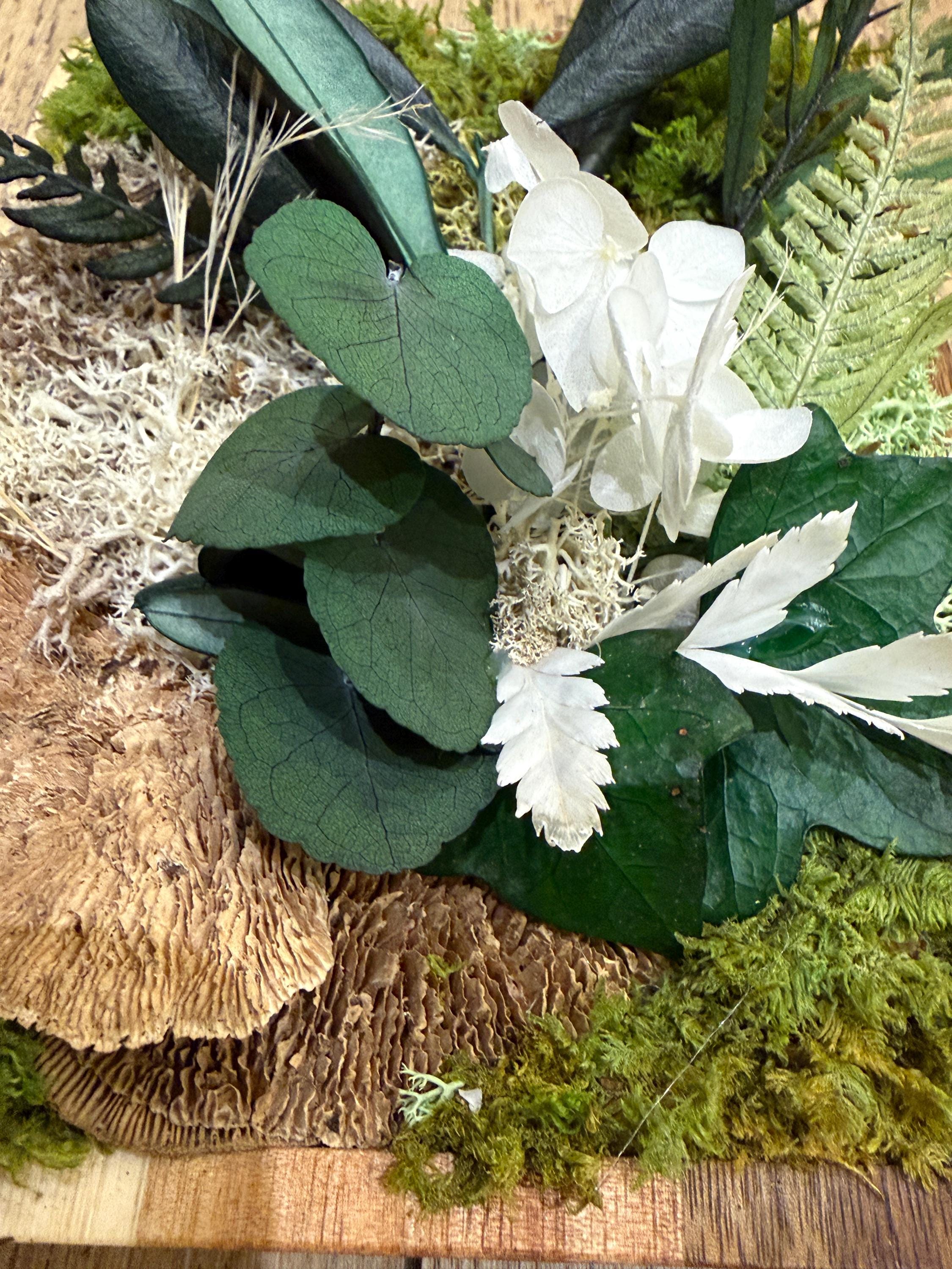 • Matériaux : mousse et feuillage stabilisés, ‘cadre bois