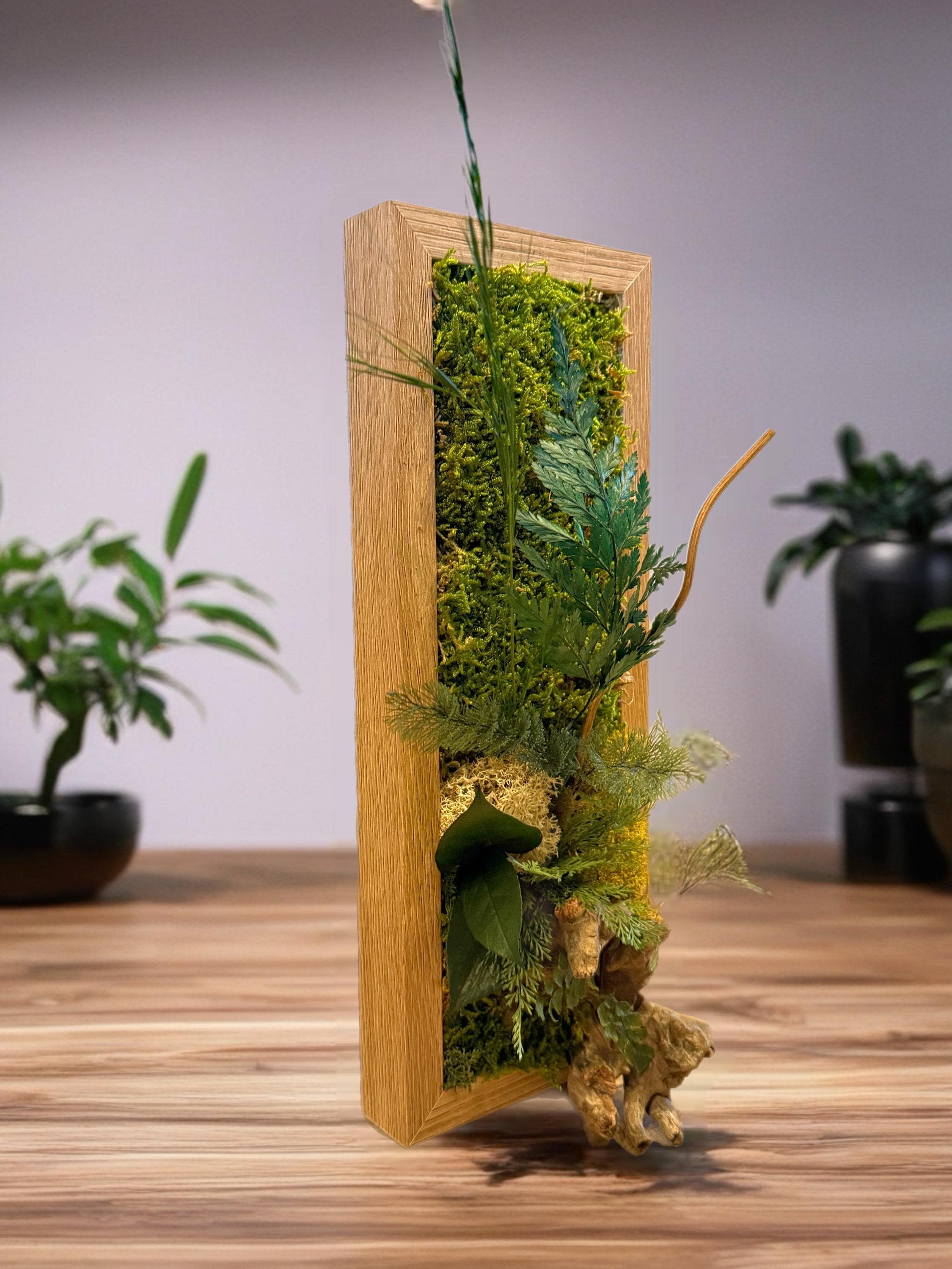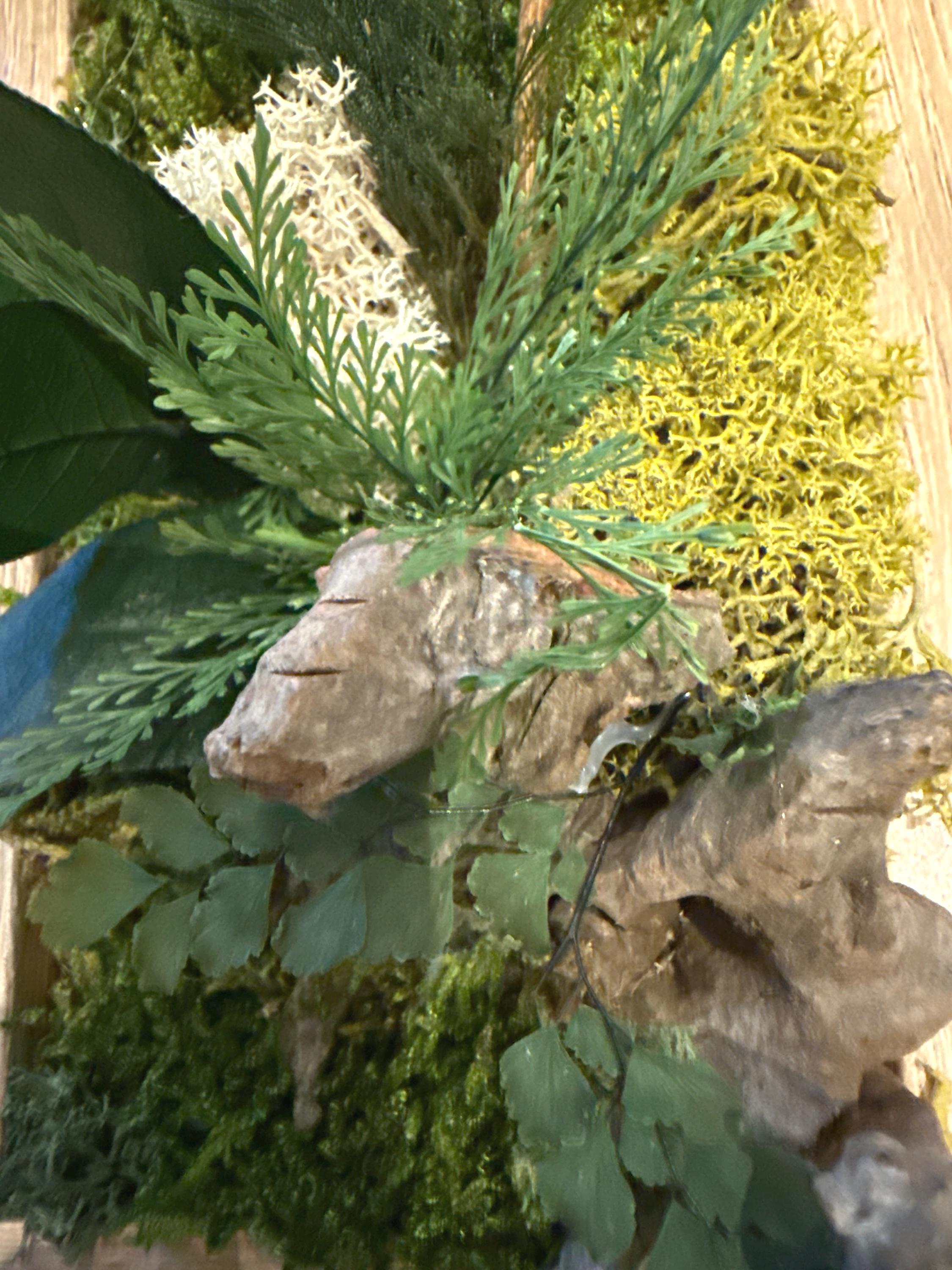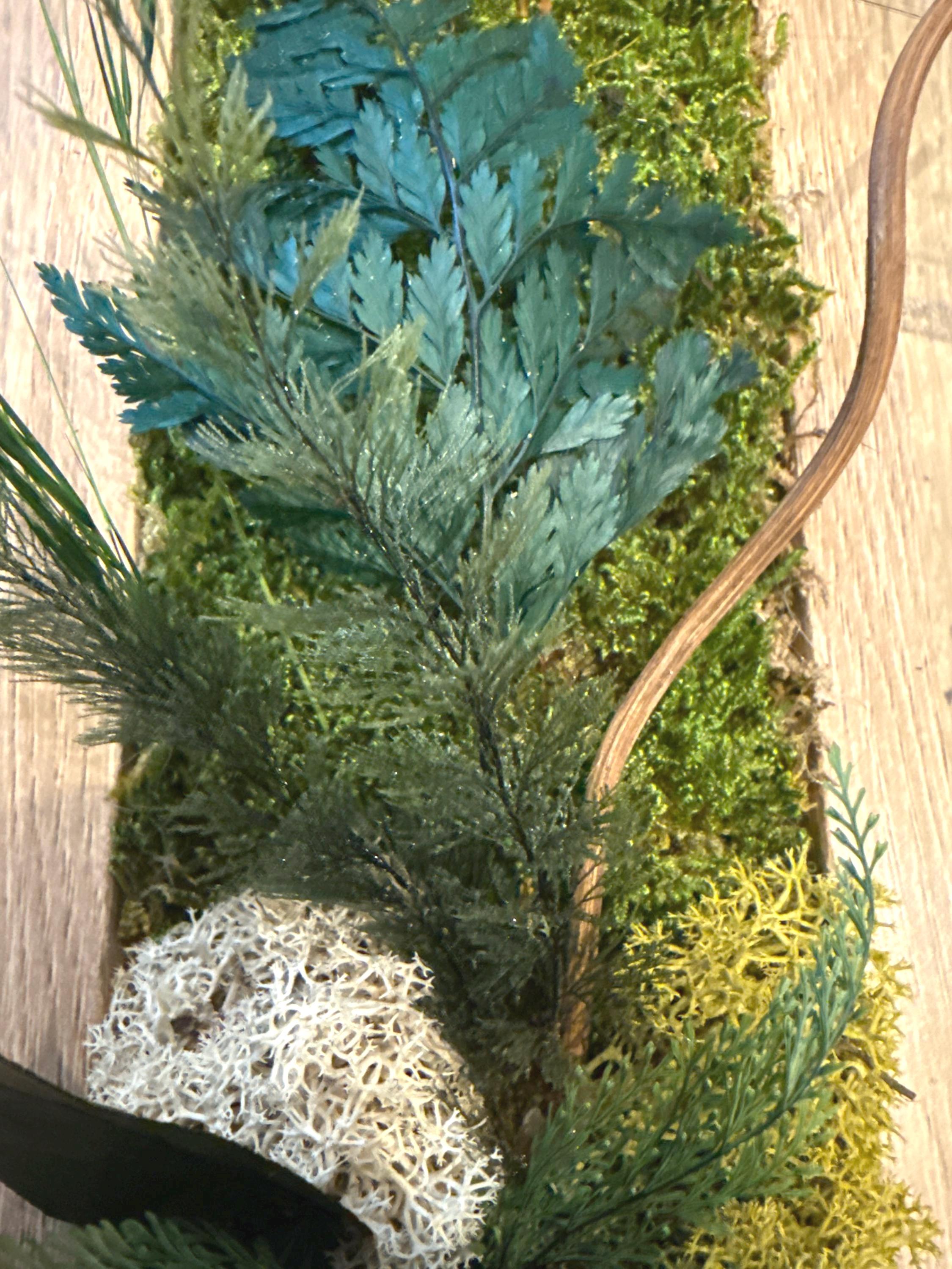 • Composition : mousse plate stabilisée, lichens, fougères, lierre et feuillage stabilisé