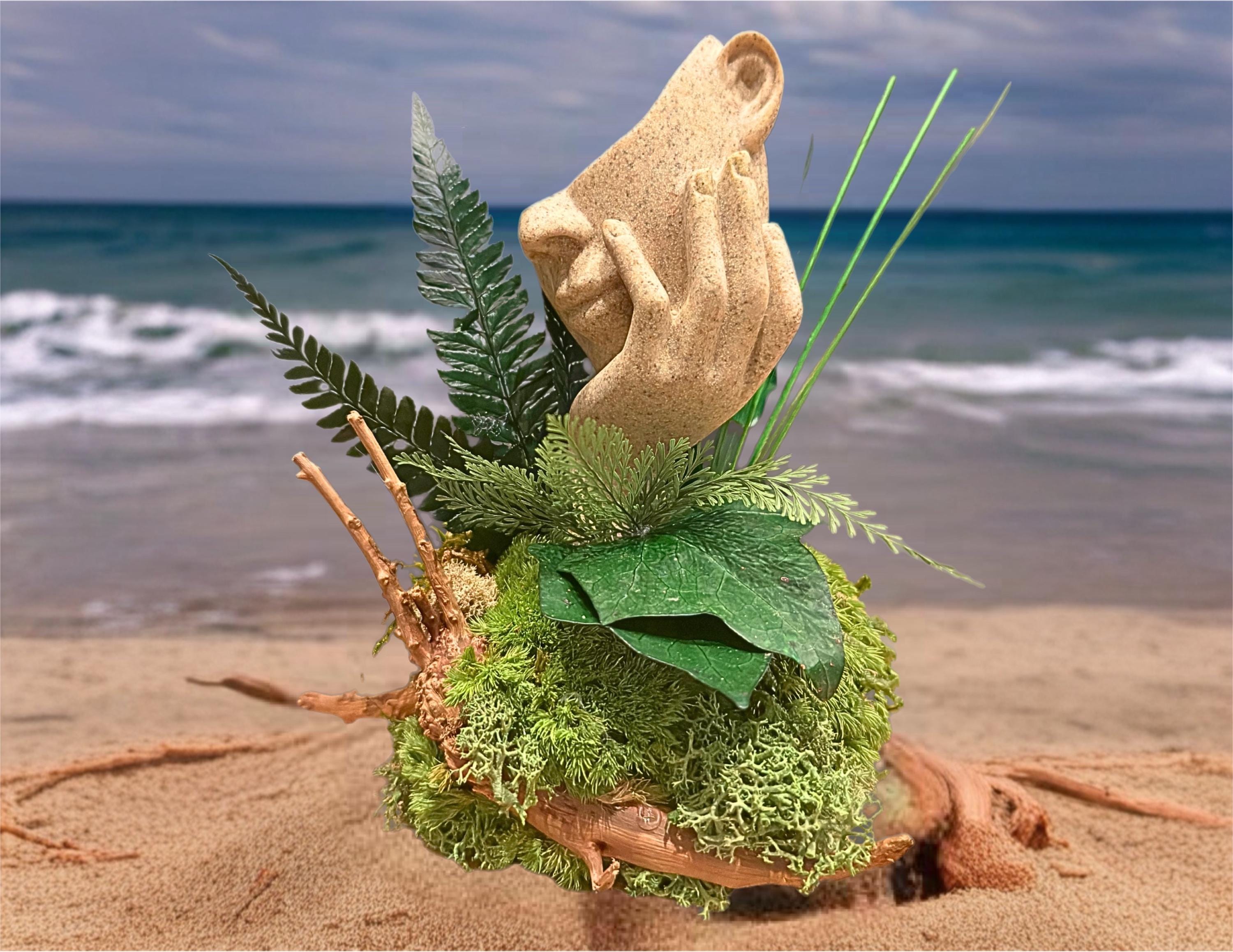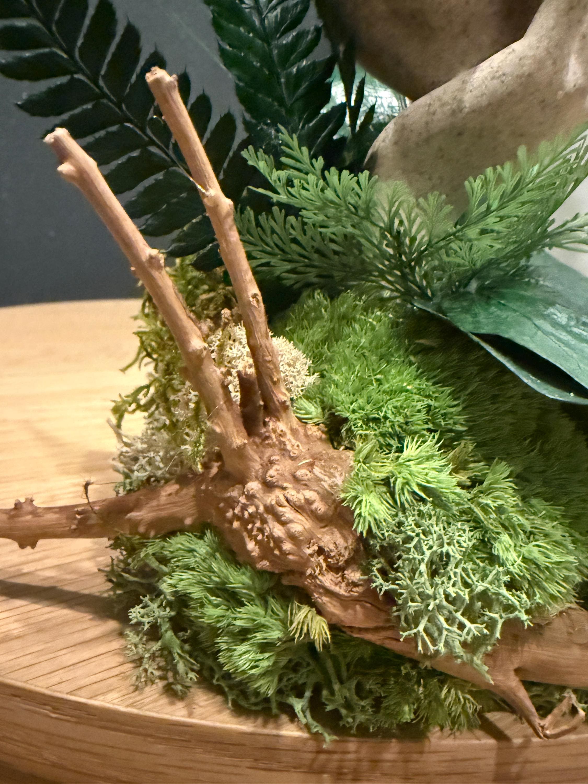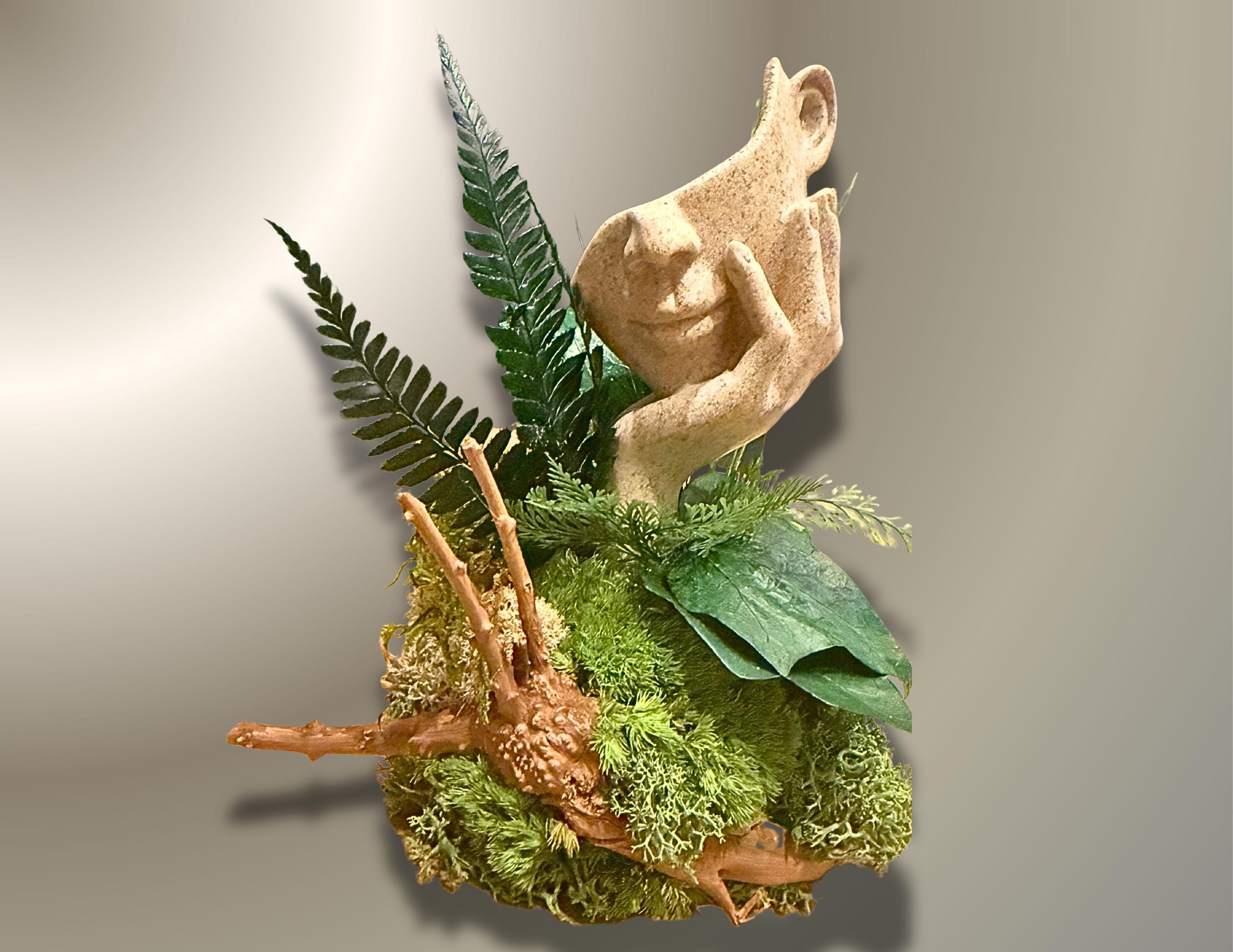 • Matériaux : mousse, fougères stabilisee+ sculpture de visage