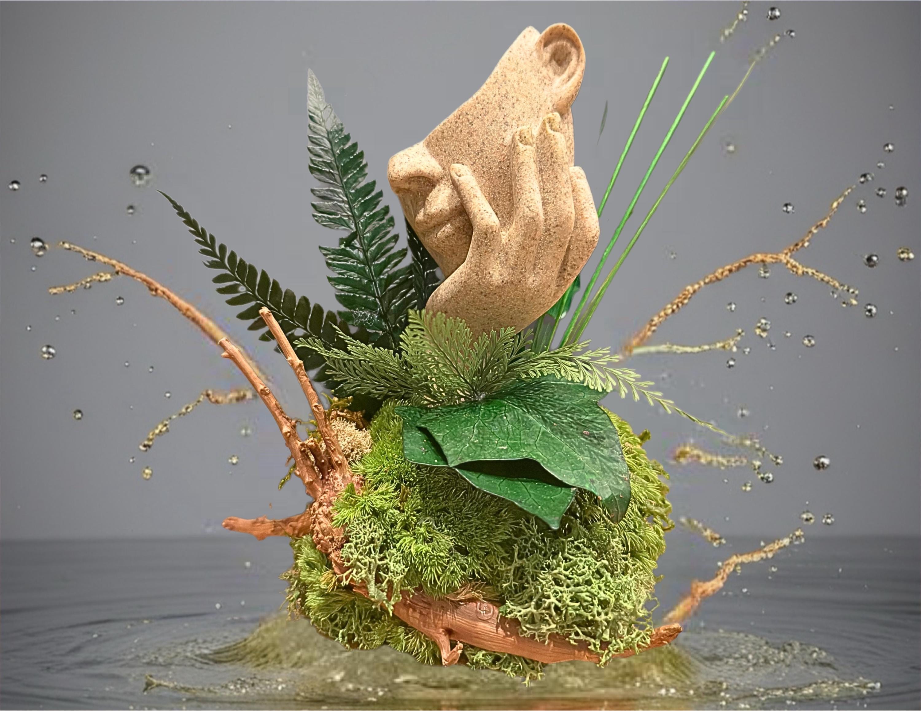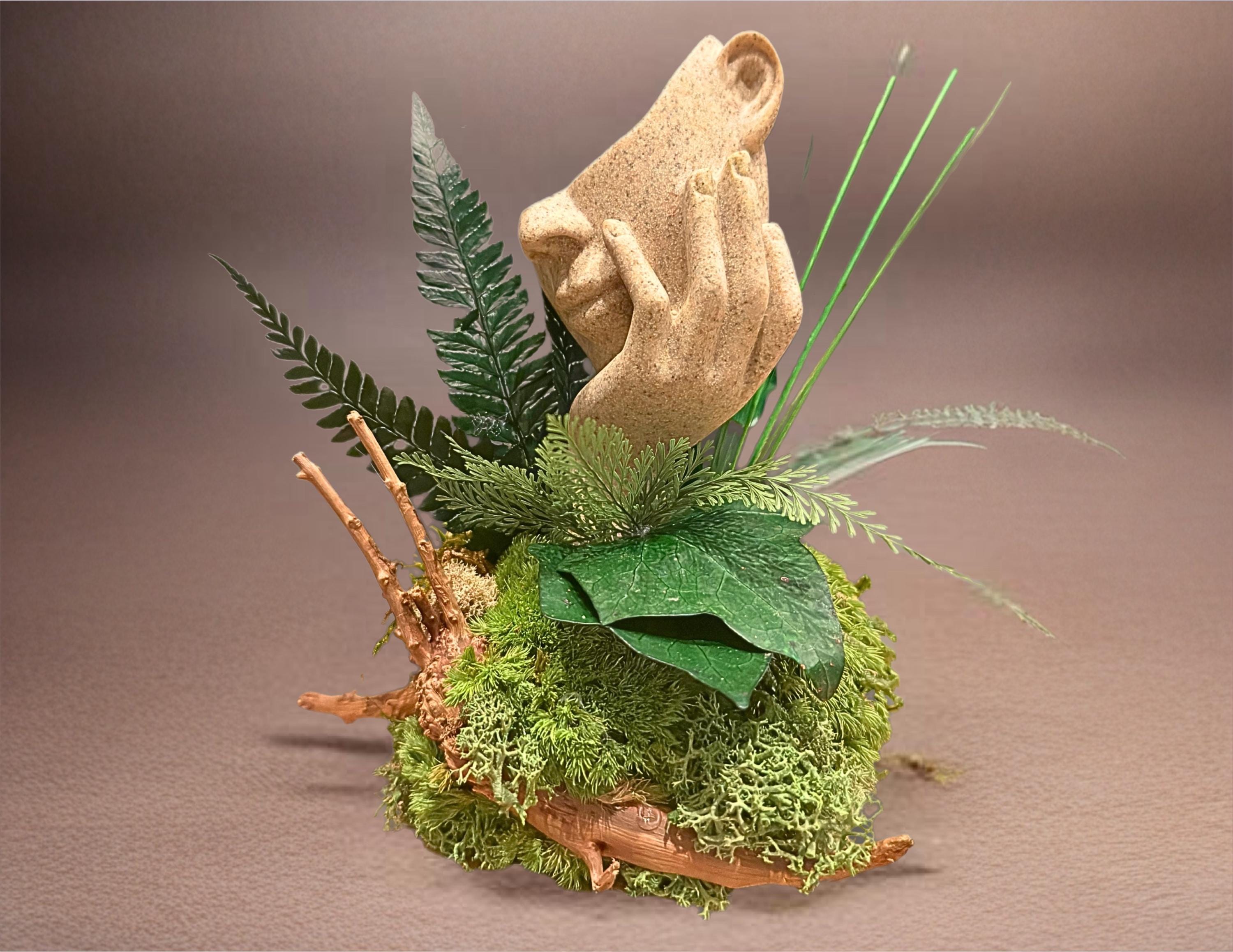 🌿 Une œuvre florale contemporaine, où la beauté du végétal rencontre la poésie du minéral.