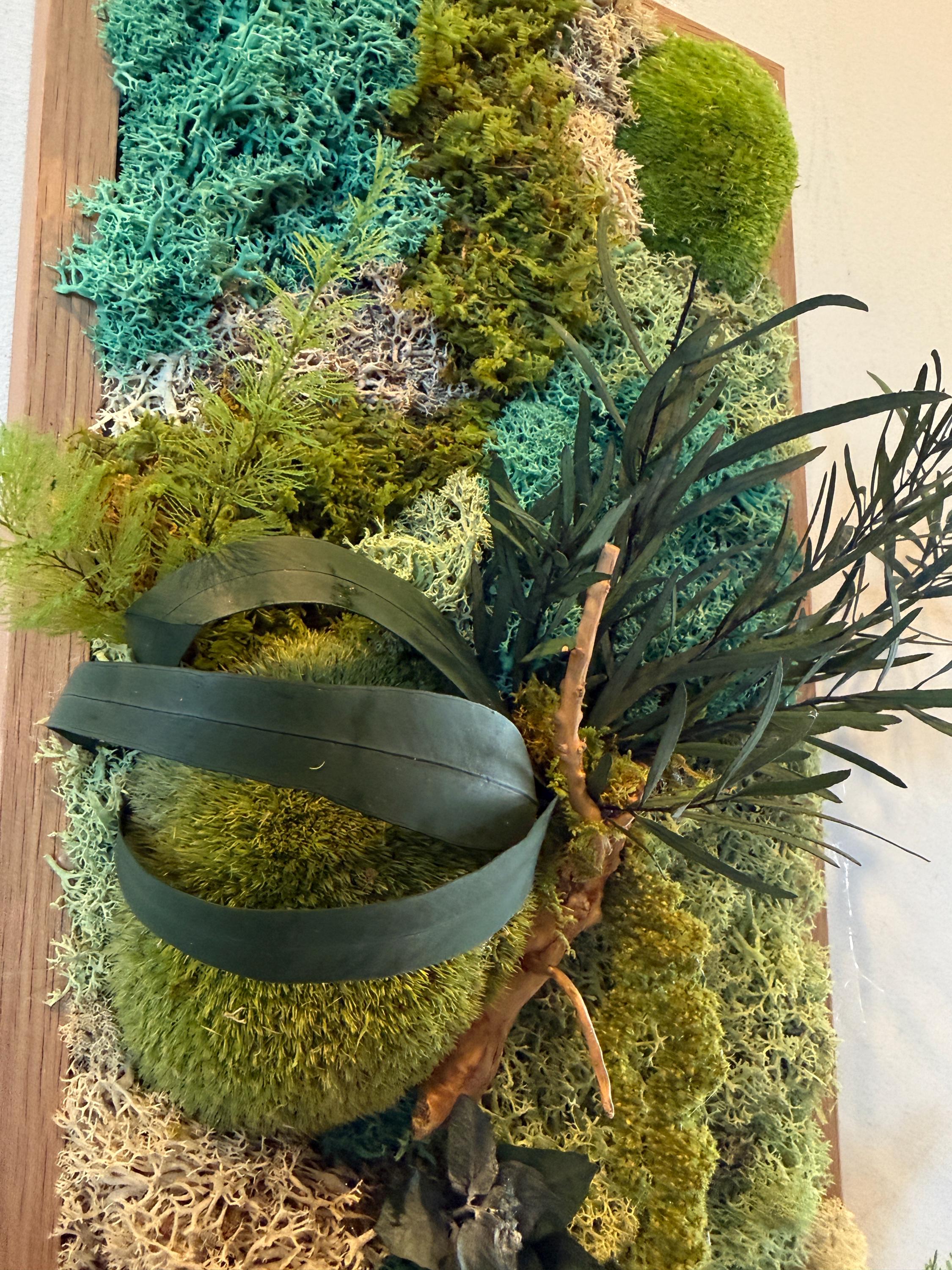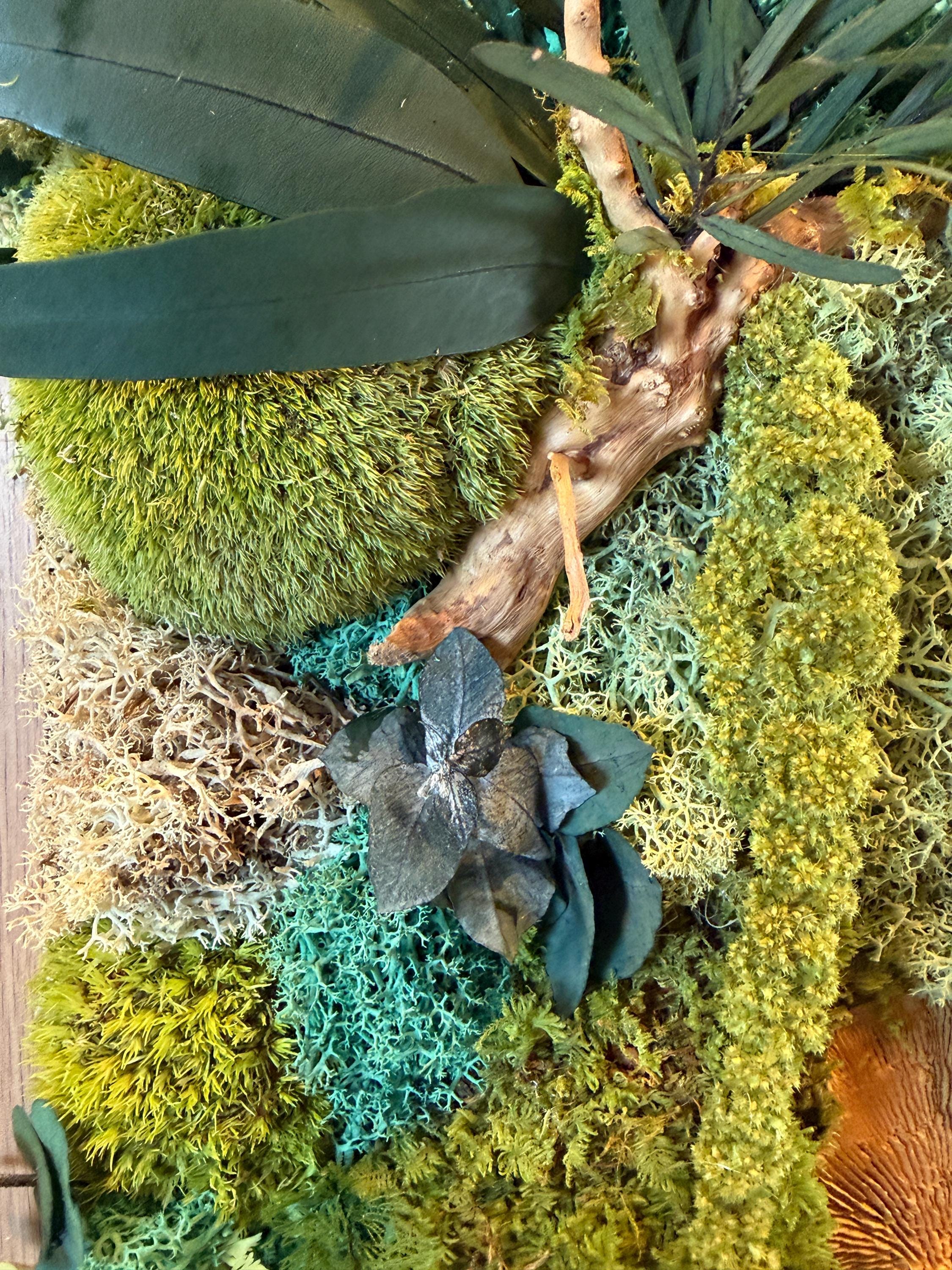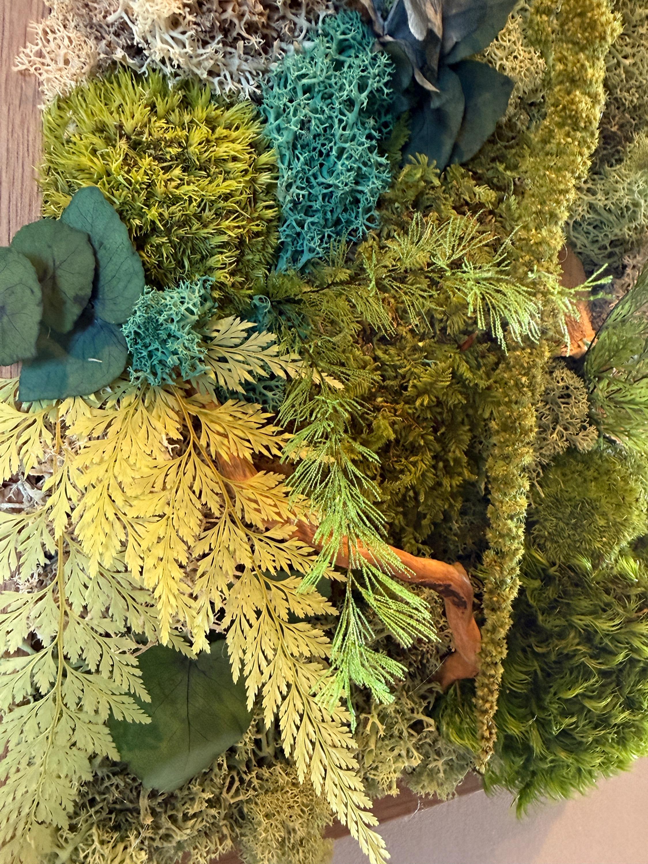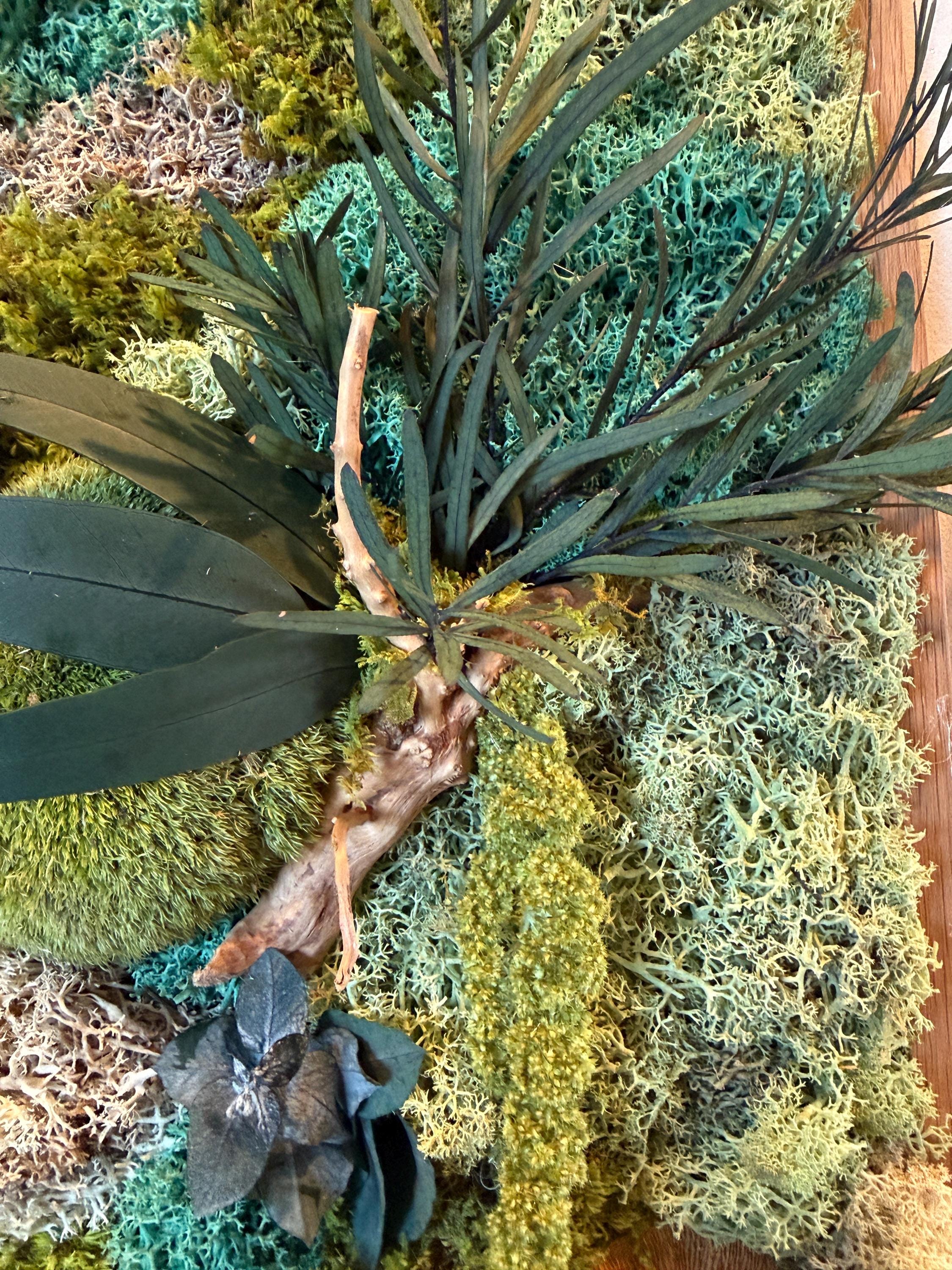 • Composition unique alliant mousses, lichens et feuillages stabilisés.