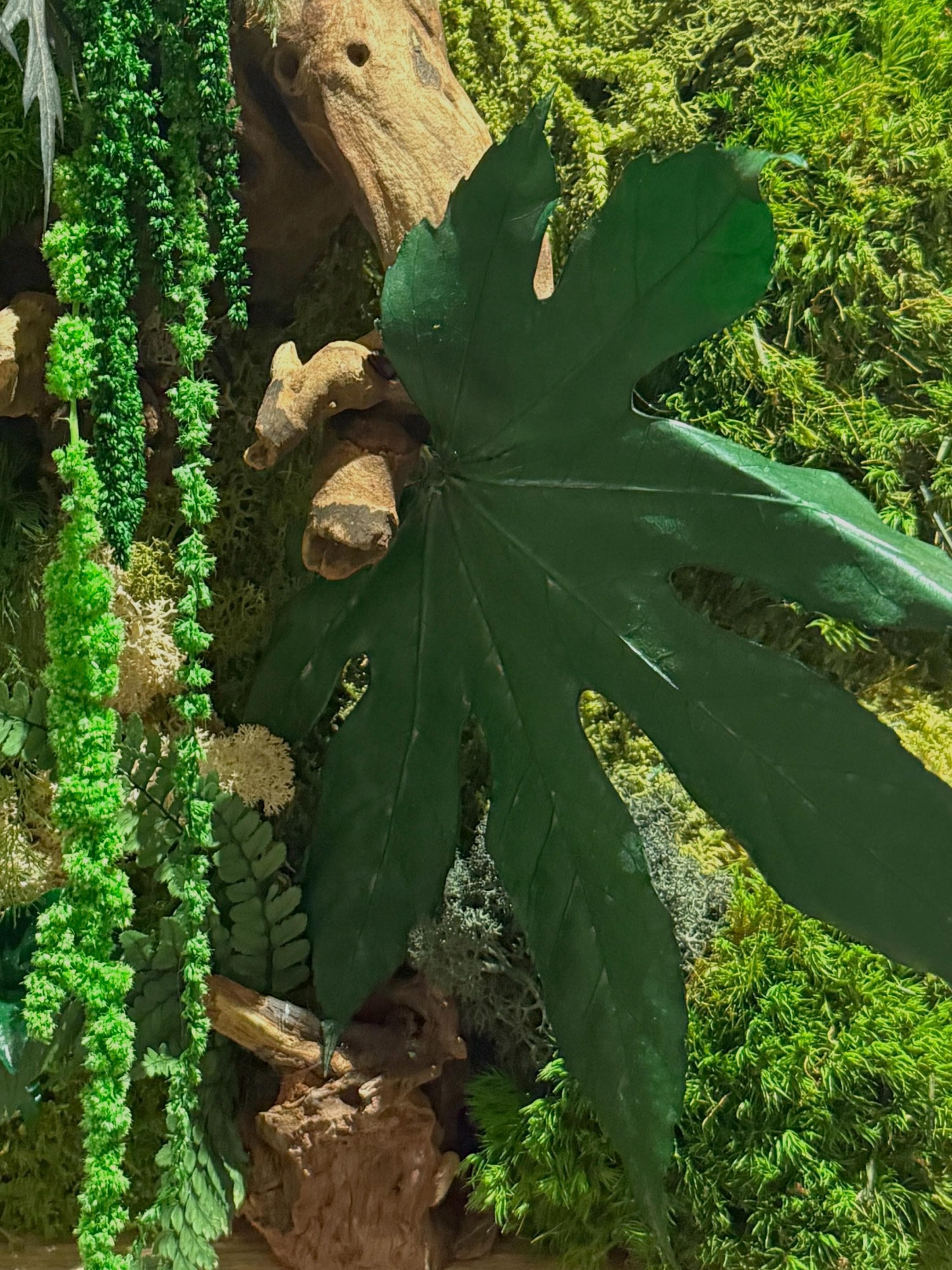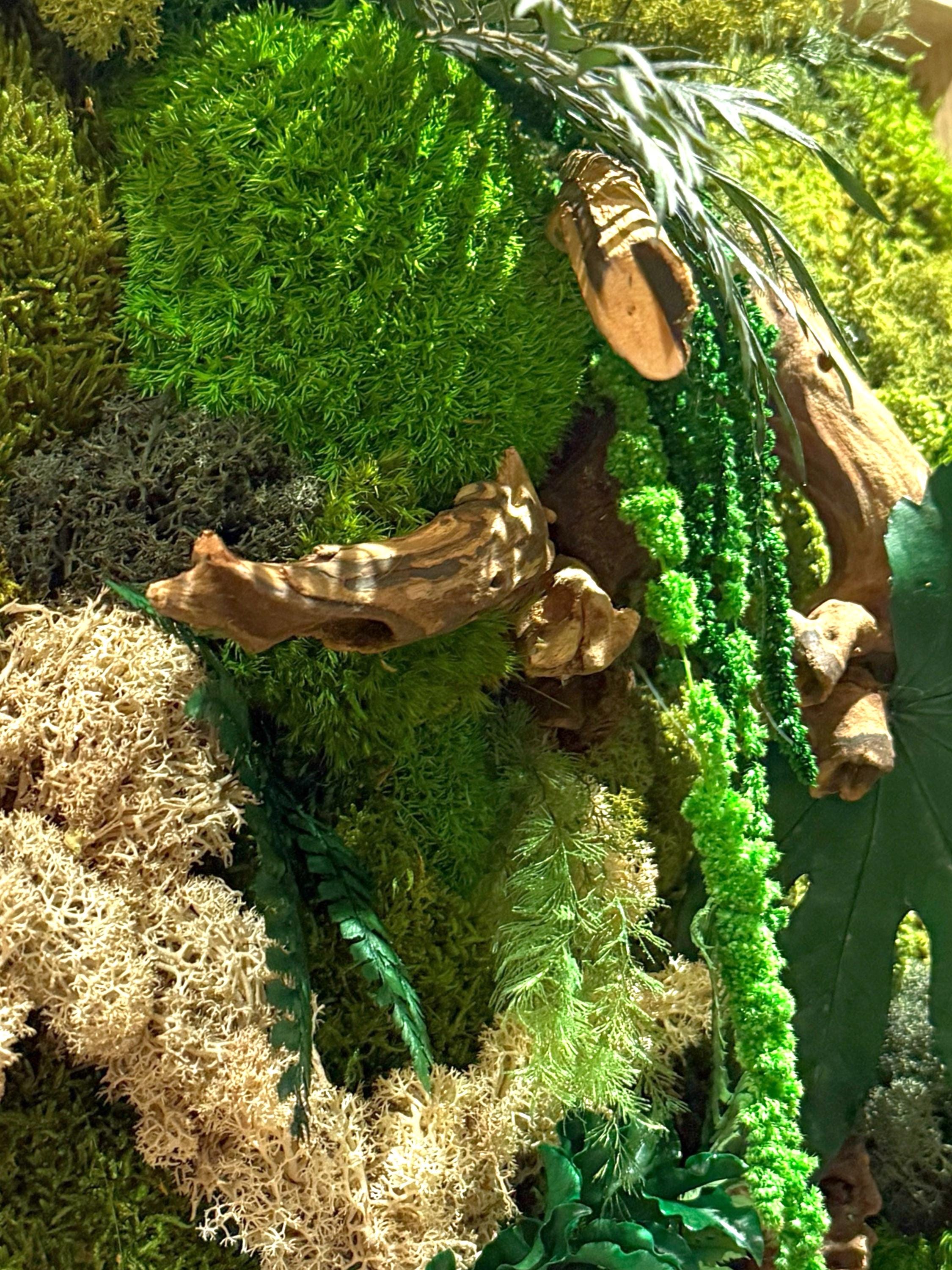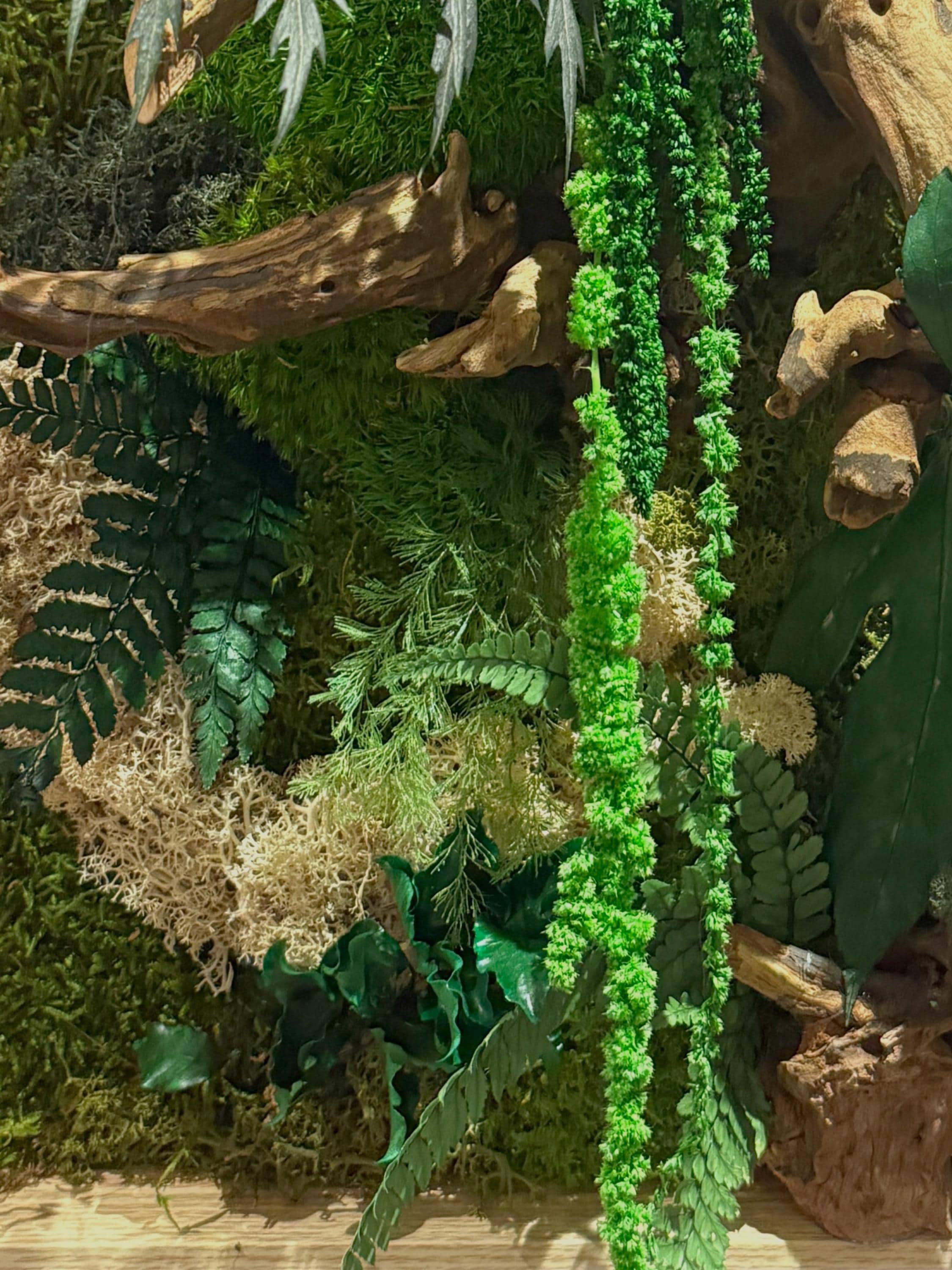 Composé de mousses stabilisées, écorce naturelle de liège, bois flotté et feuillages préservés, il évoque un coin de forêt miniature où chaque détail respire la sérénité.