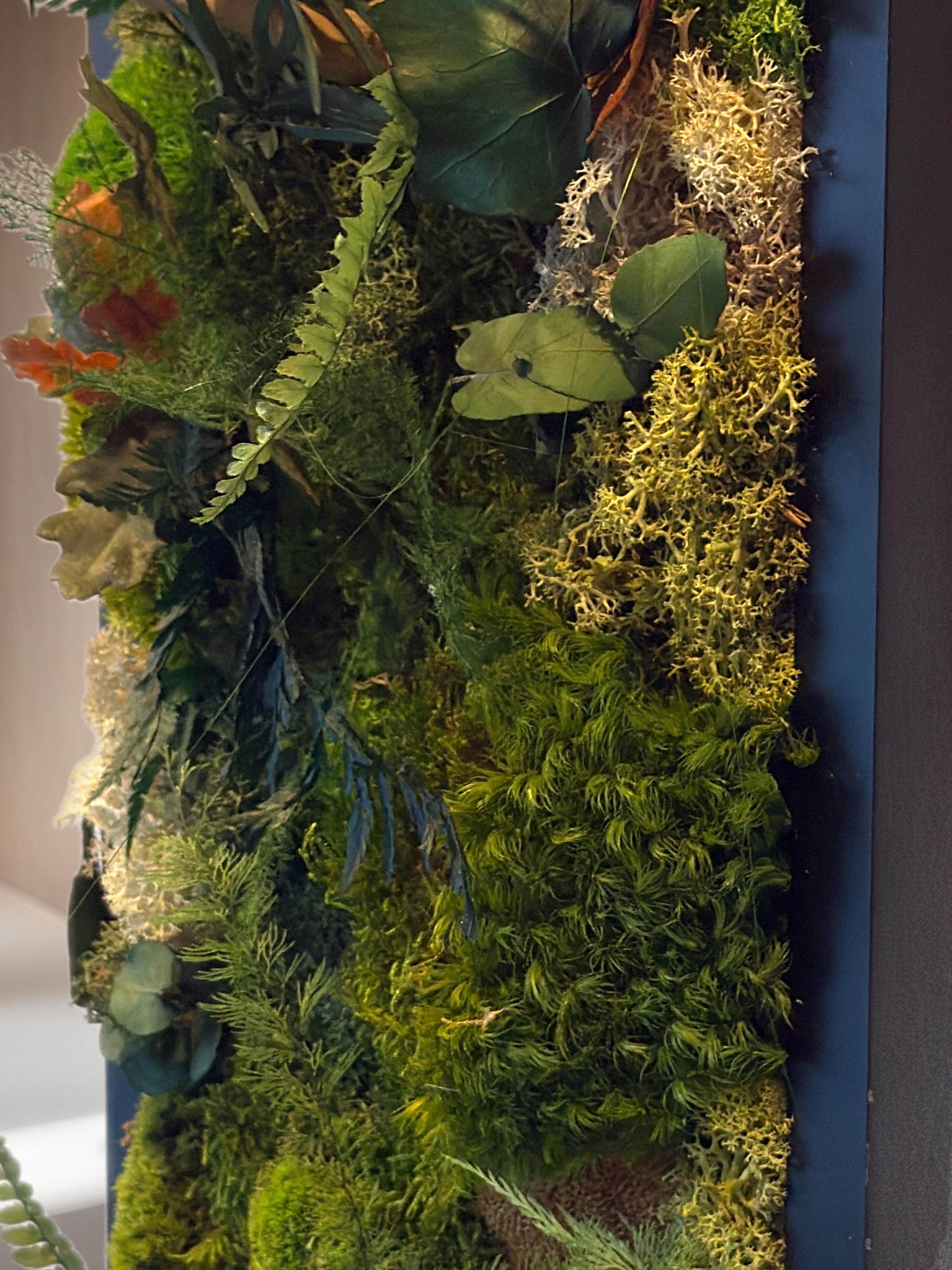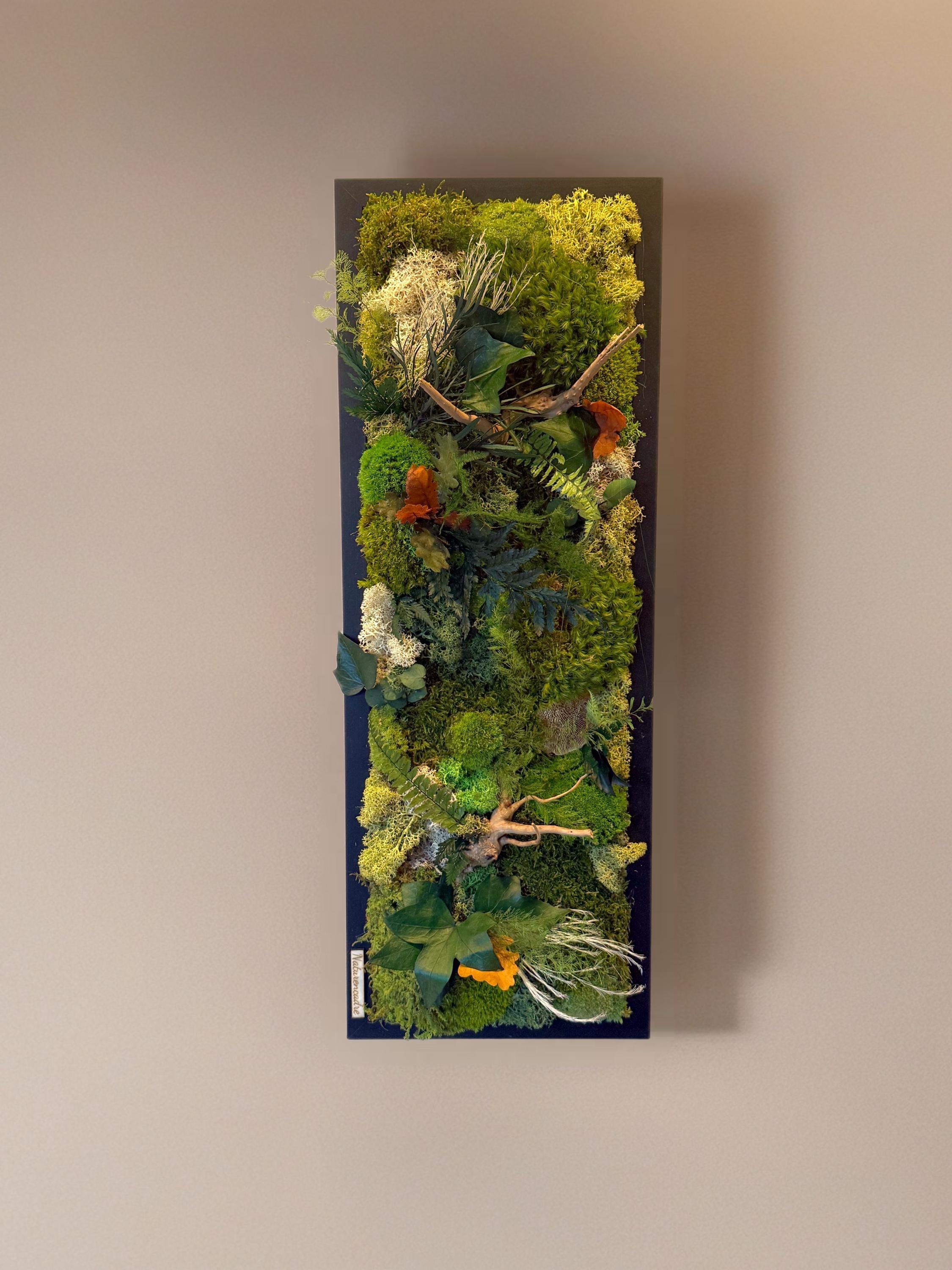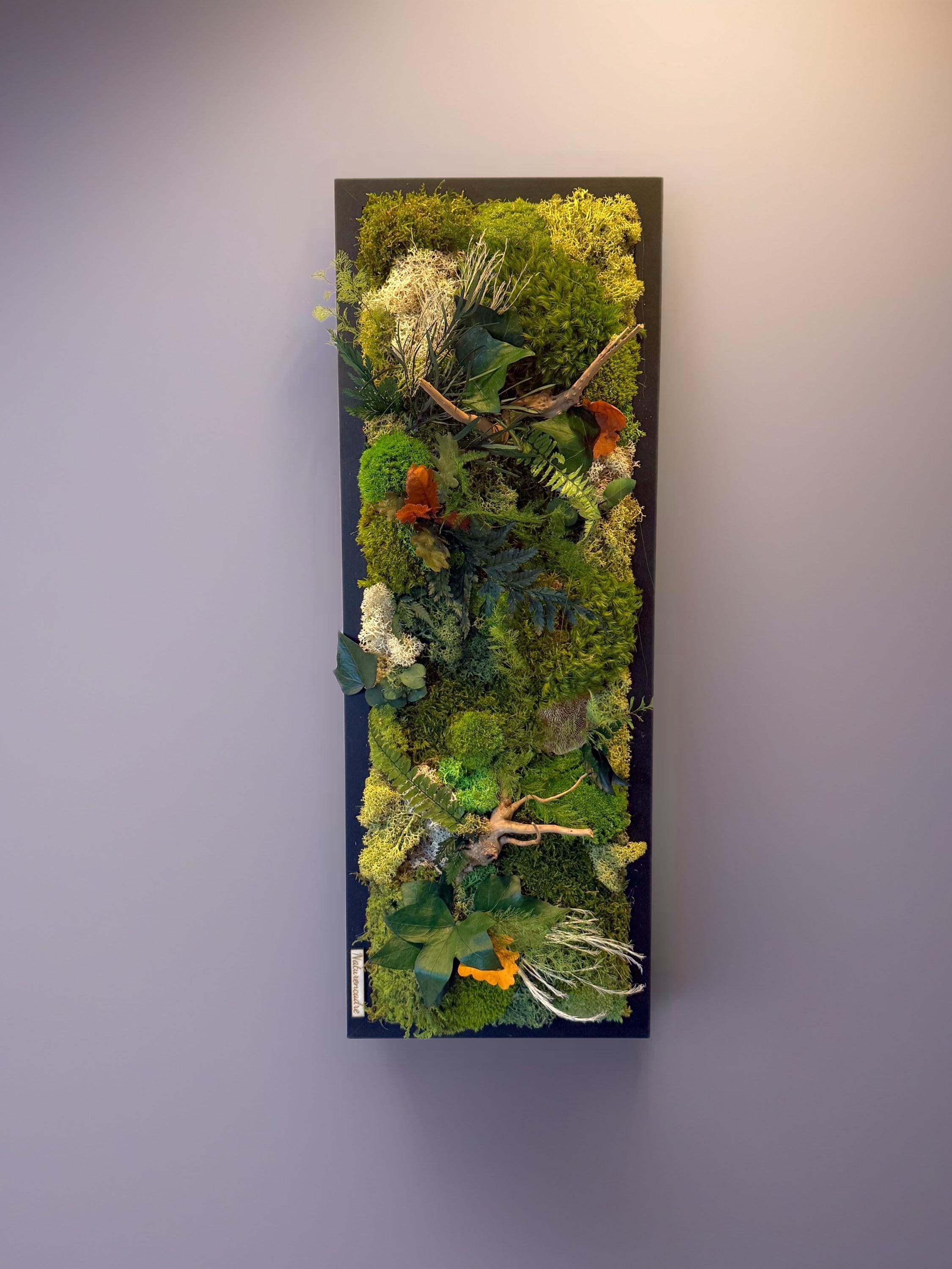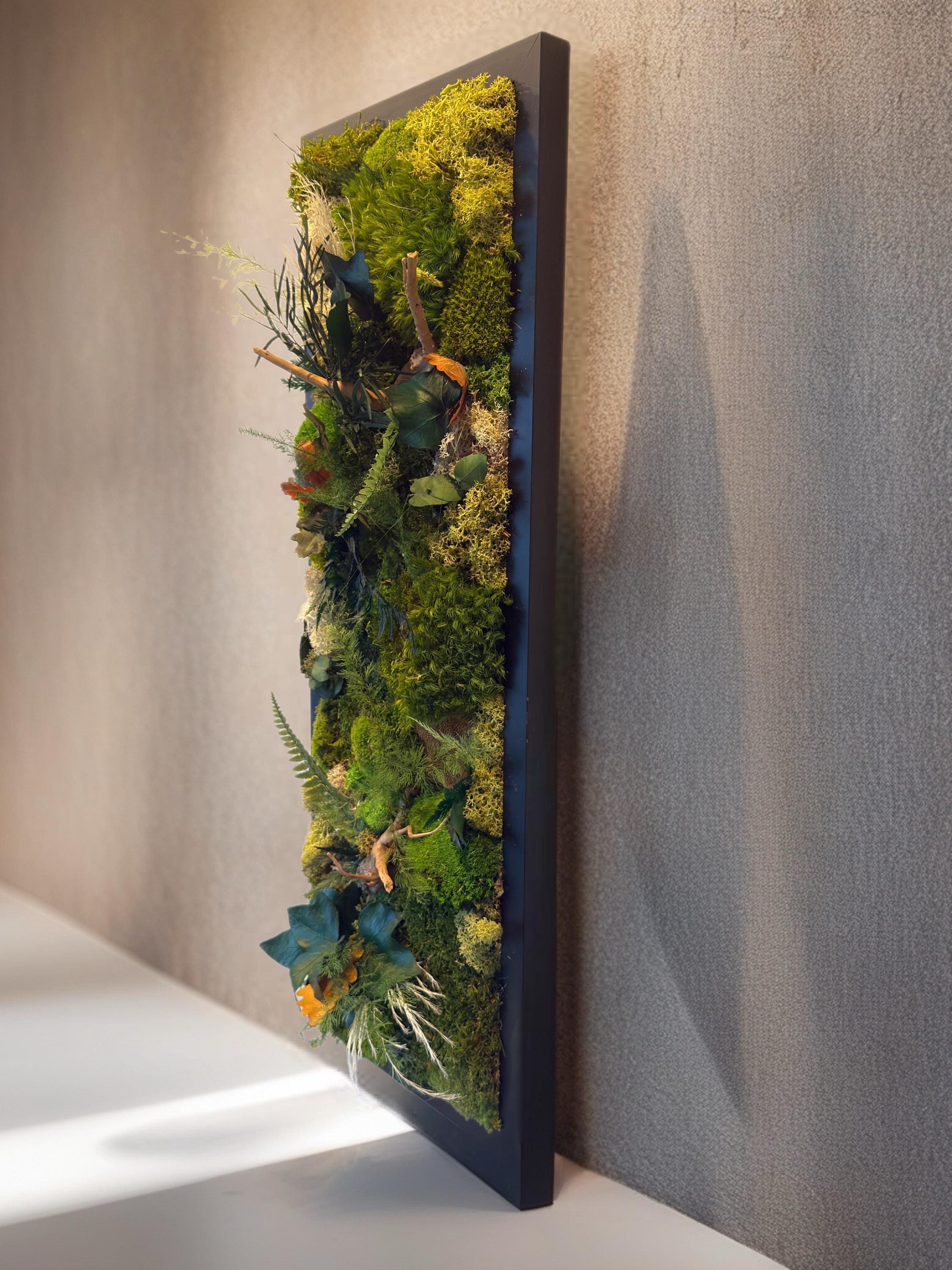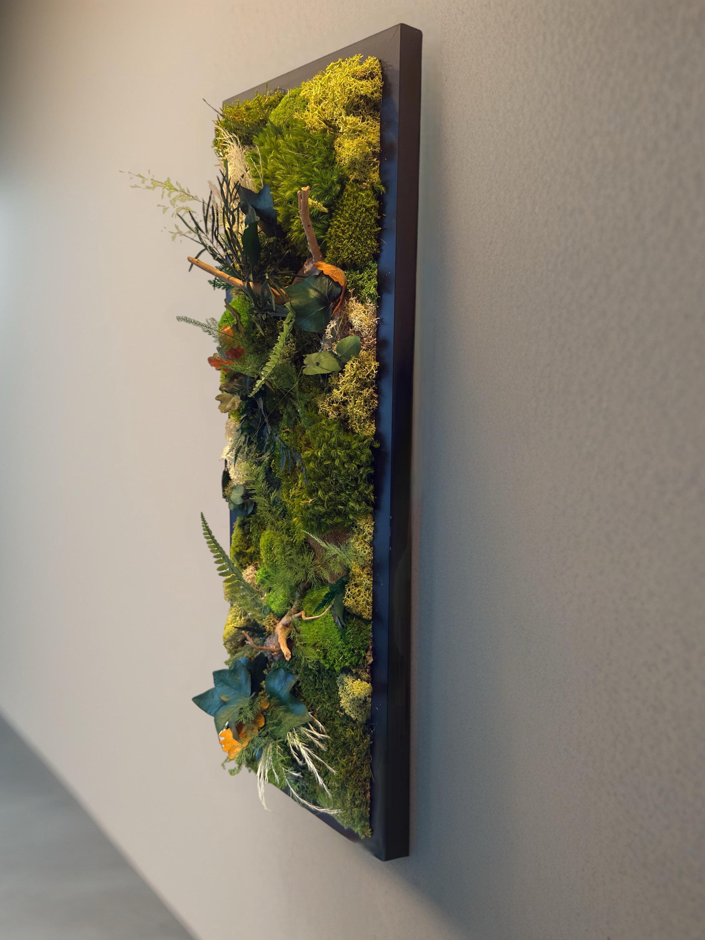 Apportez une touche de nature apaisante et intemporelle à votre intérieur grâce à ce tableau mural végétal en mousse entièrement réalisé à la main.