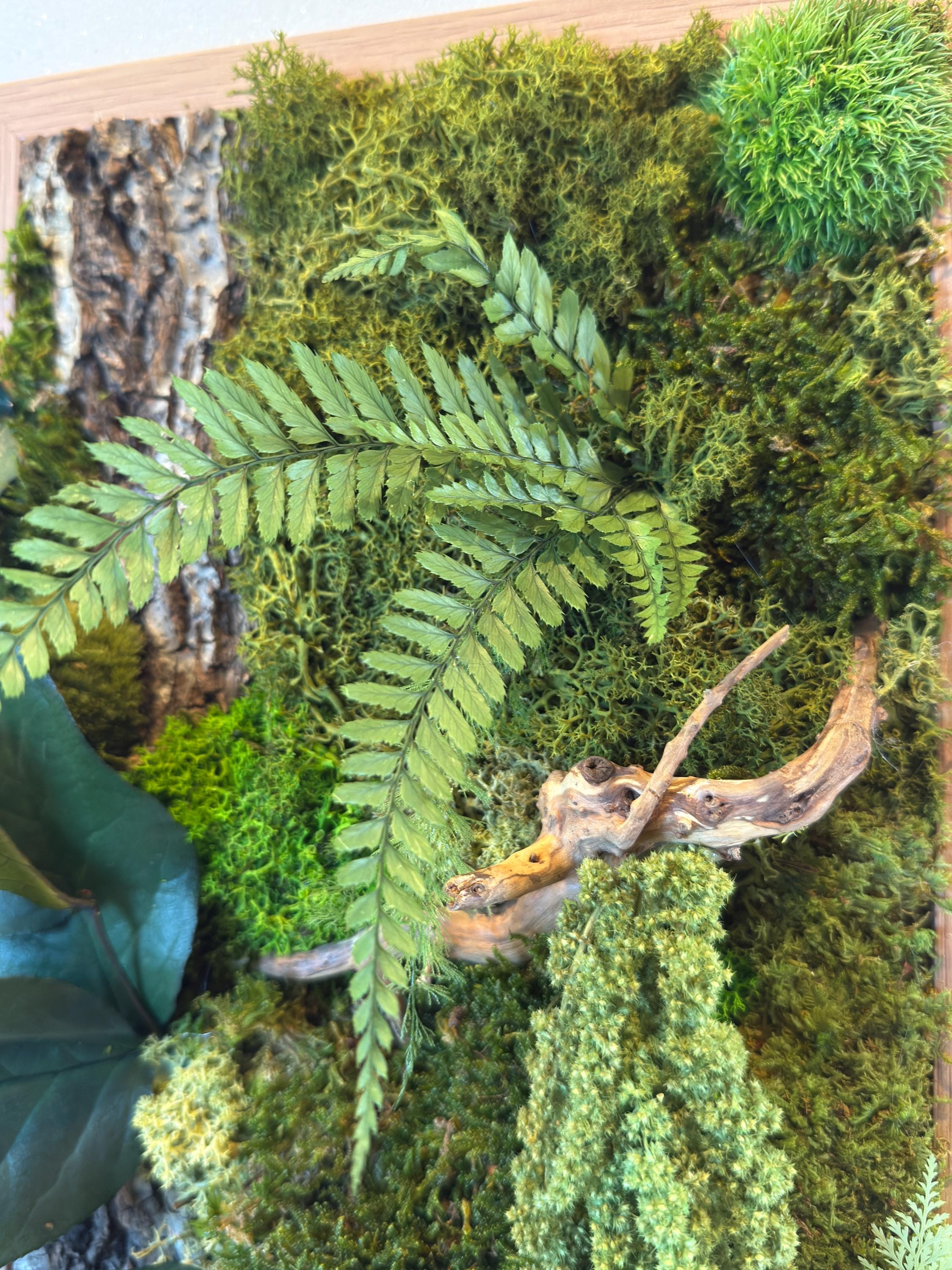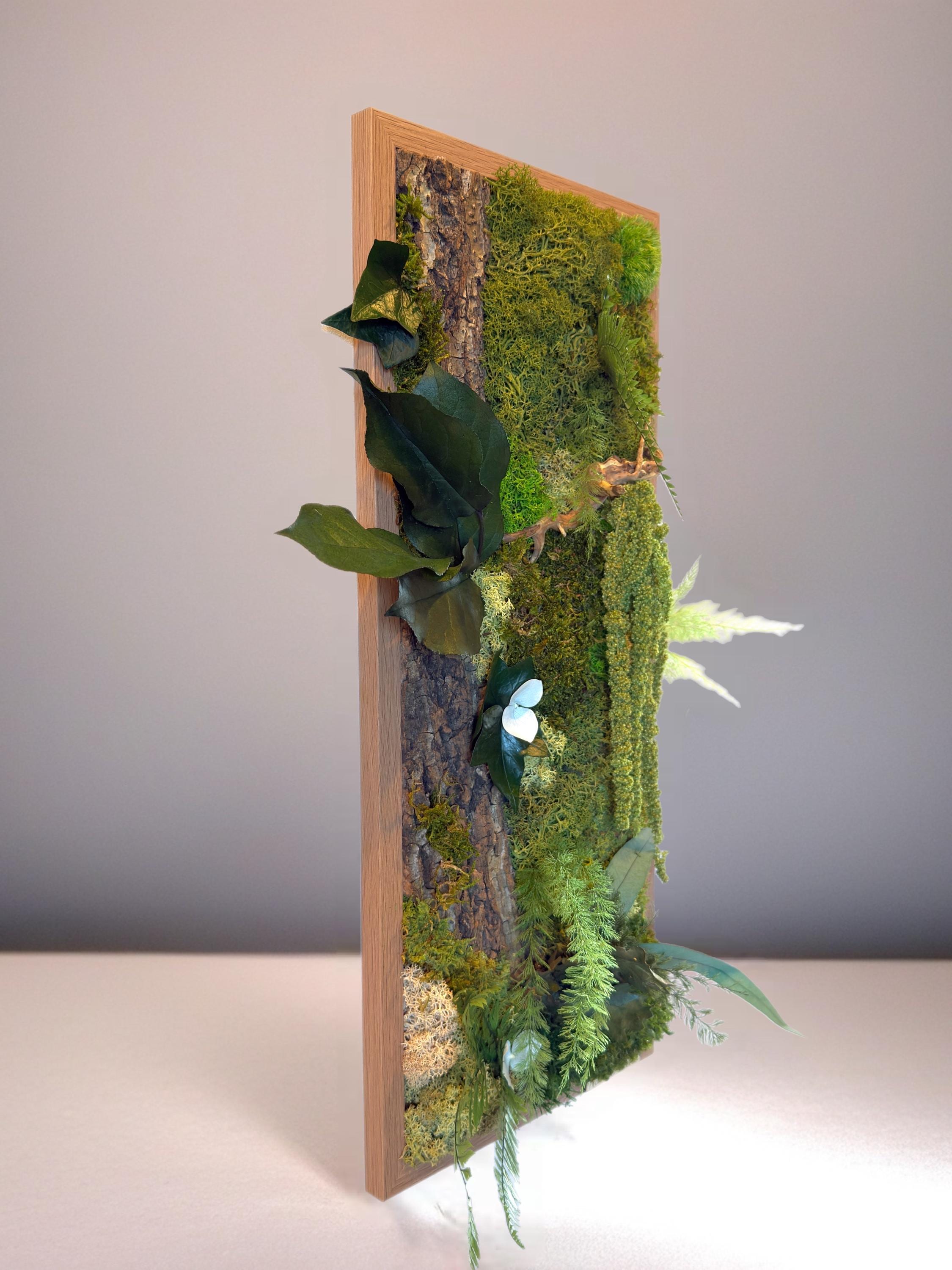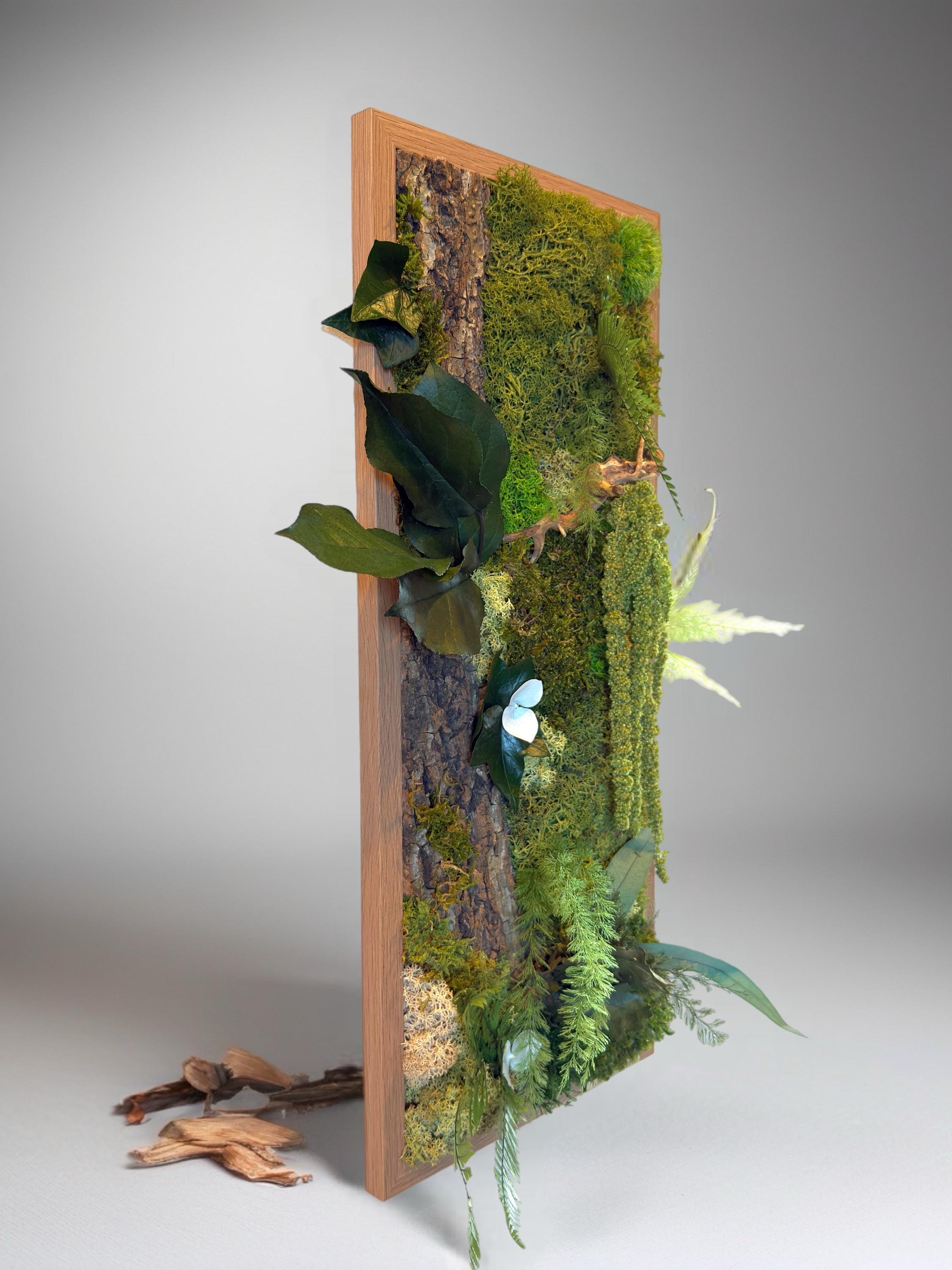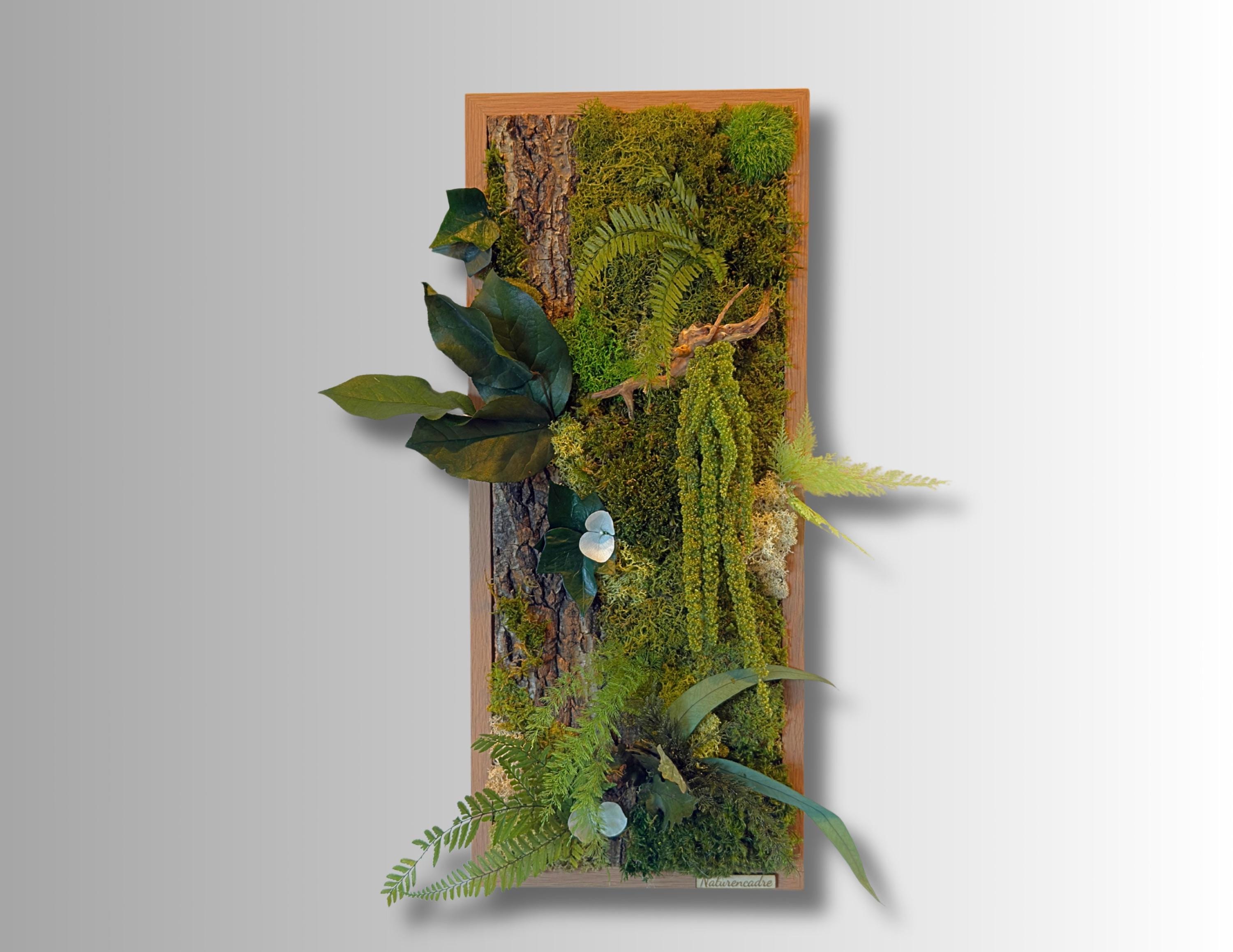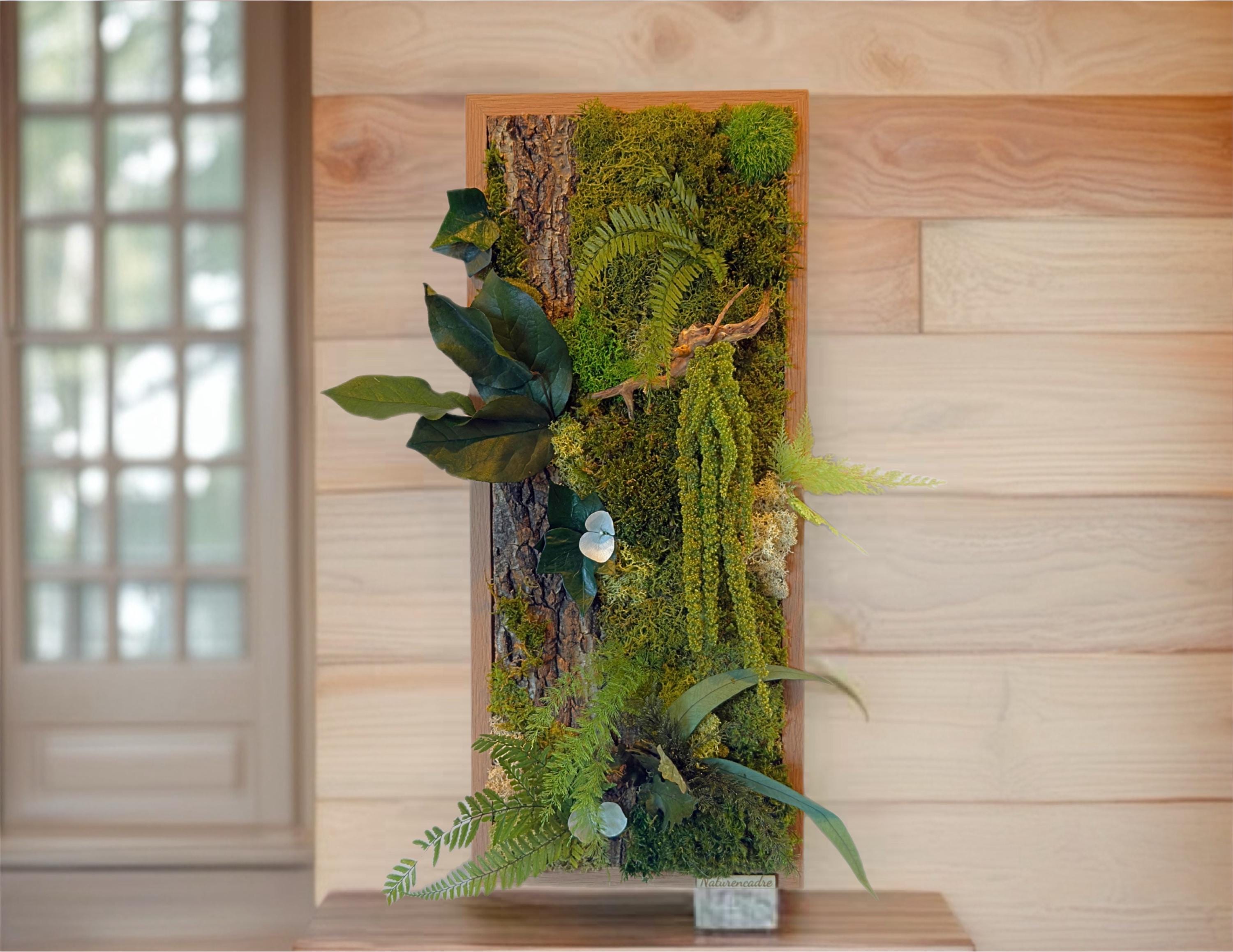Cadre végétal stabilisé vertical 54*38cm – décoration murale naturelle bois et mousse – tableau végétal forestier artisanal Naturencadre