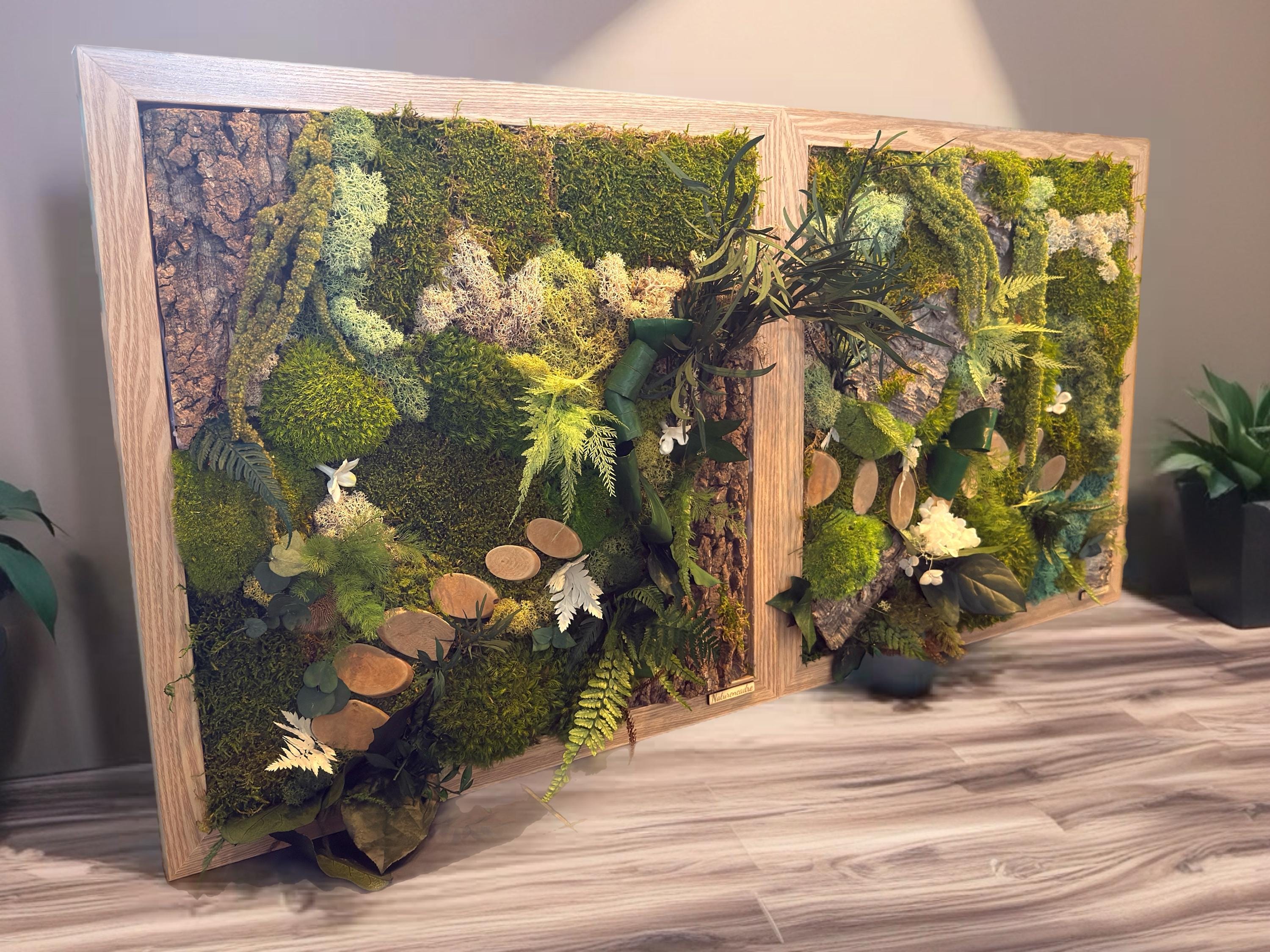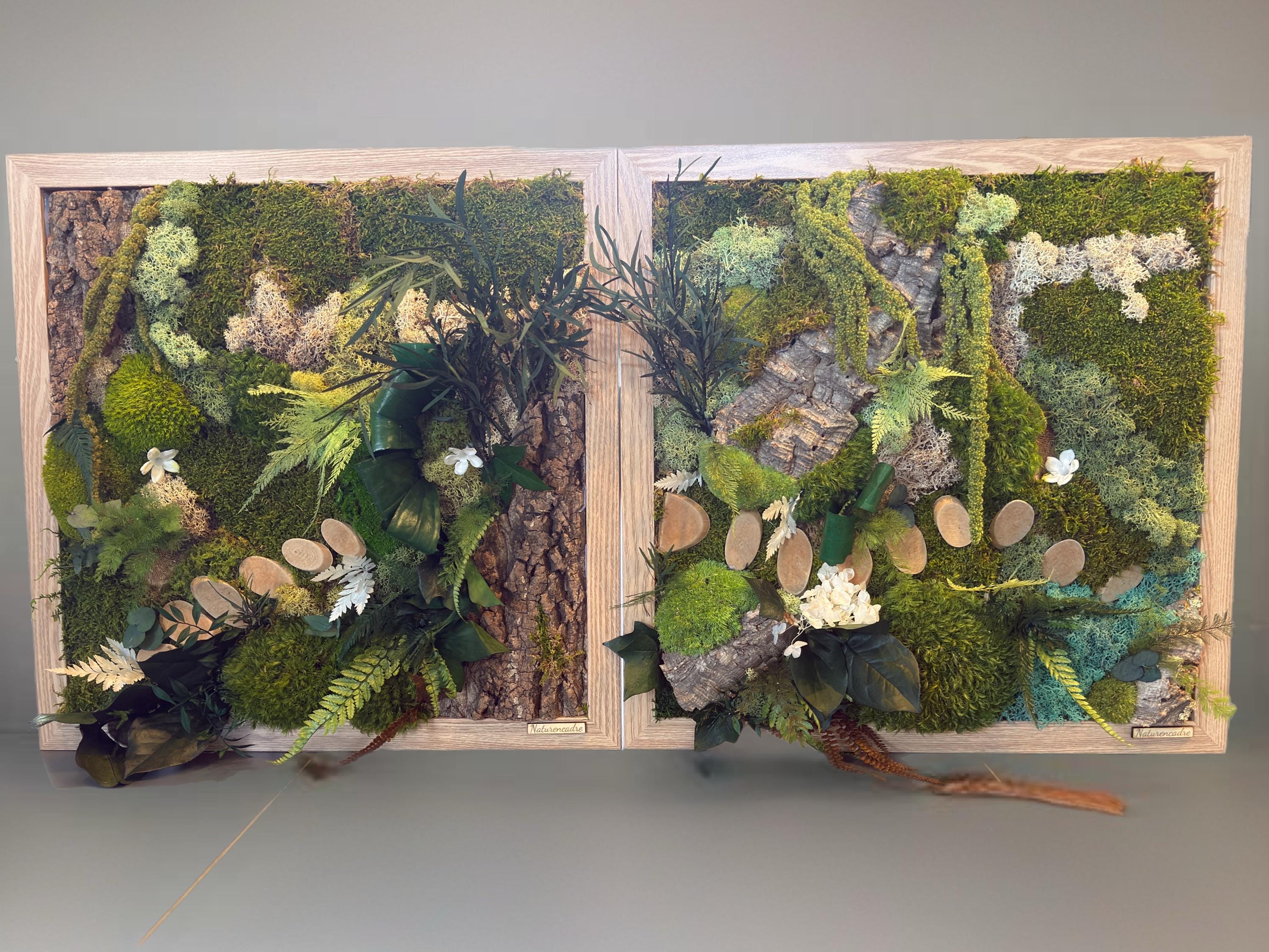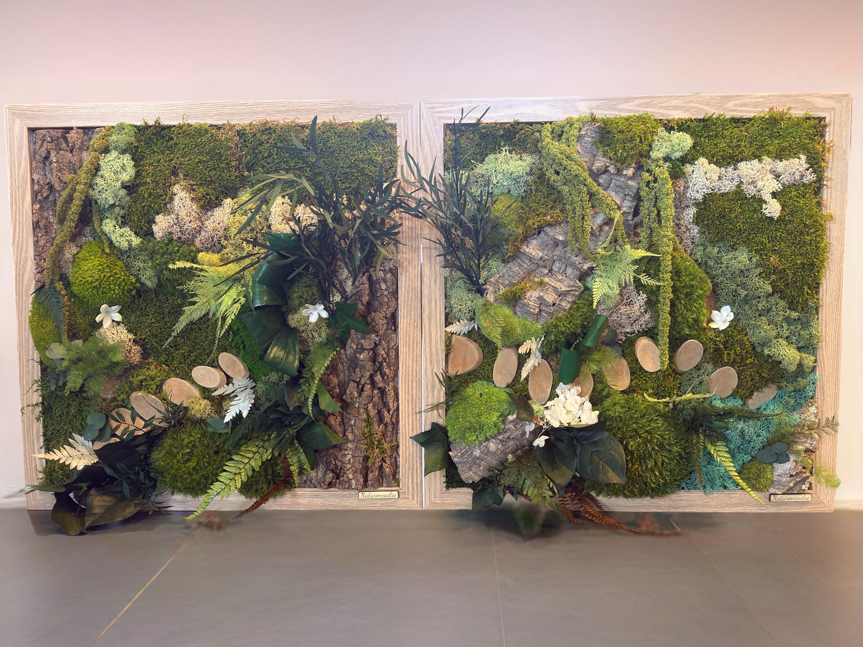Offrez à votre intérieur une véritable fenêtre sur la nature avec ce grand tableau végétal stabilisé de 109 × 54 cm (cadre inclus). Conçu entièrement à la main dans mon atelier Naturencadre, ce tableau XXL mêle mousses, écorces, feuillages et éléments naturels stabilisés pour créer un univers forestier riche en relief et en détails.
