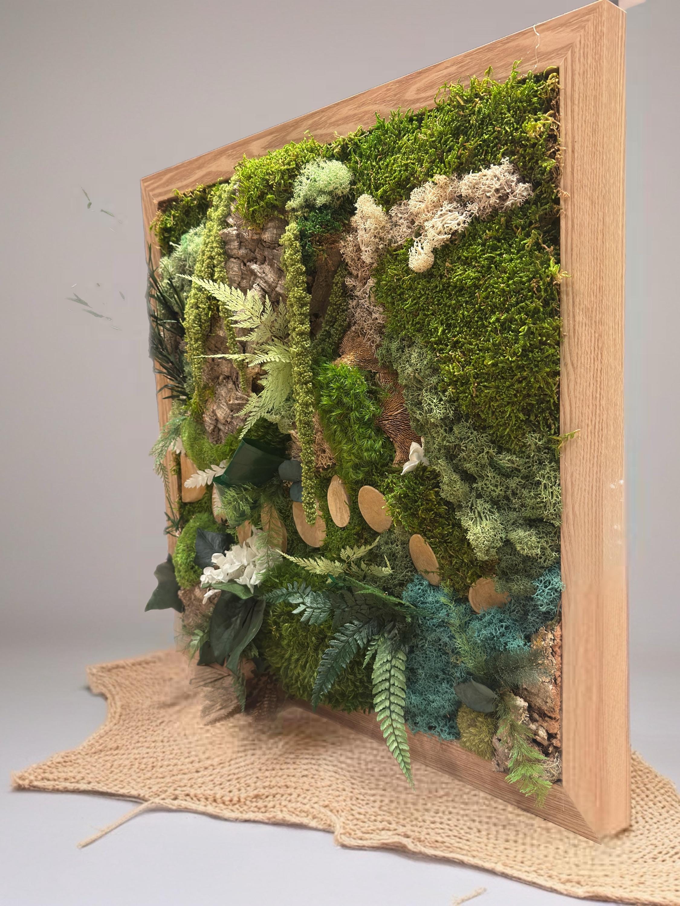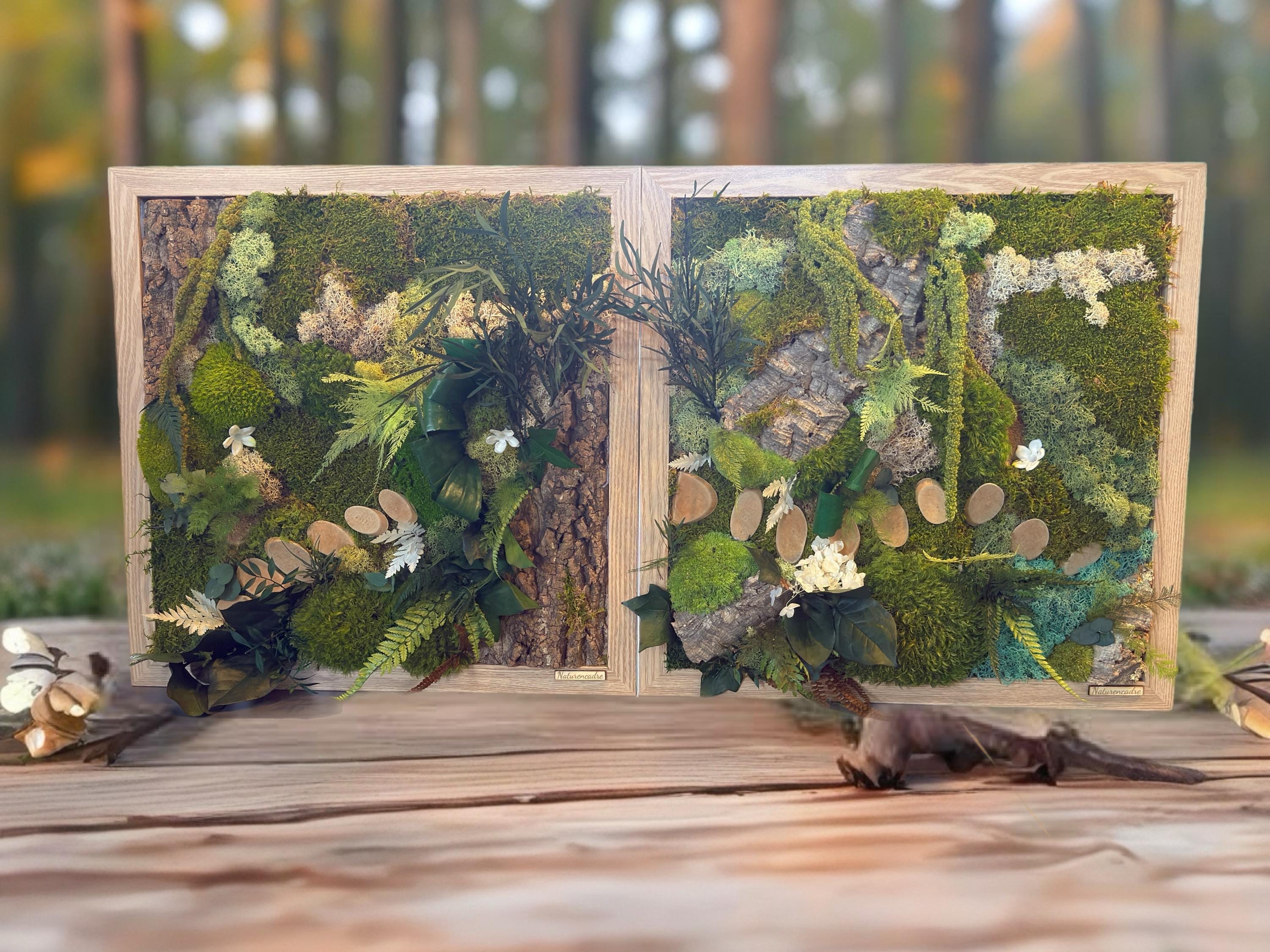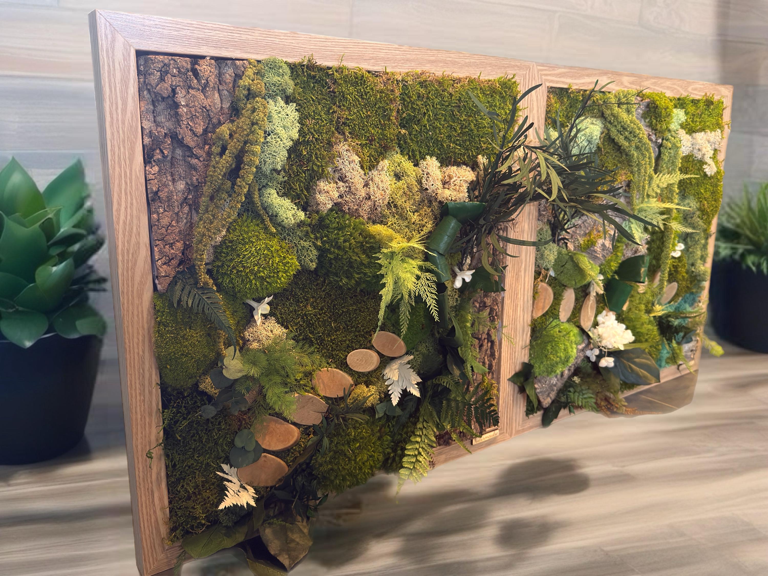 Offrez à votre intérieur une véritable fenêtre sur la nature avec ce grand tableau végétal stabilisé de 109 × 54 cm (cadre inclus). Conçu entièrement à la main dans mon atelier Naturencadre, ce tableau XXL mêle mousses, écorces, feuillages et éléments naturels stabilisés pour créer un univers forestier riche en relief et en détails.