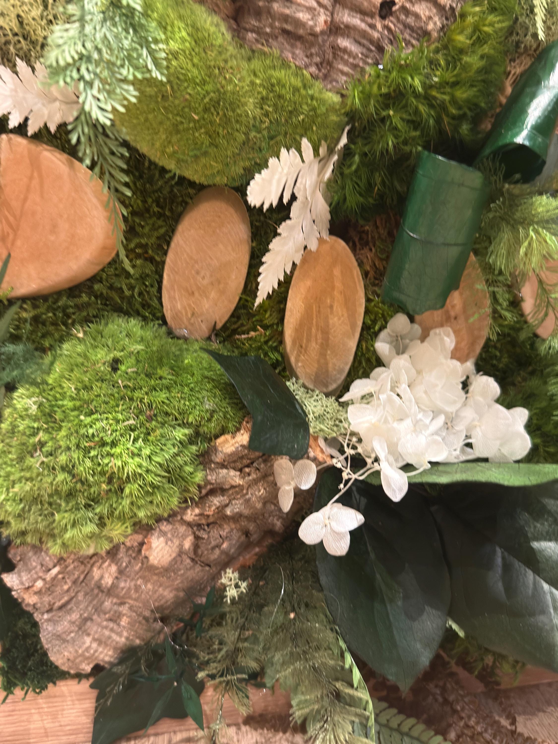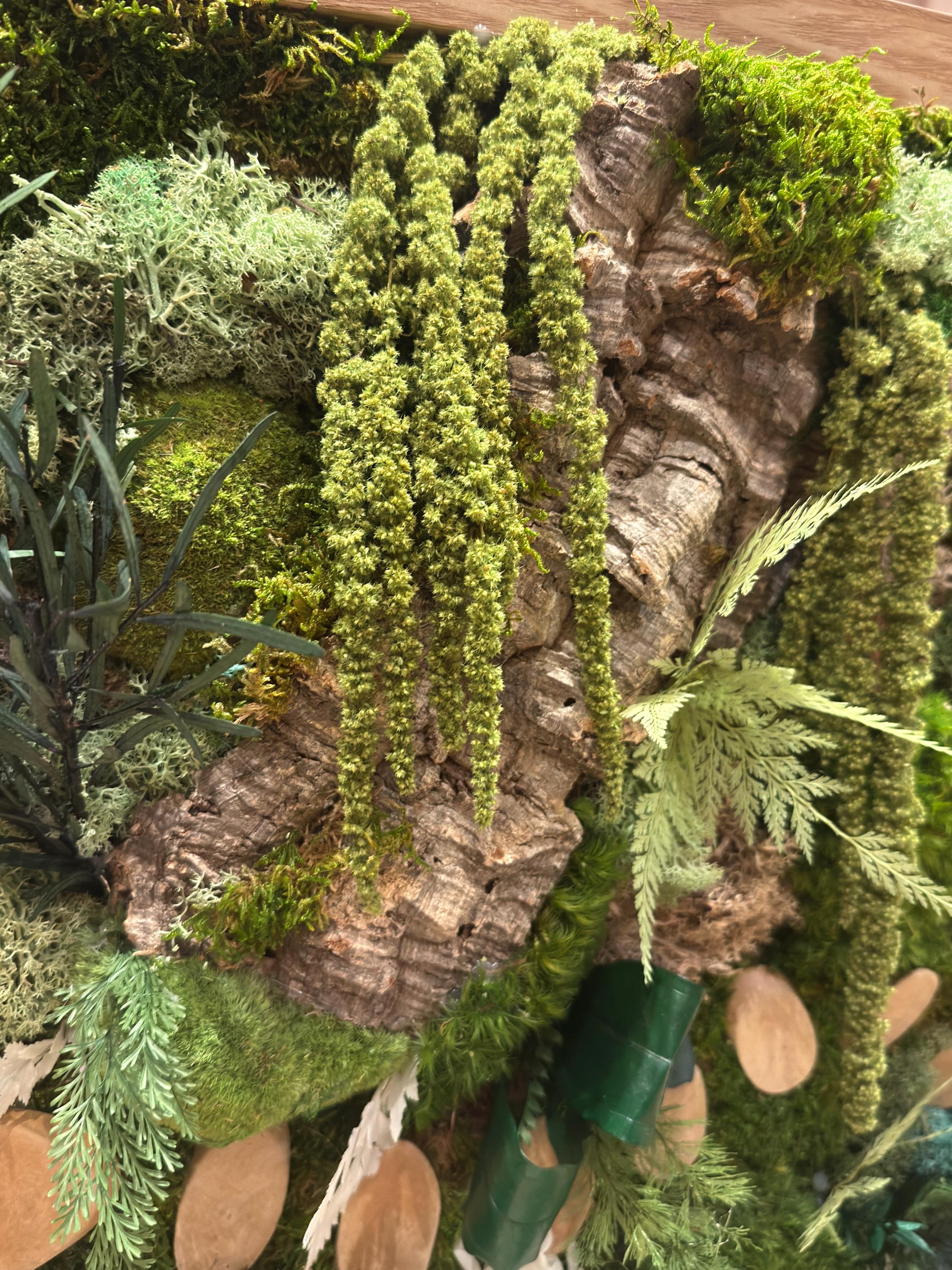 • Chaque détail est travaillé : rondeurs végétales, textures variées, contraste mousse/écorce