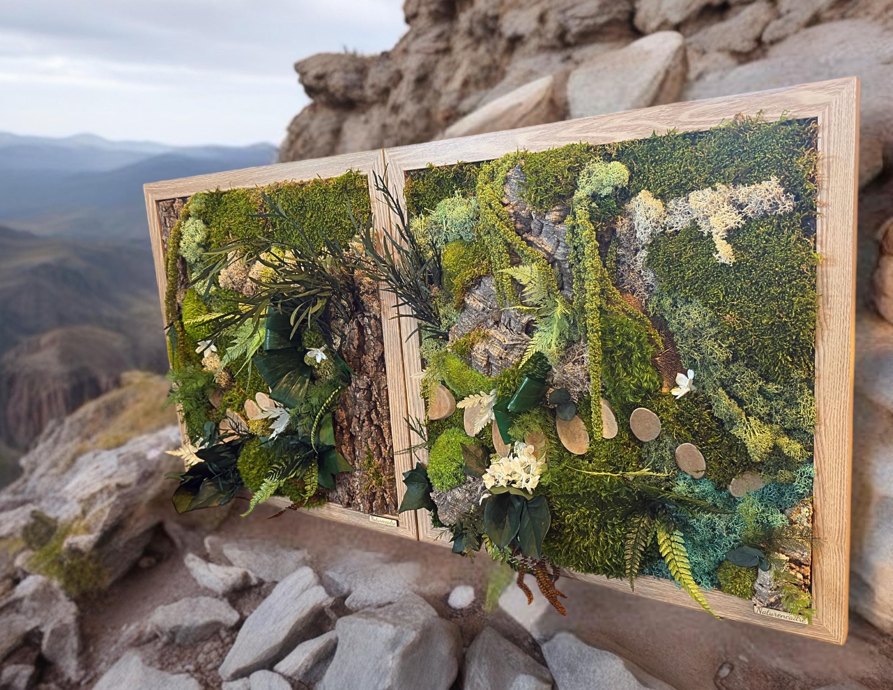 Chaque composition est unique et artisanale, pensée pour apporter profondeur, douceur et un effet immersif semblable à une scène de sous-bois.