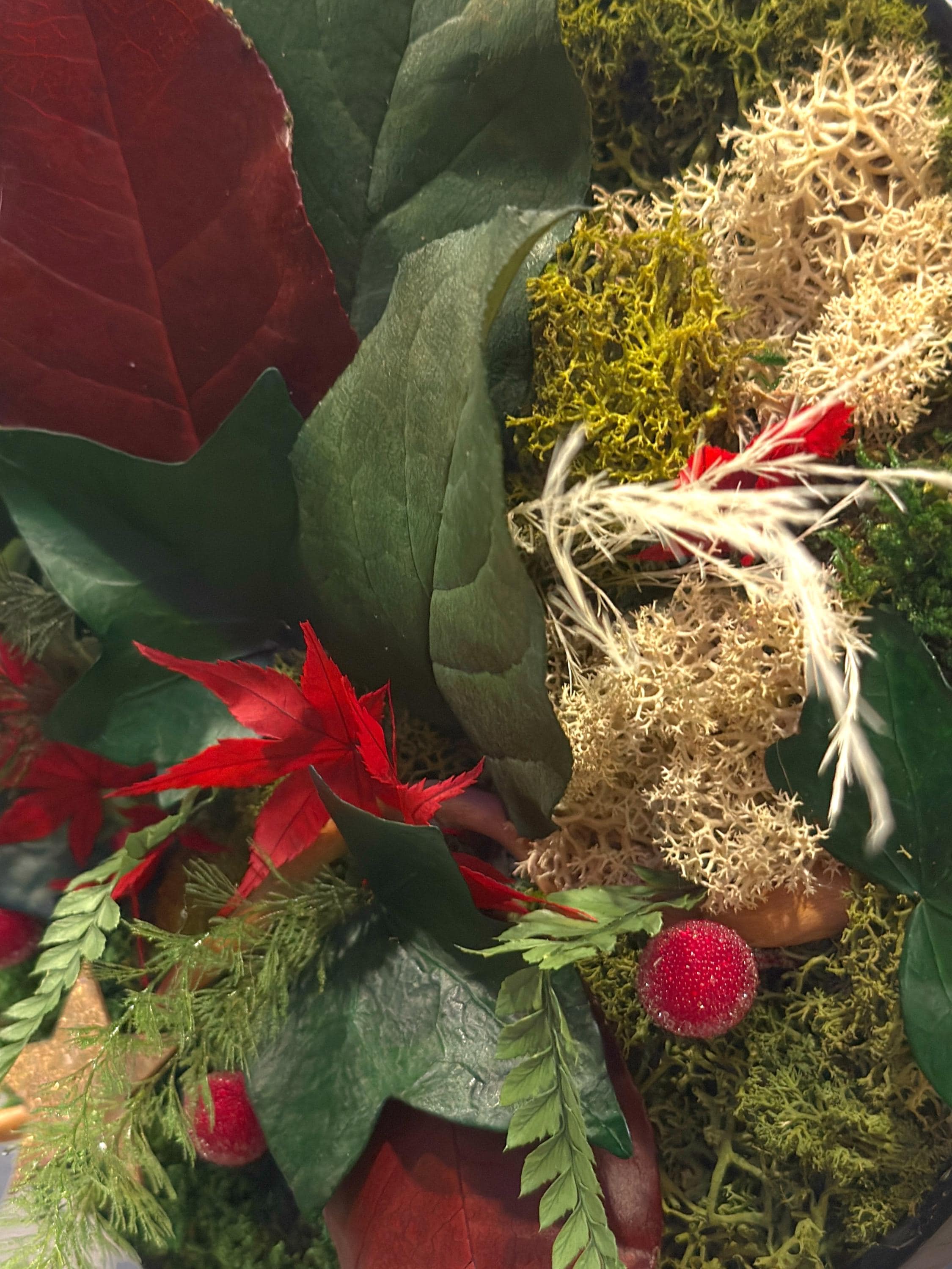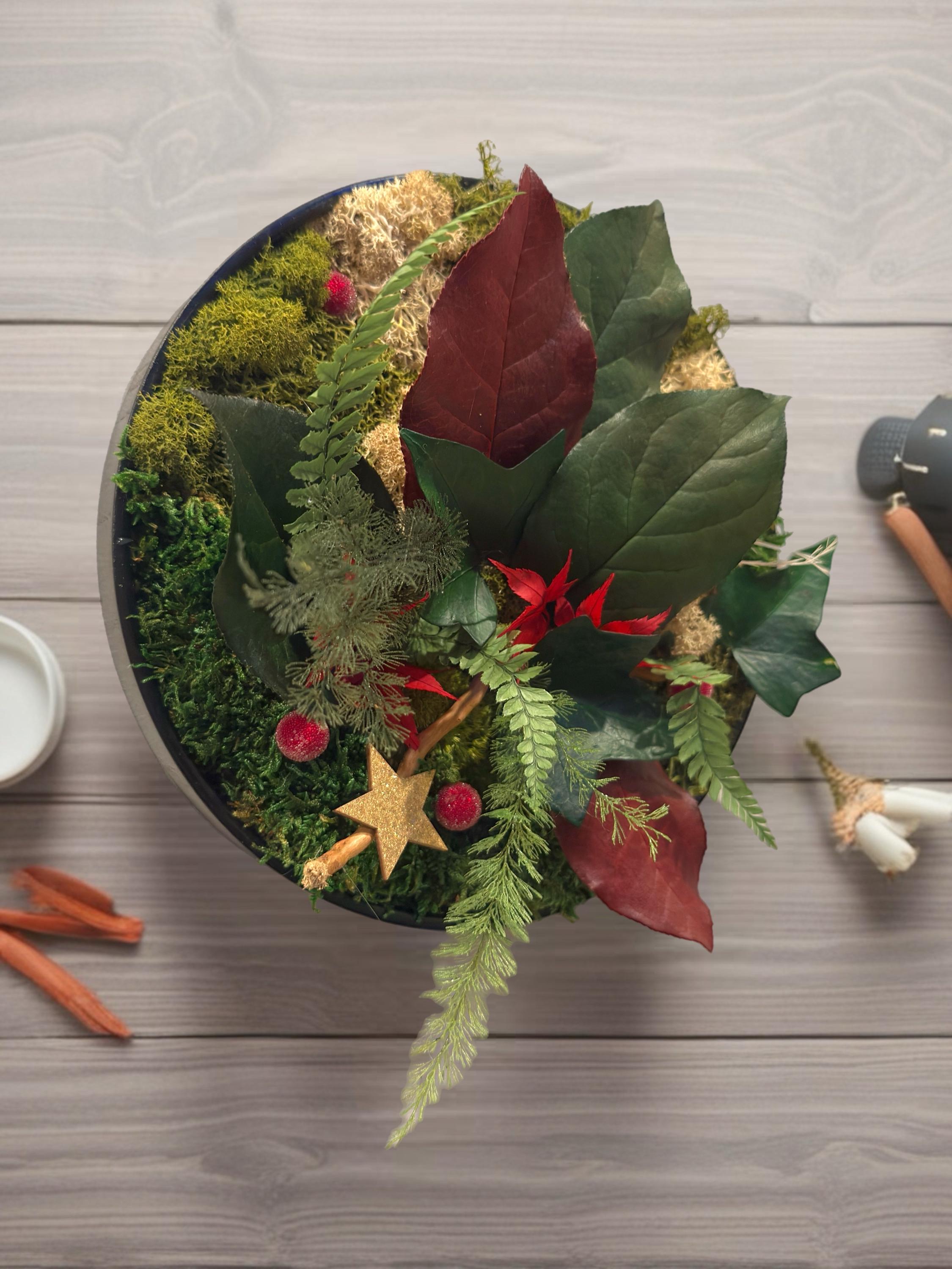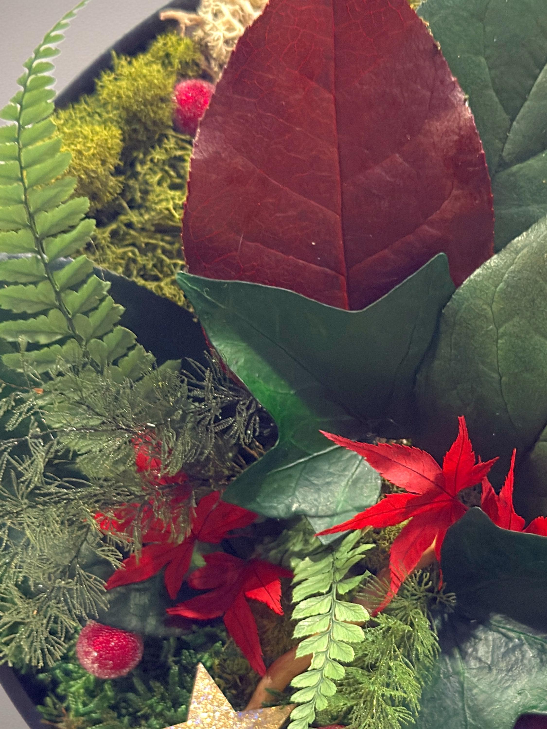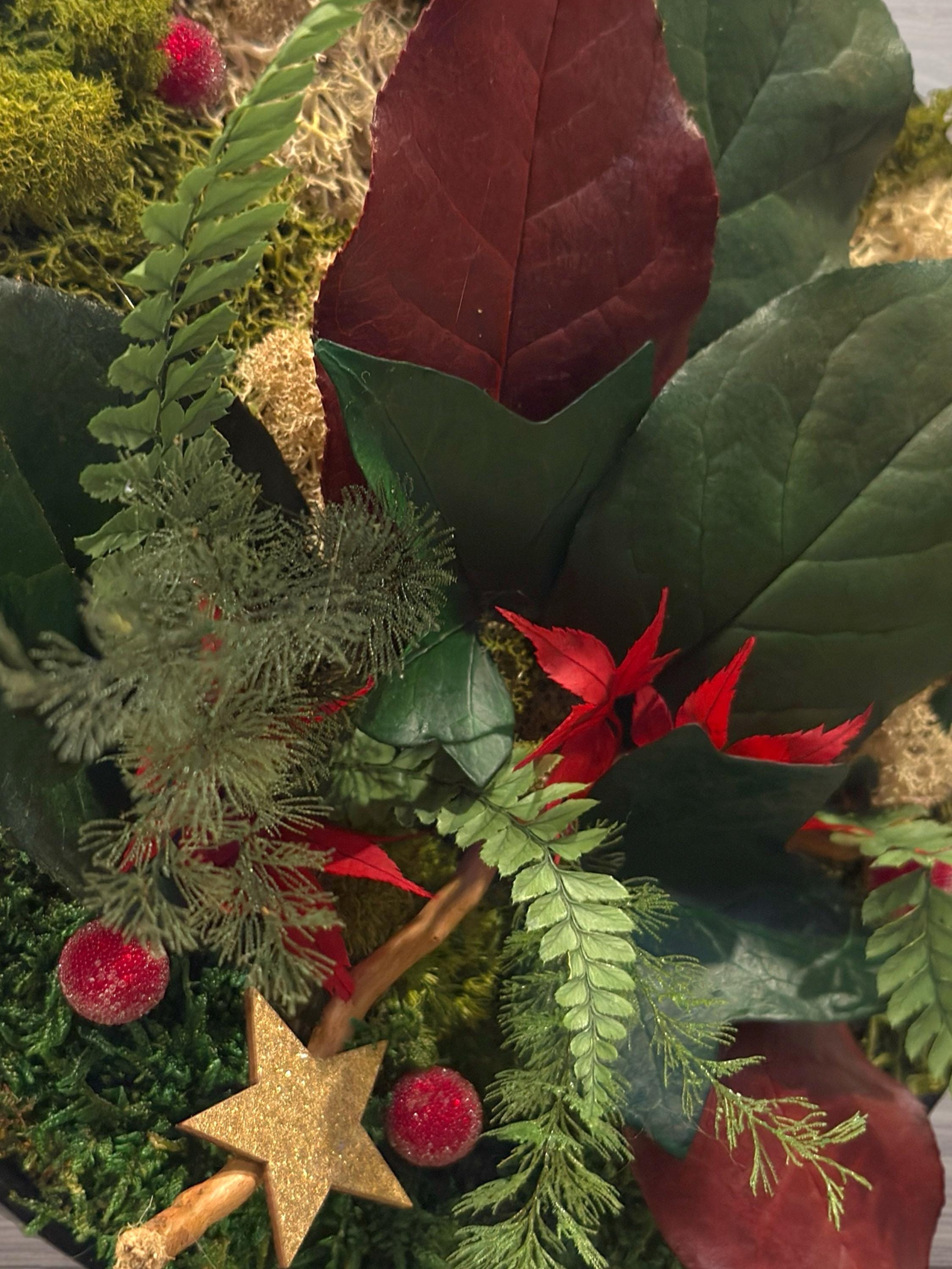 • Plantes stabilisées naturelles : mousse plate, mousse boule, lichen, bear grass, brightgrass, feuillage de cyprès stabilisé