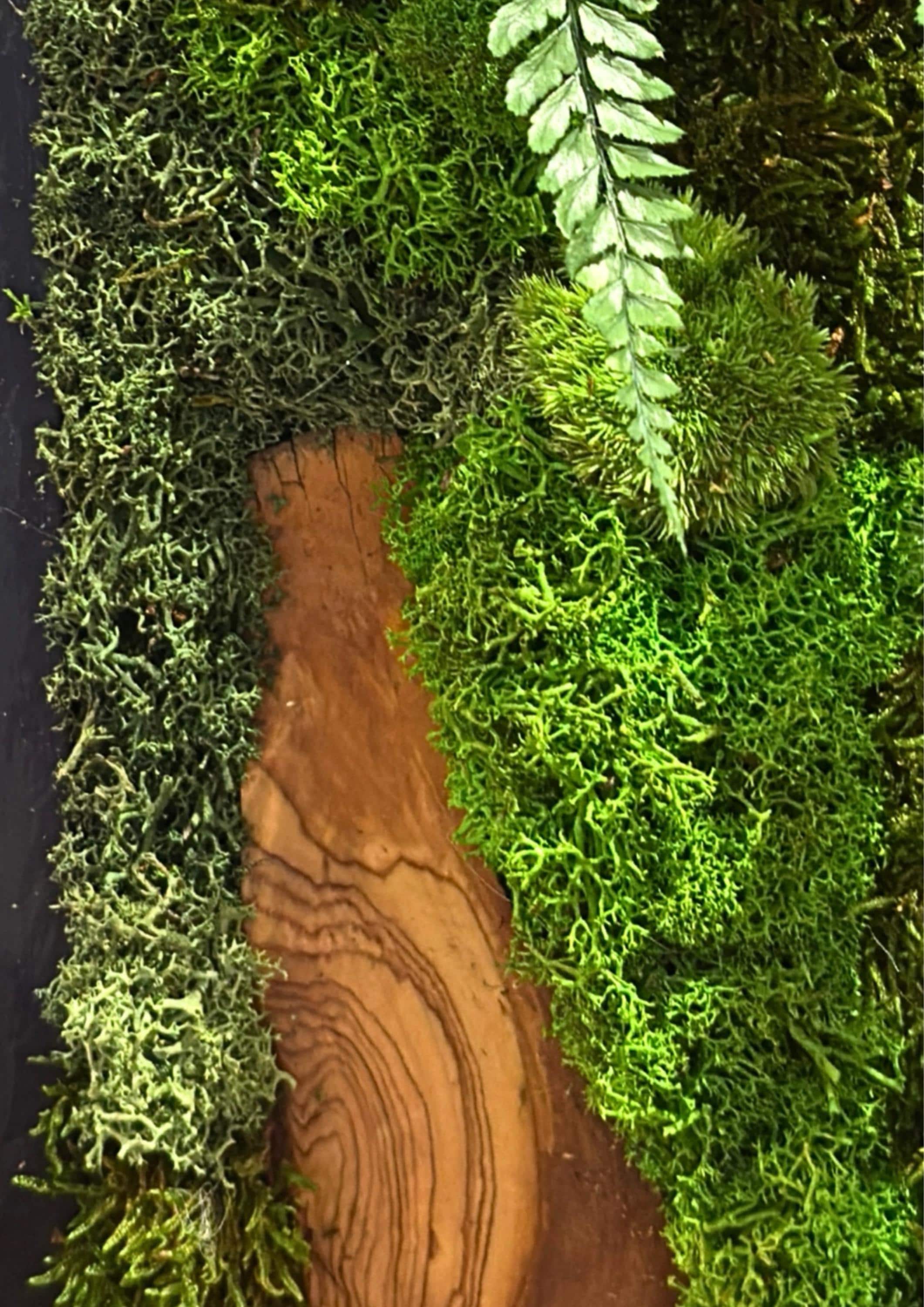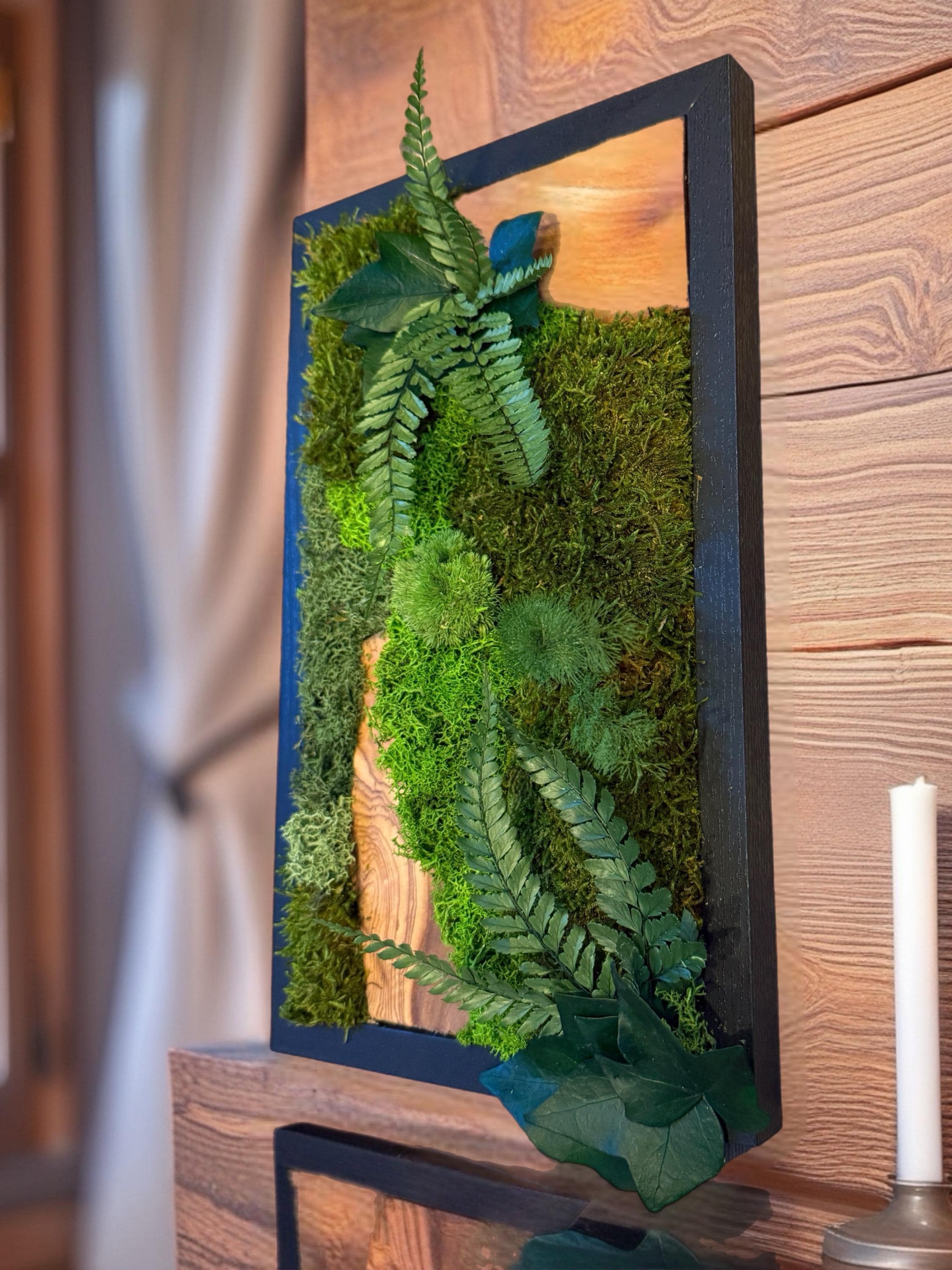 Apportez une touche de nature élégante et apaisante à votre intérieur avec ce cadre végétal stabilisé fait main, une pièce unique mêlant mousses naturelles, fougères et bois dans une composition harmonieuse et contemporaine.