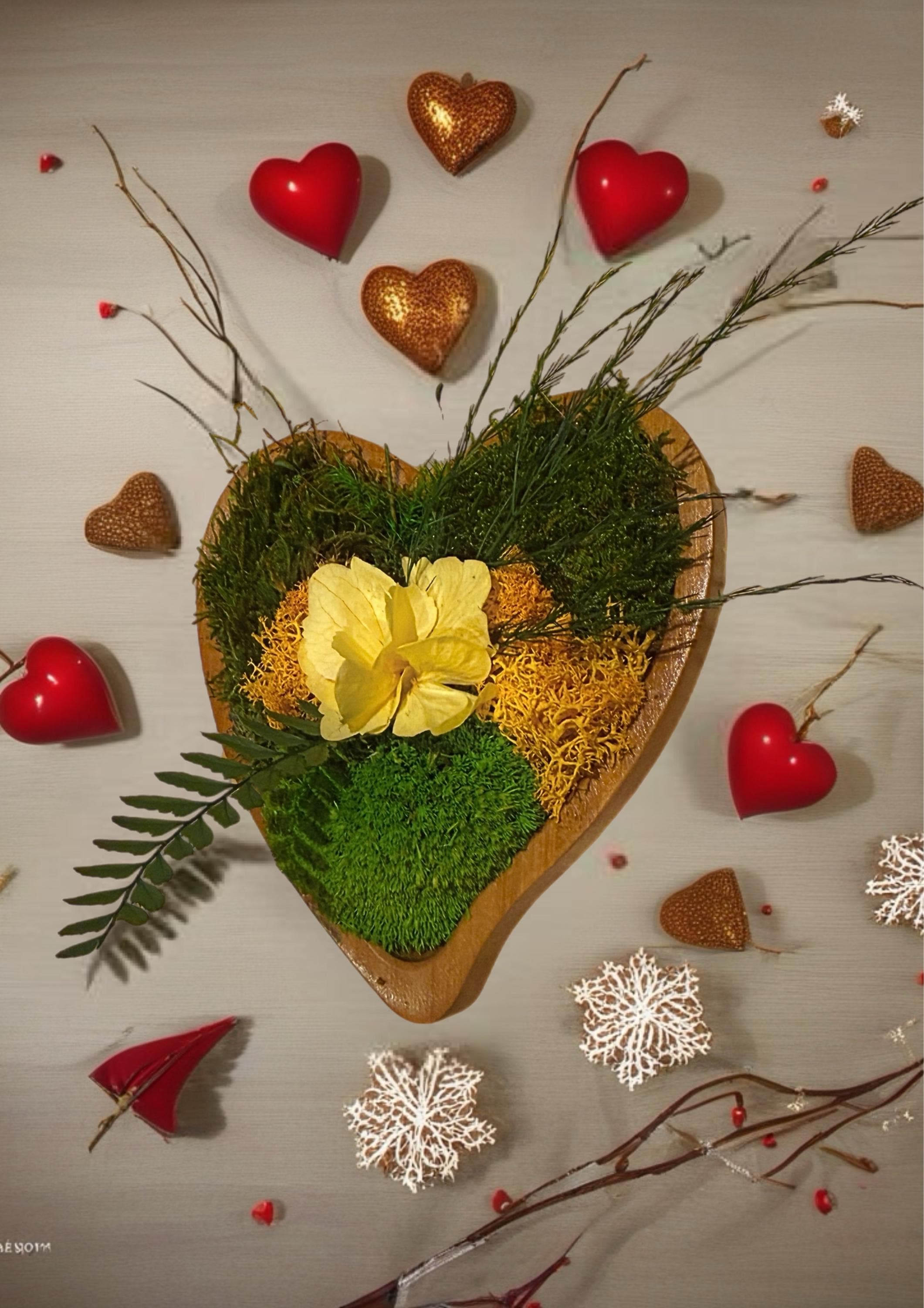 Apportez une touche de nature et de douceur à votre intérieur avec ce petit cadre végétal en forme de cœur, entièrement réalisé à la main.