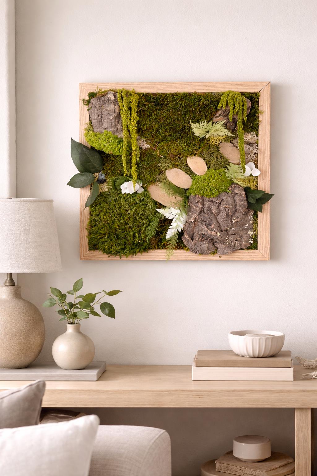 Apportez une touche de nature et de sérénité à votre intérieur avec ce cadre végétal stabilisé fait main, imaginé comme une petite fenêtre ouverte sur la forêt 🌲