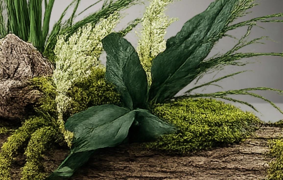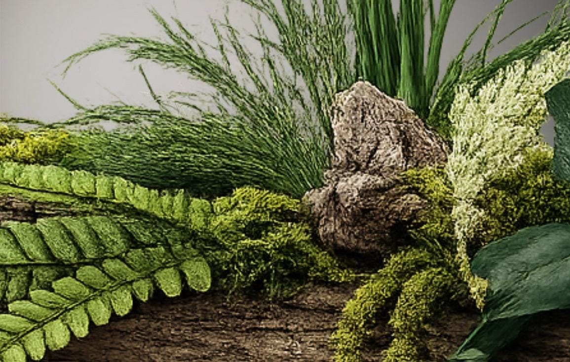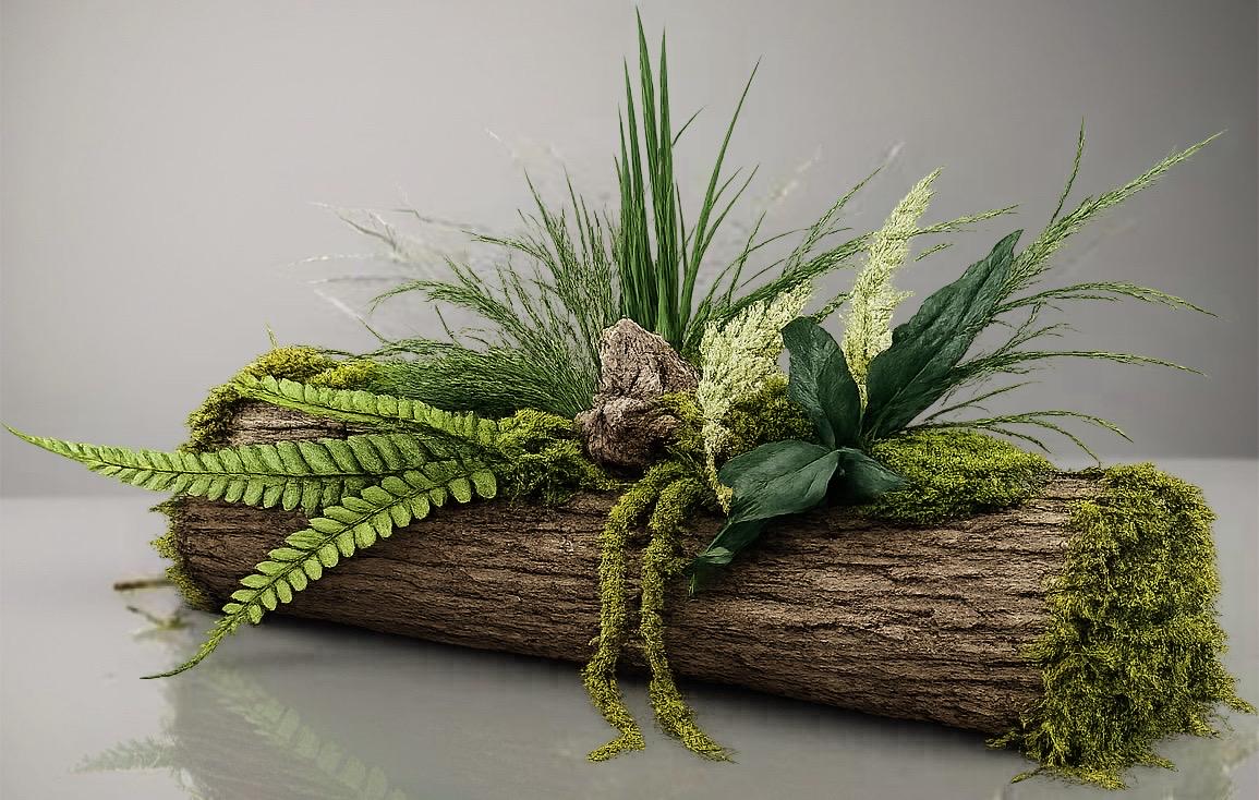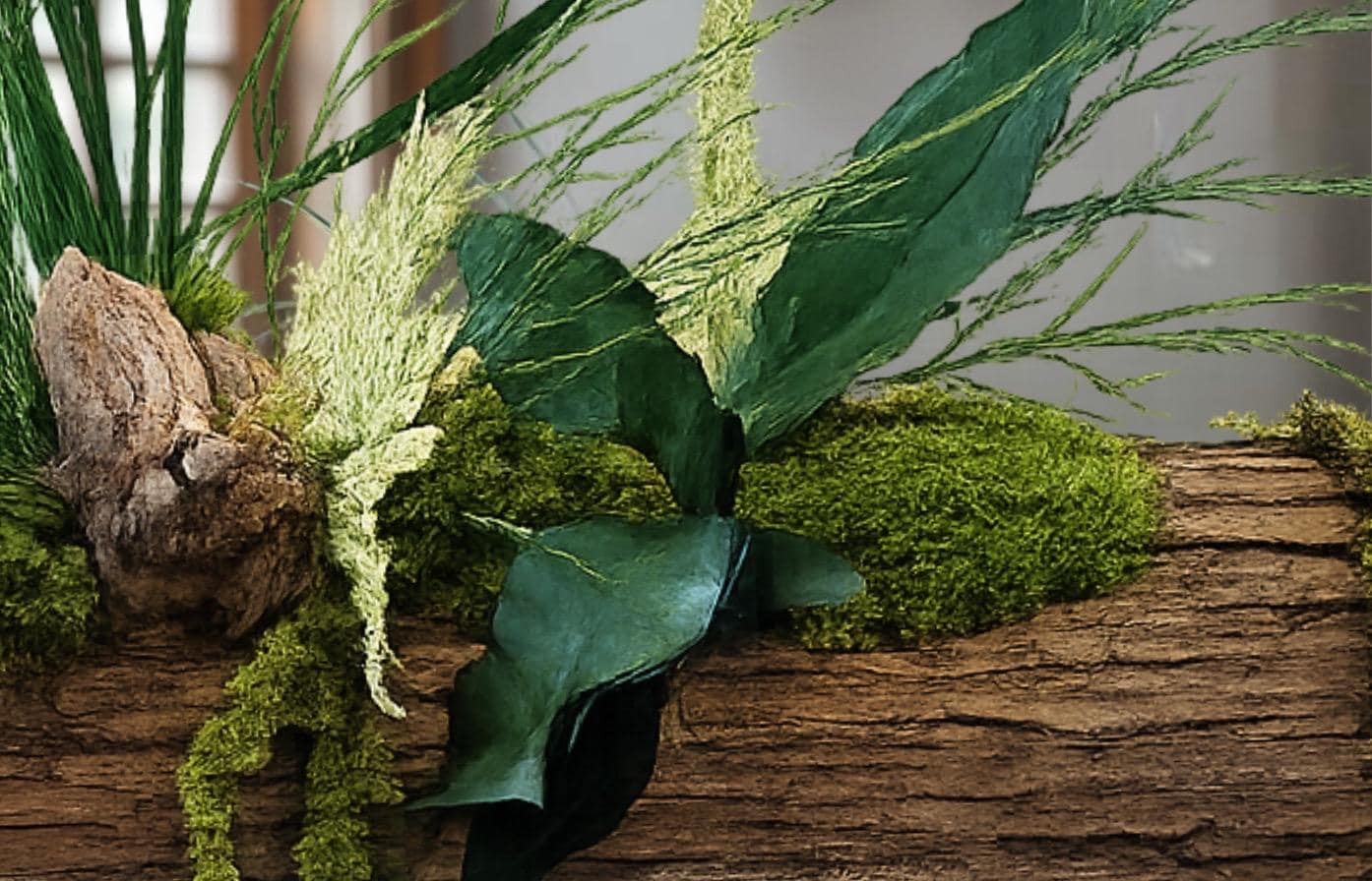 • Végétaux : mousses, fougères et feuillages stabilisés