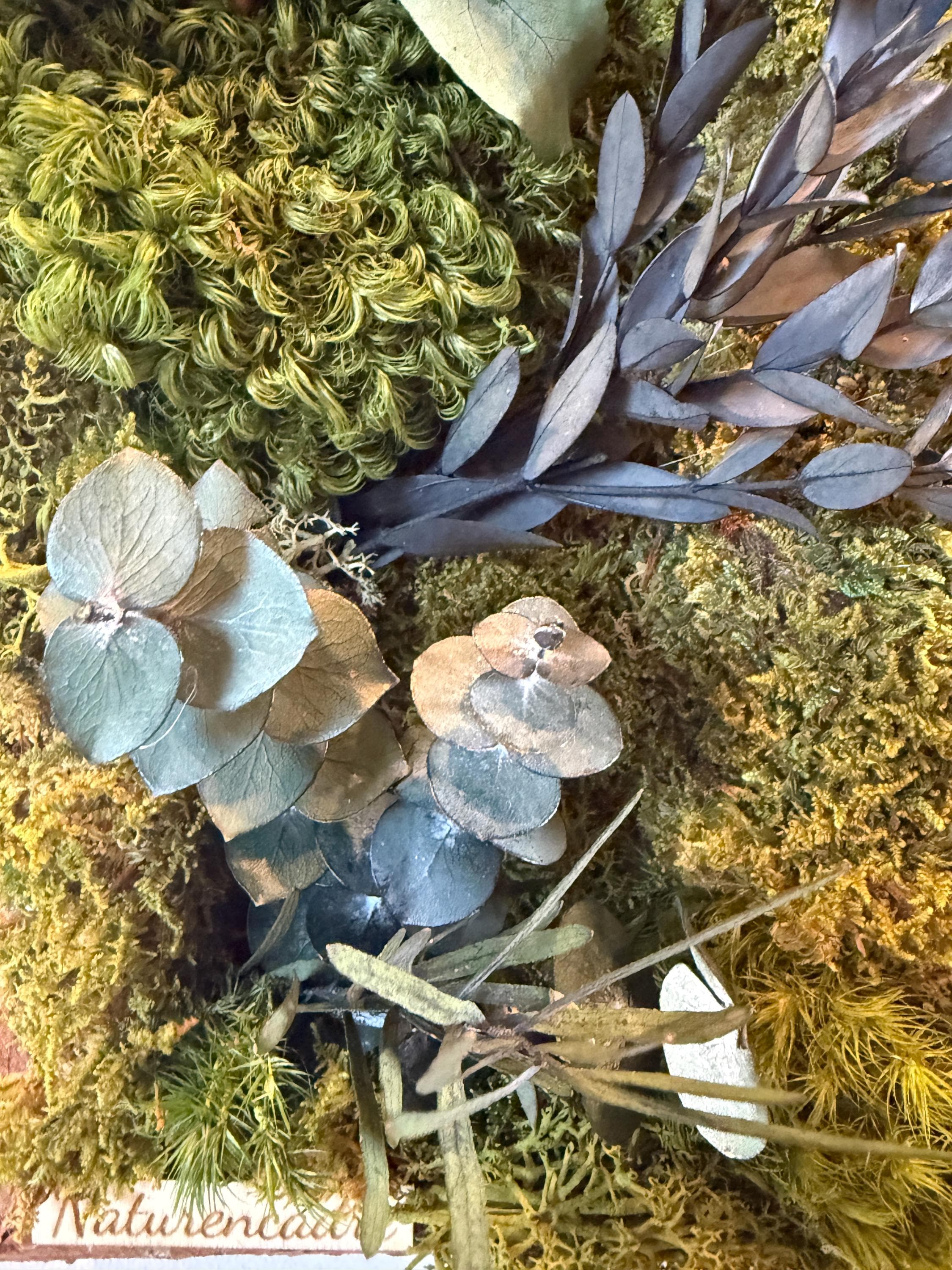 • Végétaux : mousses et feuillages naturels stabilisés