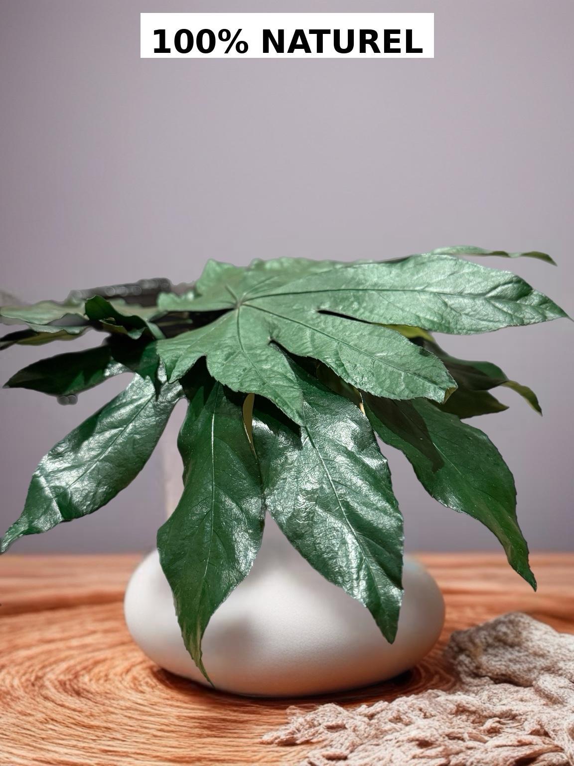 Apportez une touche de nature authentique à votre intérieur avec cette composition végétale réalisée à partir de feuilles d’Aralia stabilisées, soigneusement sélectionnées et travaillées à la main.