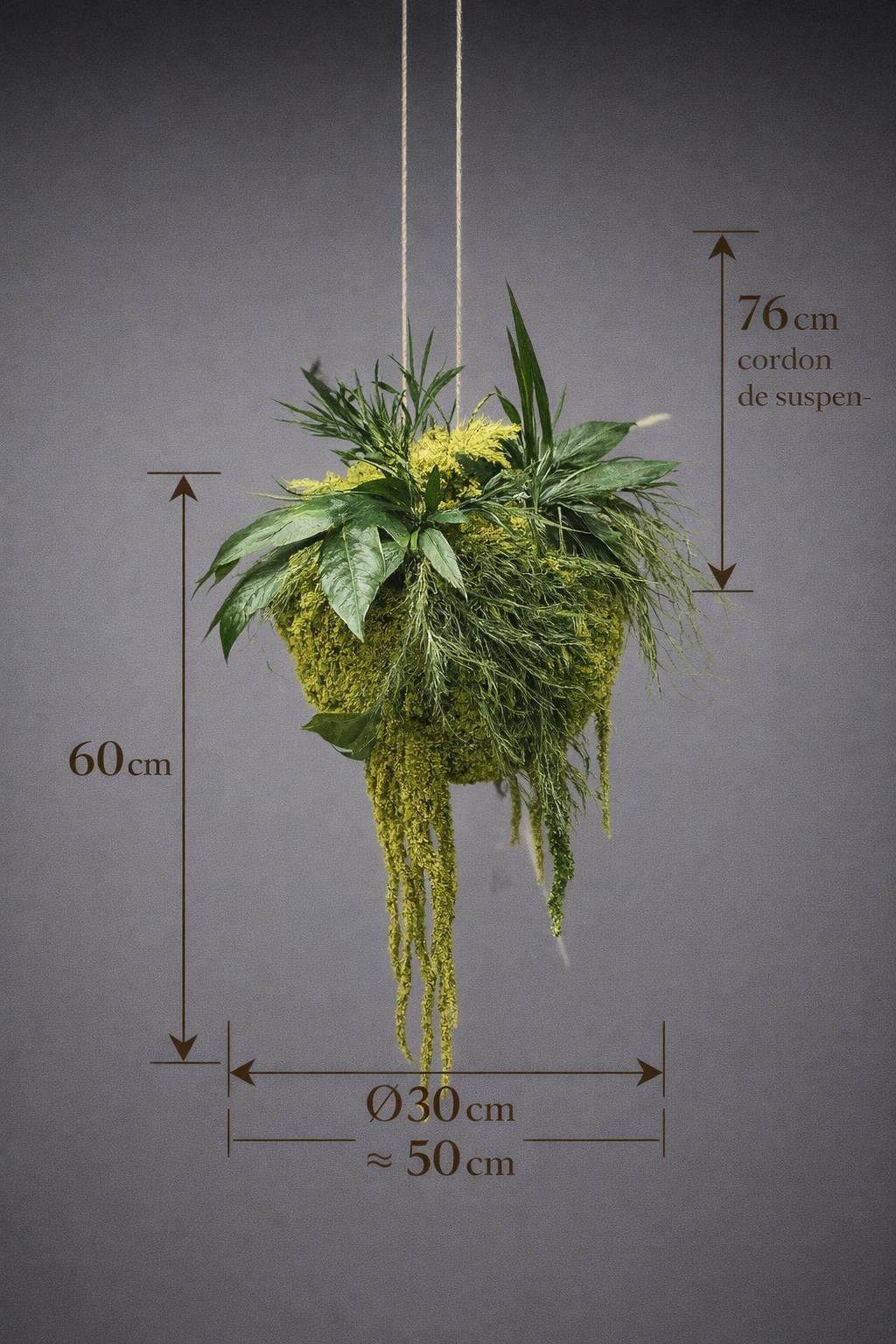 📏 Diamètre approximatif : 30 cm pour la boule et environ 50cm avec l’expansion des végétaux