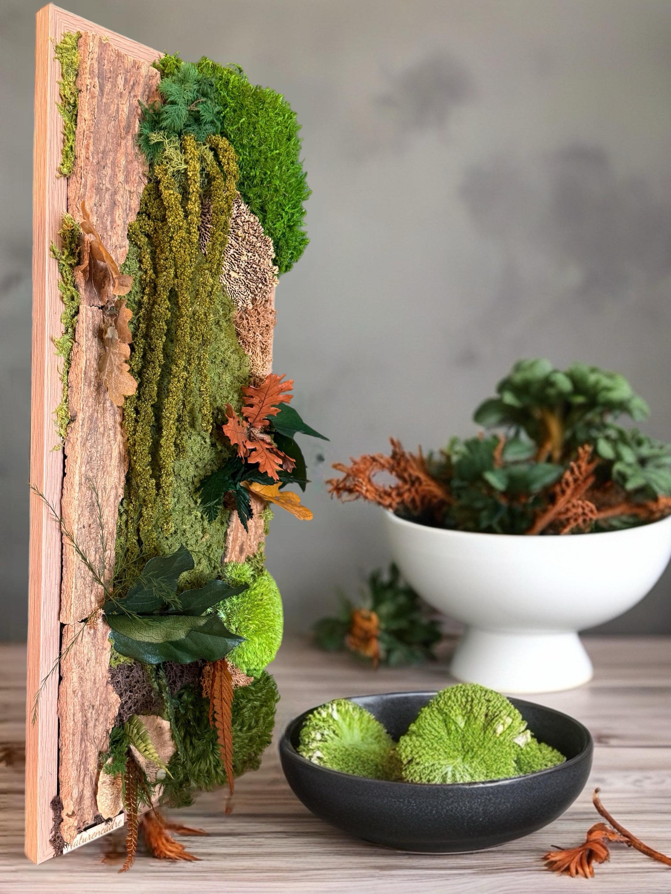 Chaque élément végétal est naturel et stabilisé, ce qui lui permet de conserver sa texture et sa couleur sans aucun entretien.