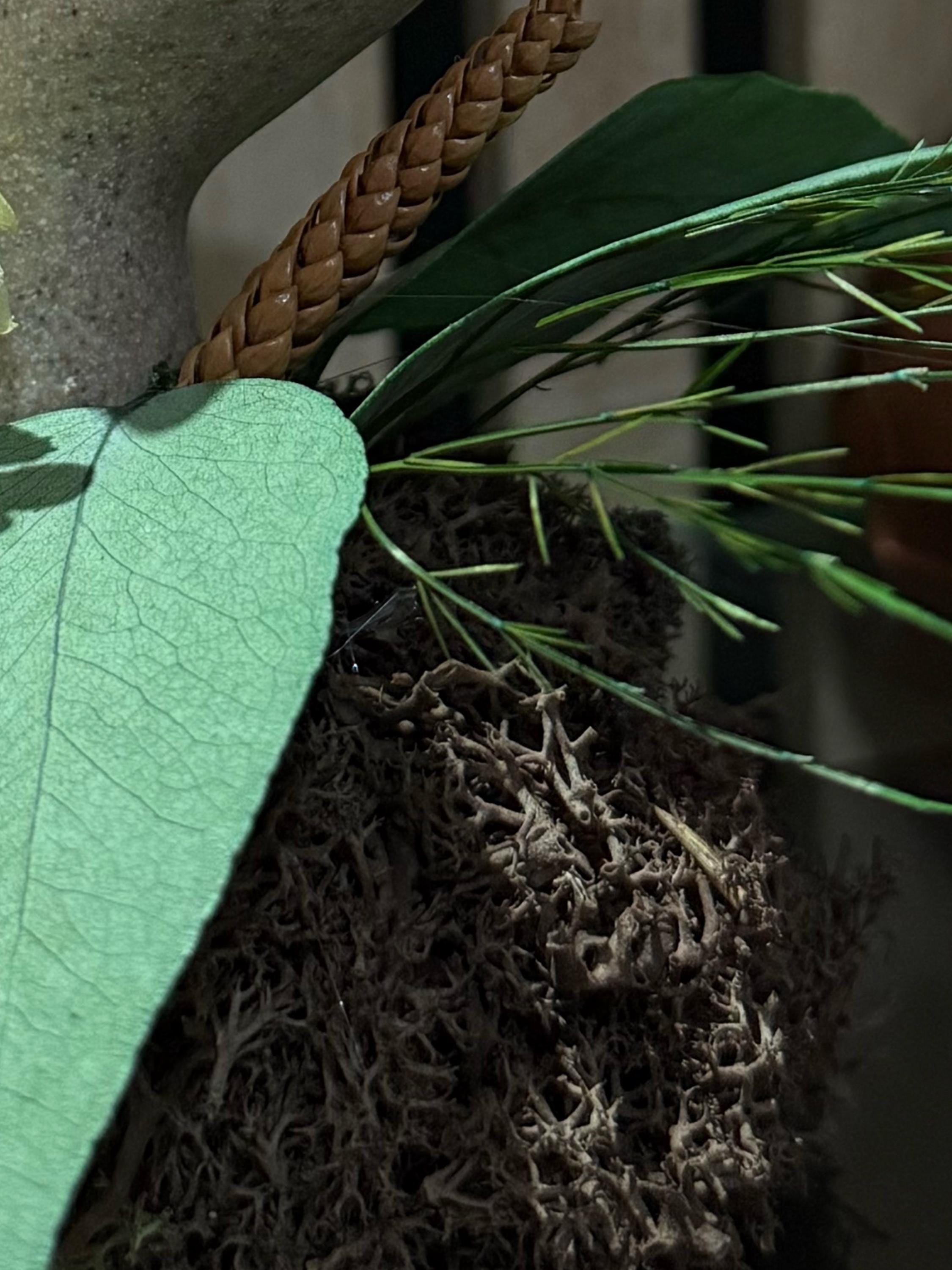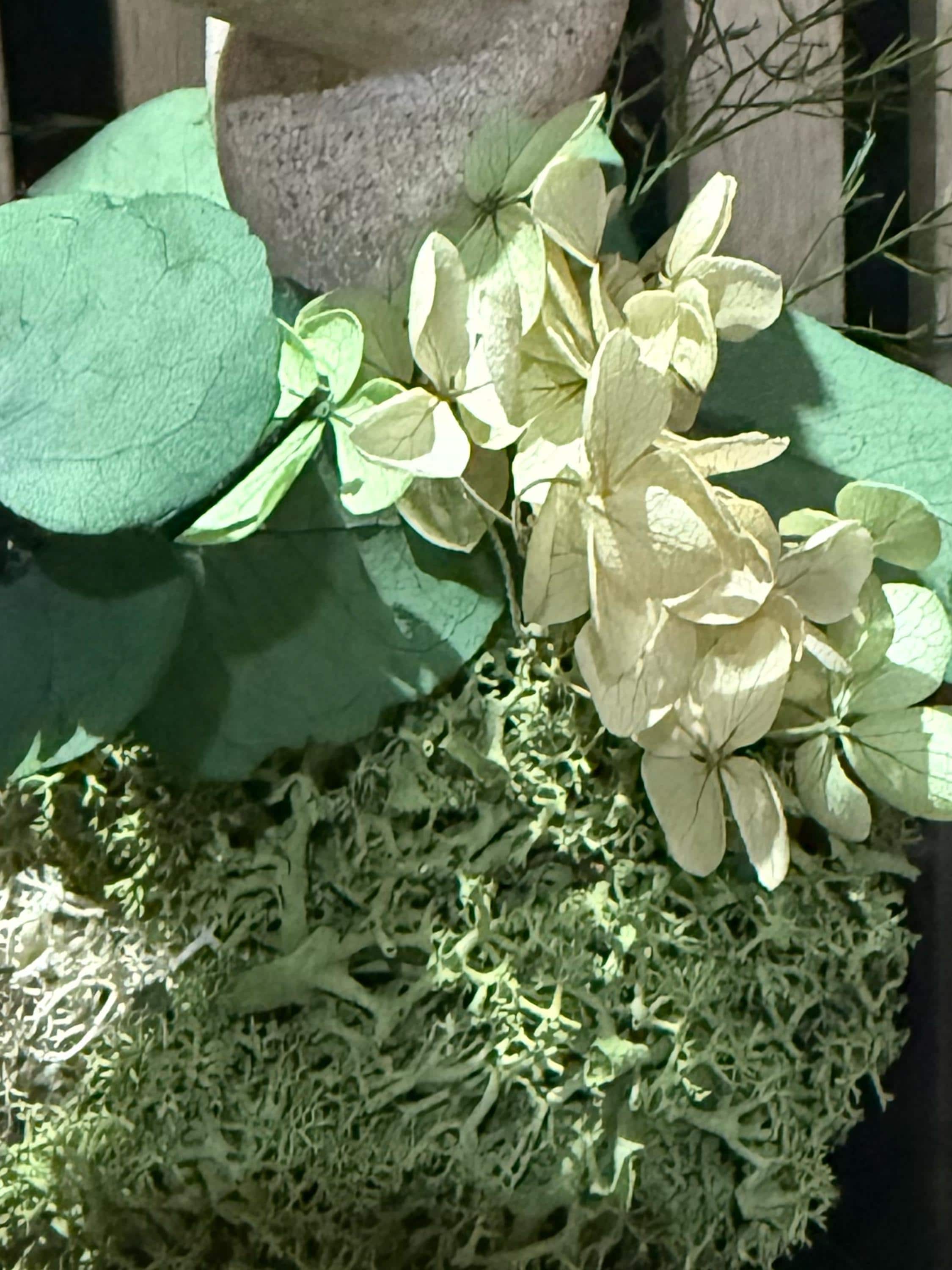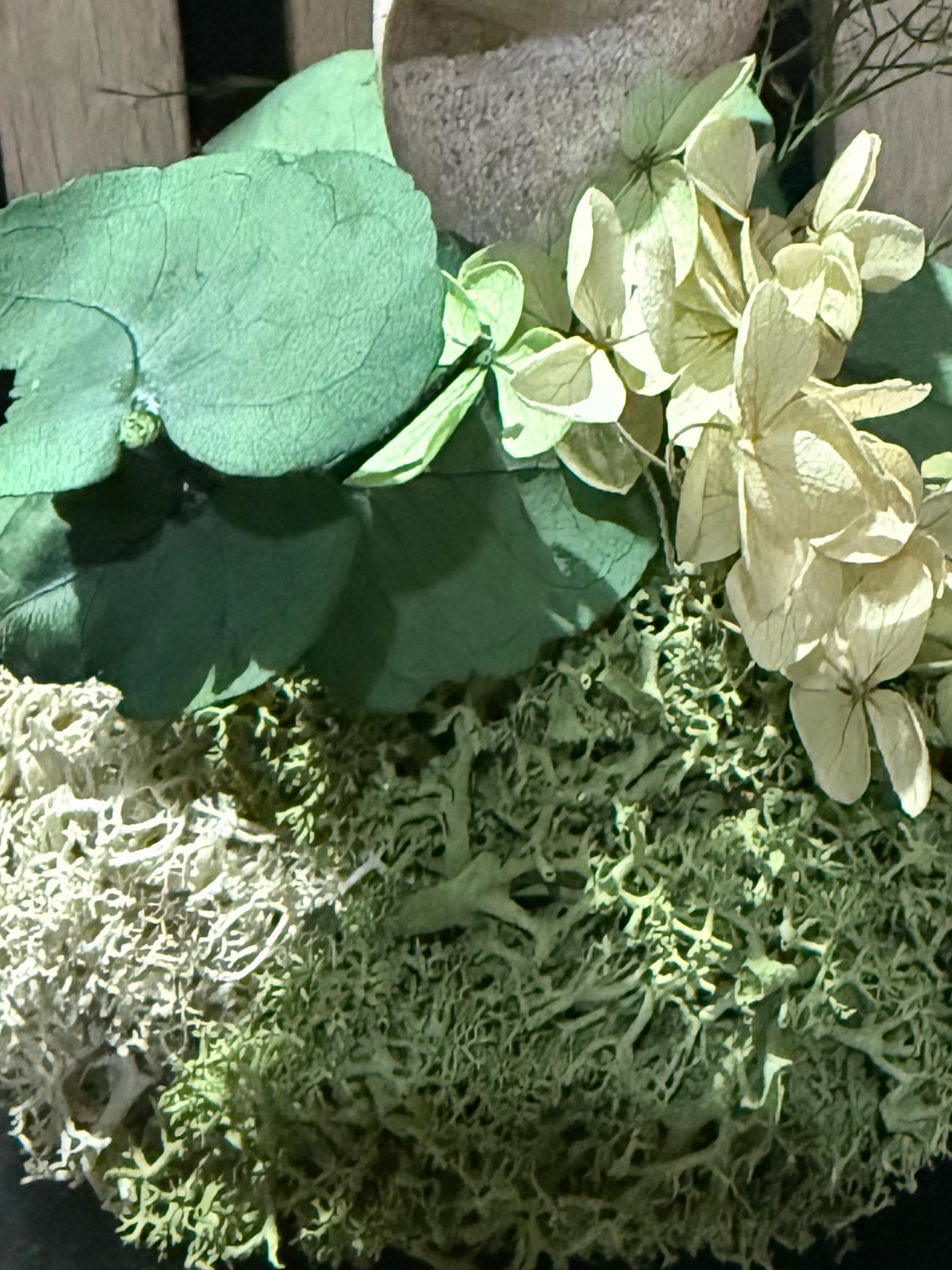 Cette composition est réalisée à partir de végétaux stabilisés : aucun arrosage, aucune lumière spécifique, elle conserve son aspect naturel pendant plusieurs années.