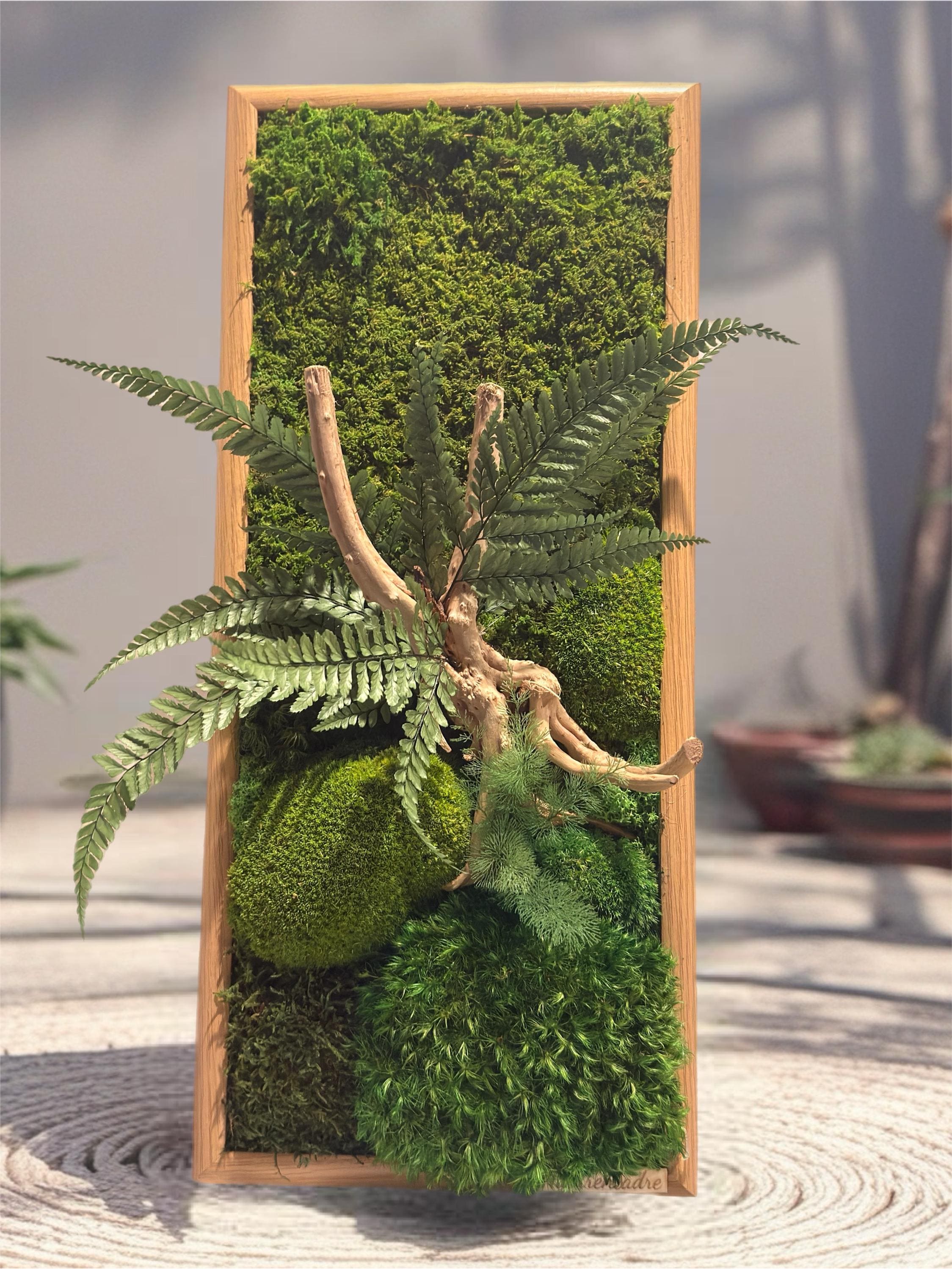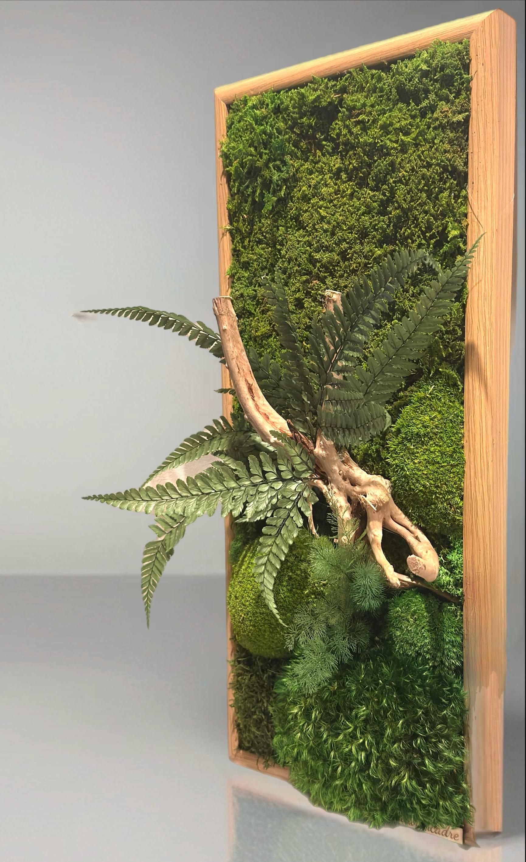 Apportez une touche de nature élégante et apaisante à votre intérieur avec ce cadre végétal stabilisé au design vertical.