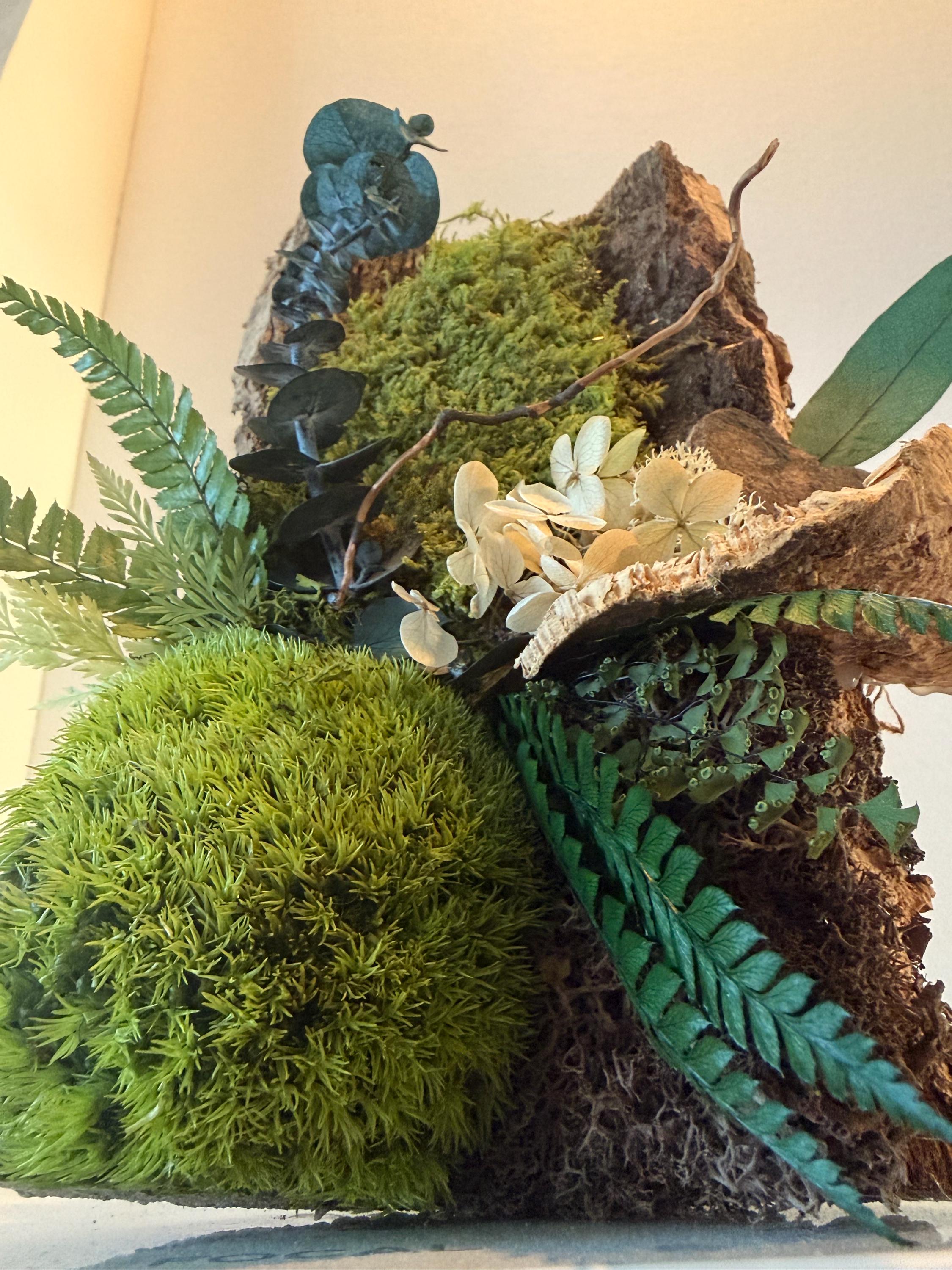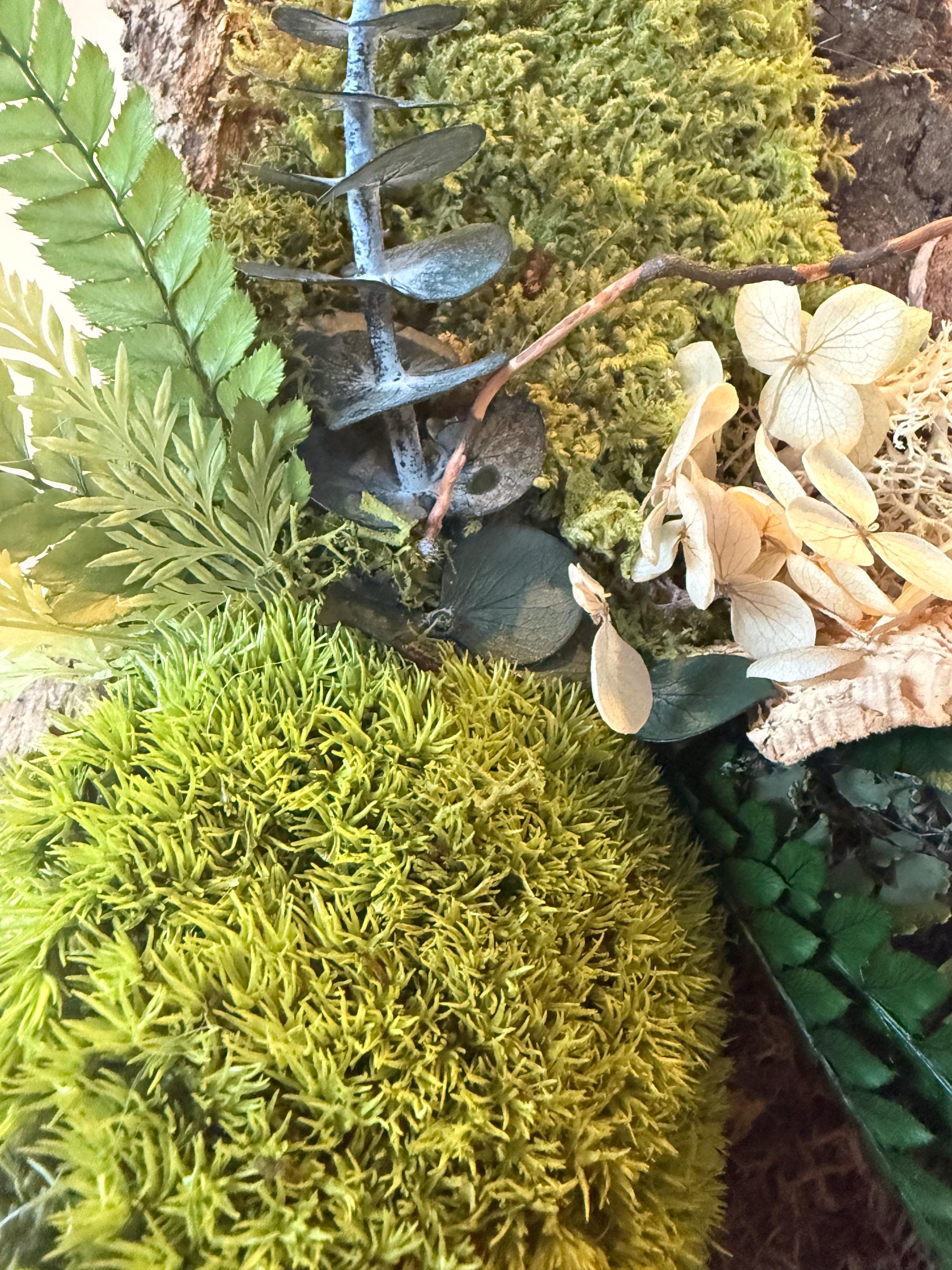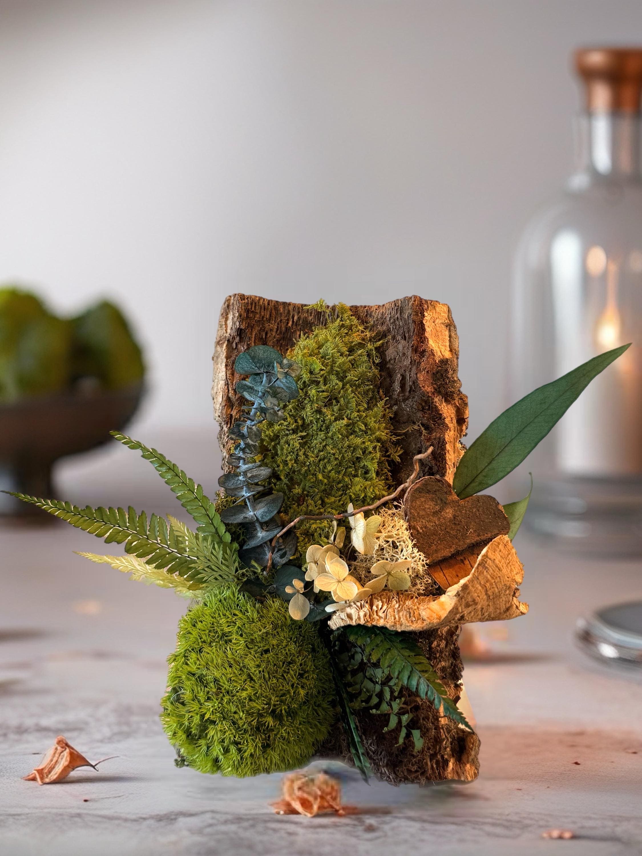 Réalisé à partir d’un morceau d’écorce naturelle, il met en valeur une composition harmonieuse de végétaux stabilisés soigneusement sélectionnés. Le petit cœur en bois apporte une dimension symbolique et chaleureuse, idéale pour une décoration pleine de sens.
