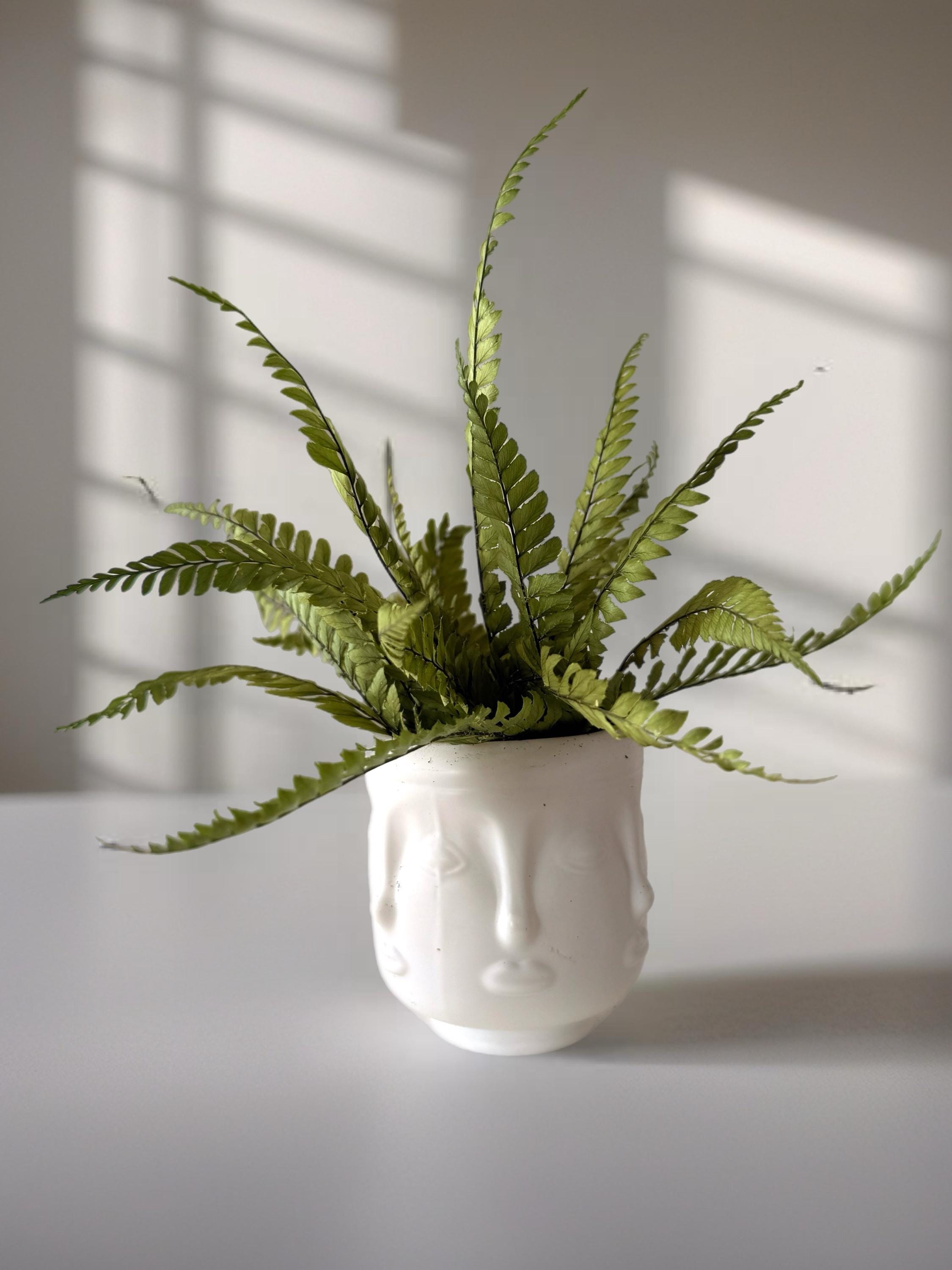Apportez une touche artistique et végétale à votre intérieur avec ce pot visage au style sculptural, sublimé par une fougère stabilisée.