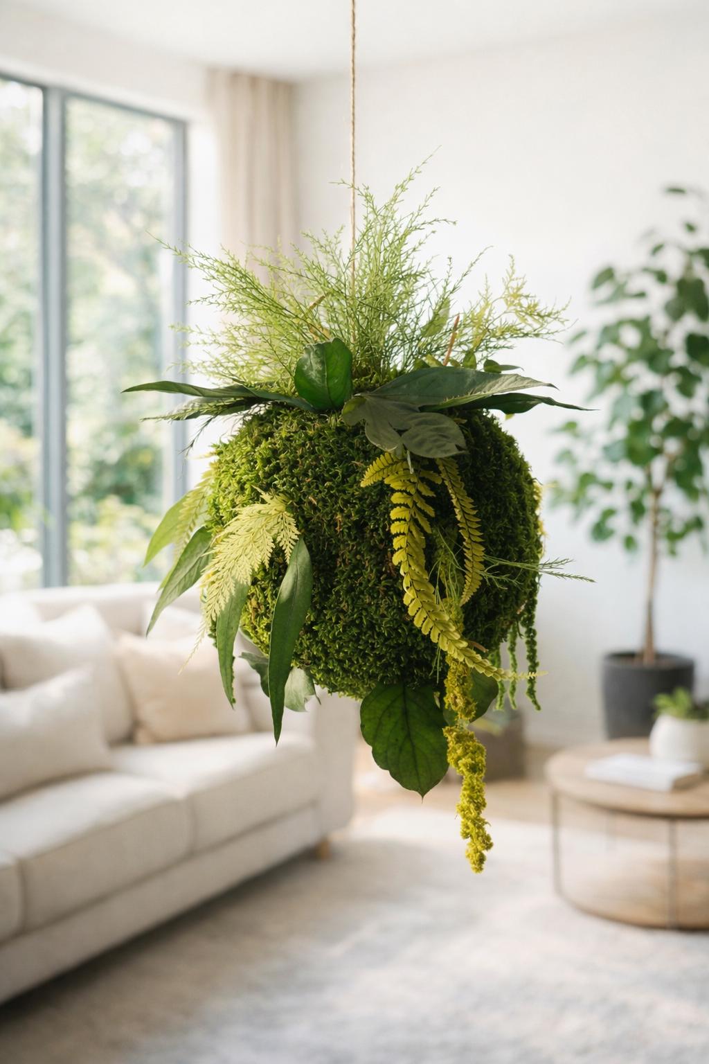 • Type : Kokedama / sphère végétale suspendue